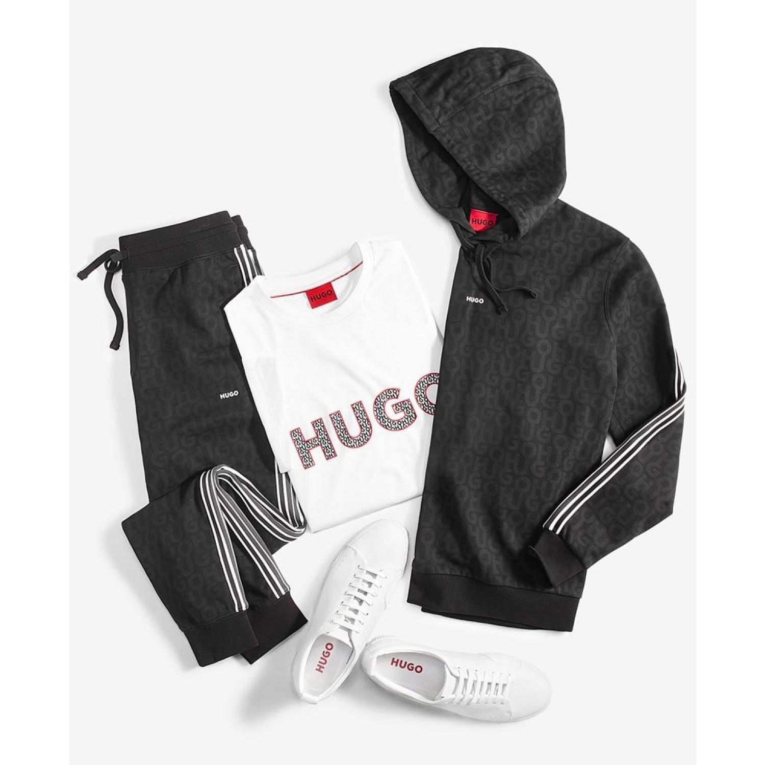 Level up your weekend gear with these logo-print jogger pants from HUGO by Hugo Boss. Approx. inseam: 28" Regular fit Elastic waistband with drawstring Side slit pockets Logo at thigh; striped at sides 100% cotton Machine wash Imported