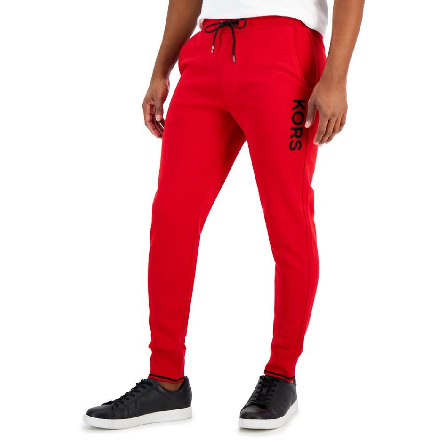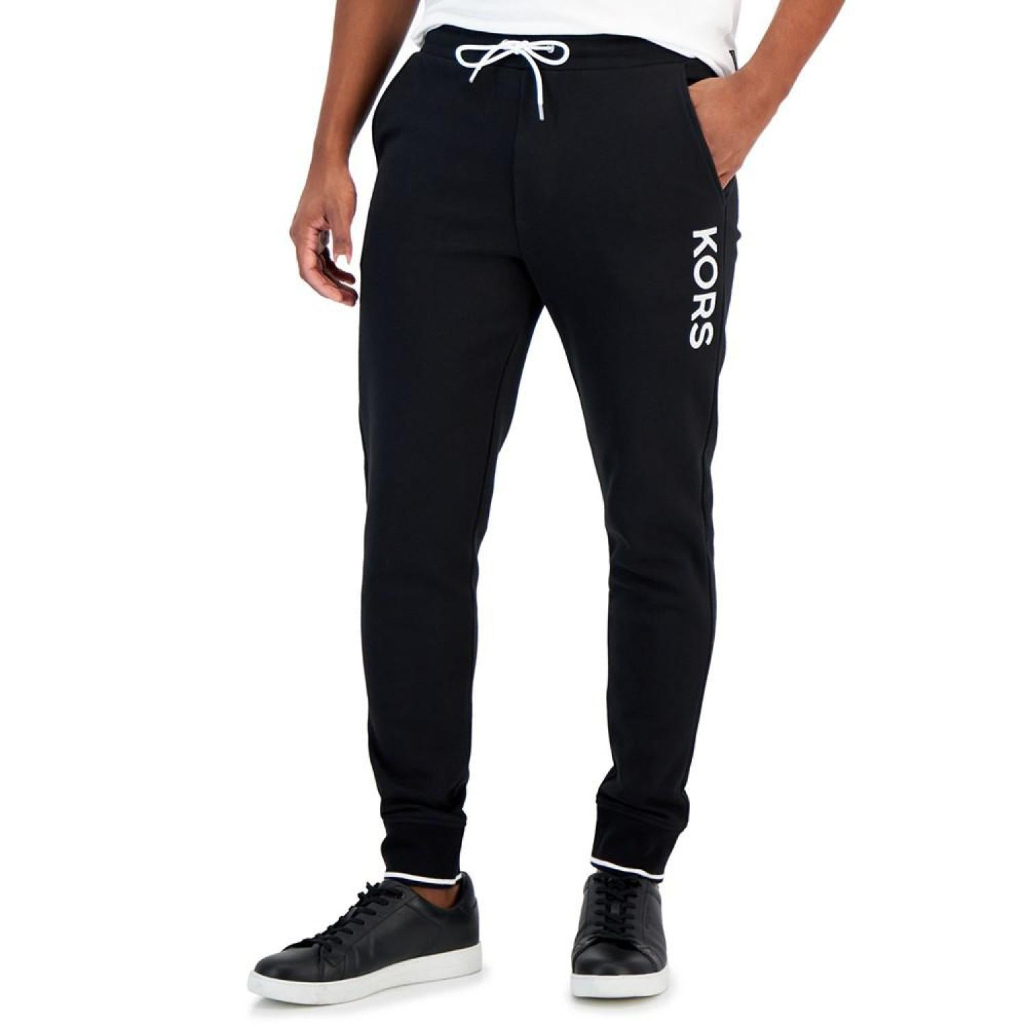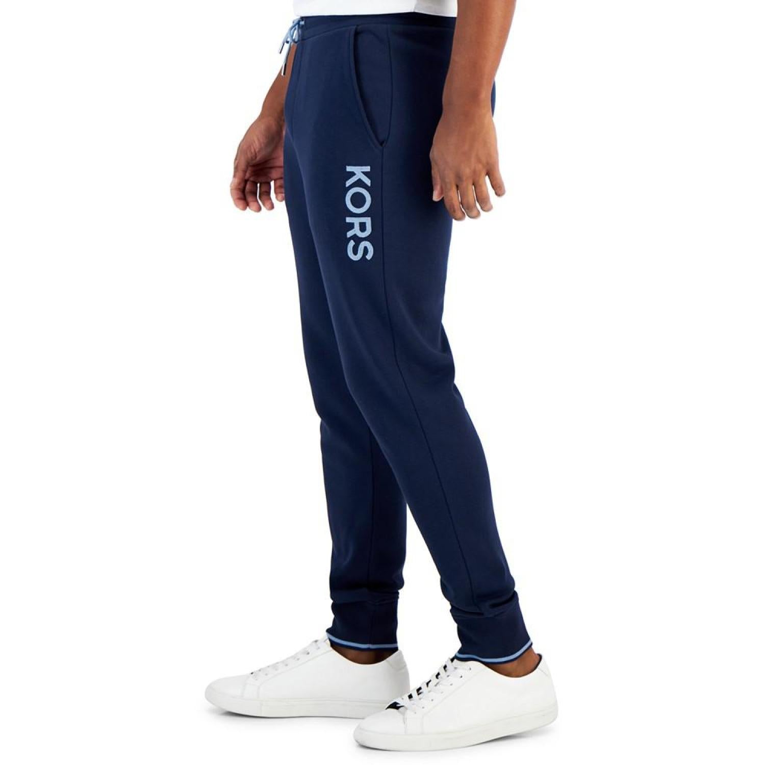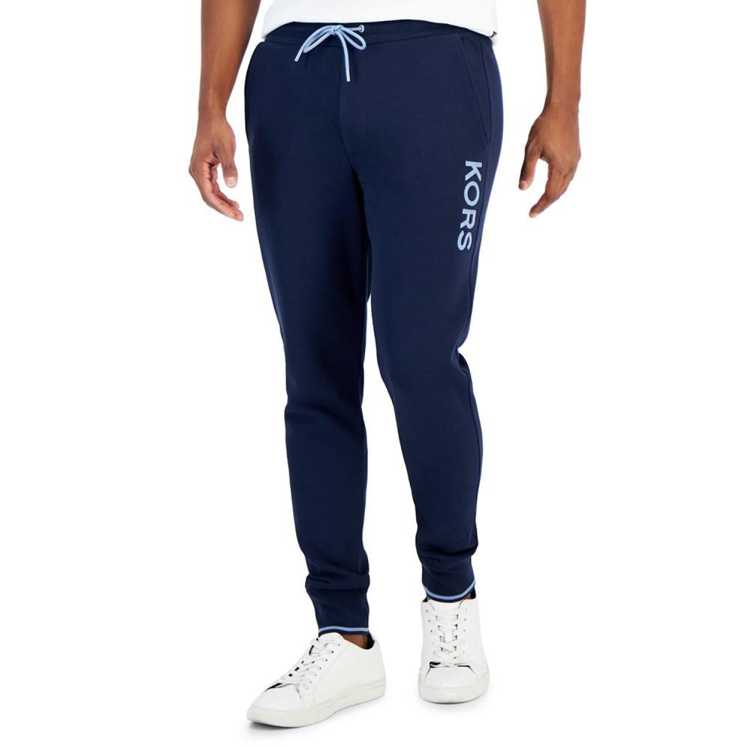 Supremely comfortable, these Michael Kors jogger pants will take you seamlessly from the couch to the track to the bench press. Classic fit Elastic drawstring waist Two side hand pockets; back pocket Banded cuffs Logo at left leg Approx. inseam: 29.5" Cotton, polyester Machine washable Imported