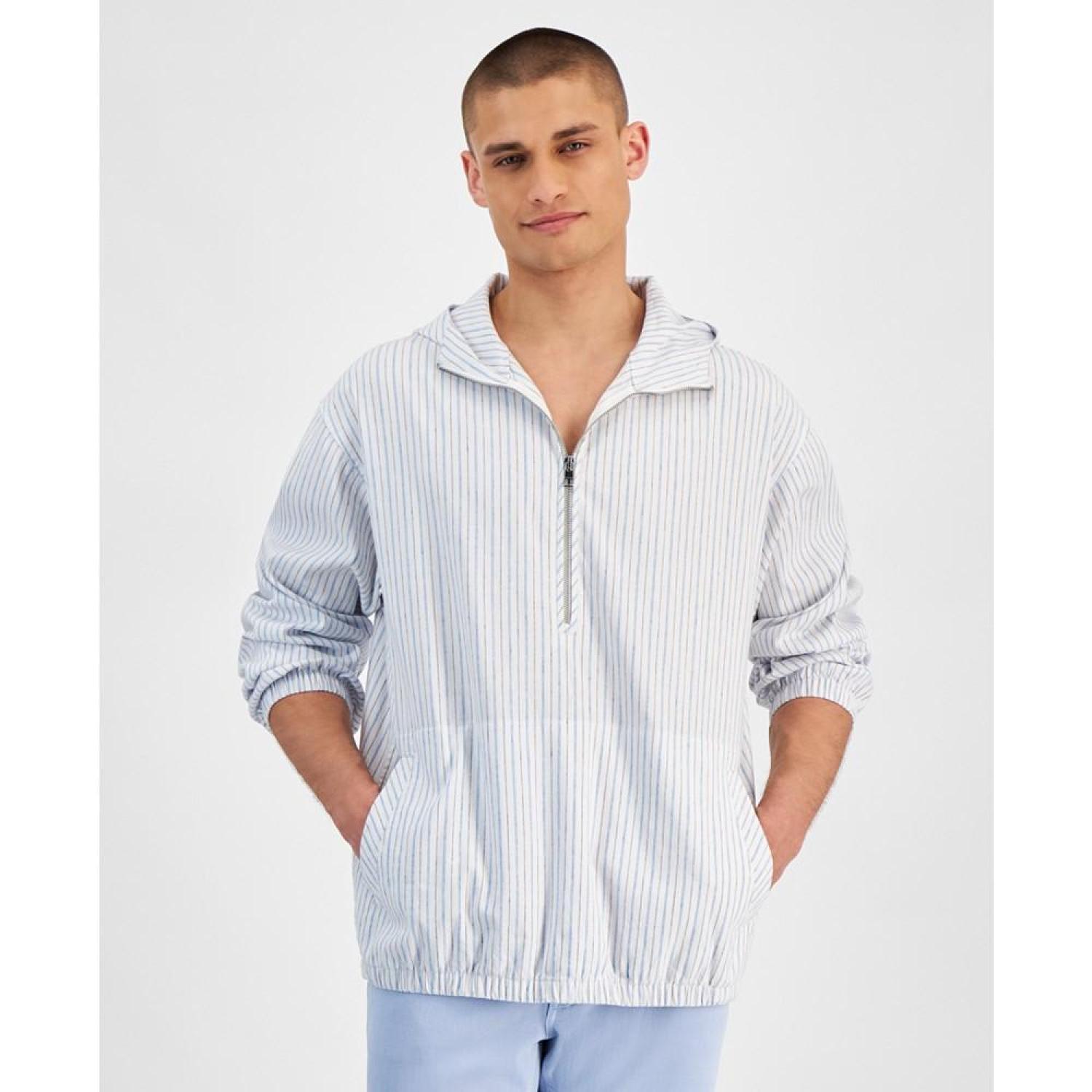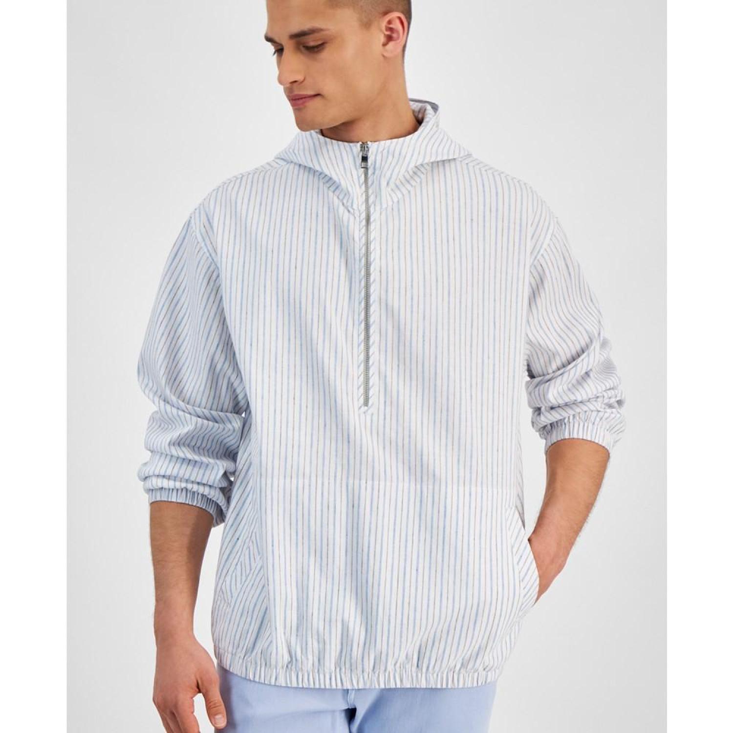 Leave the house in this hooded pullover jacket from Michael Kors for a look that sings with stripes and breathes with a half-zip closure at the chest.