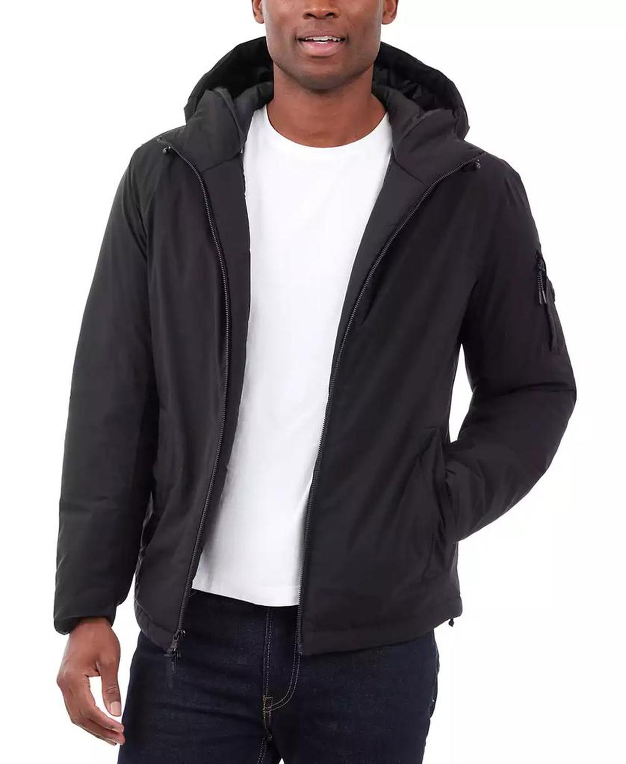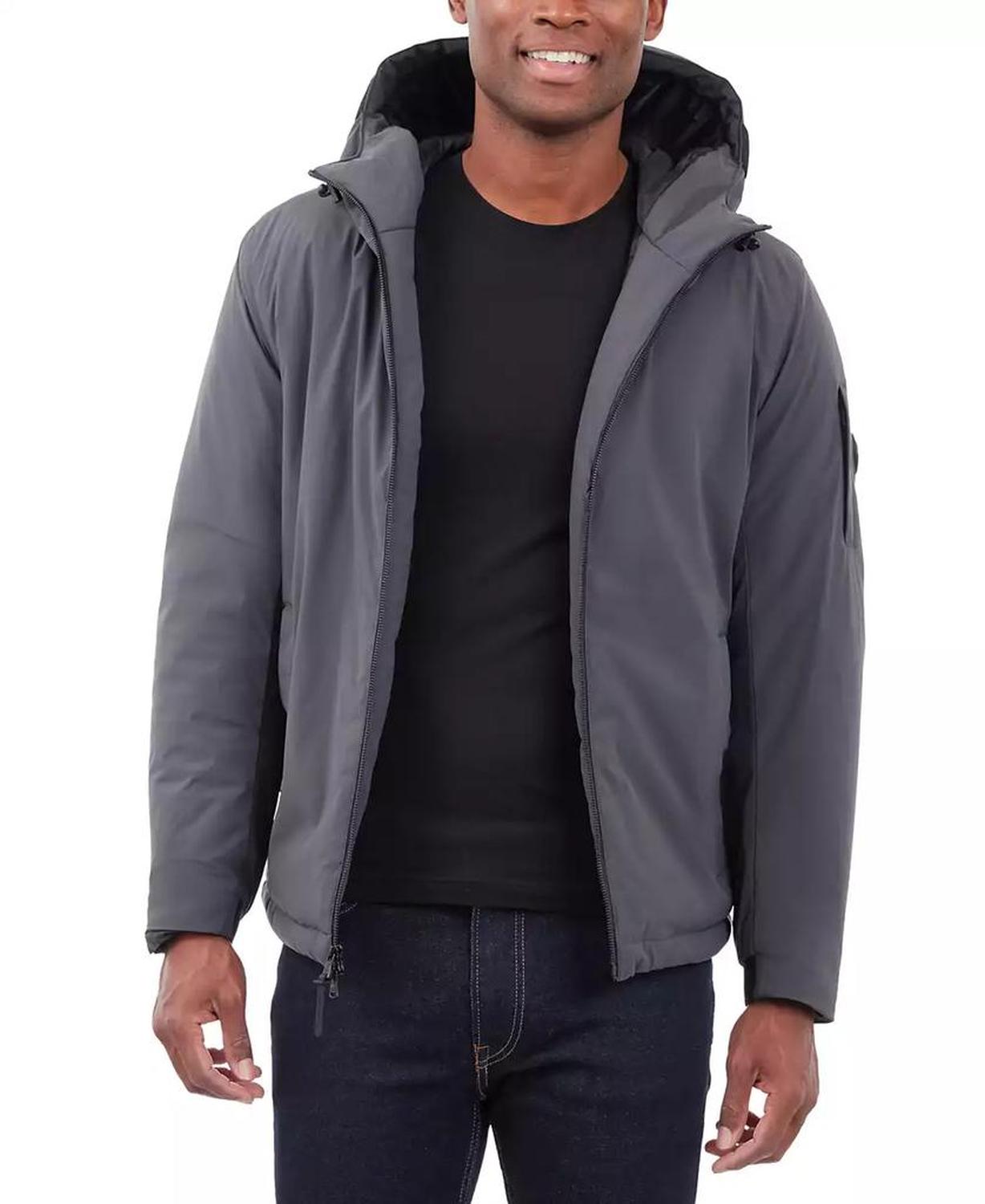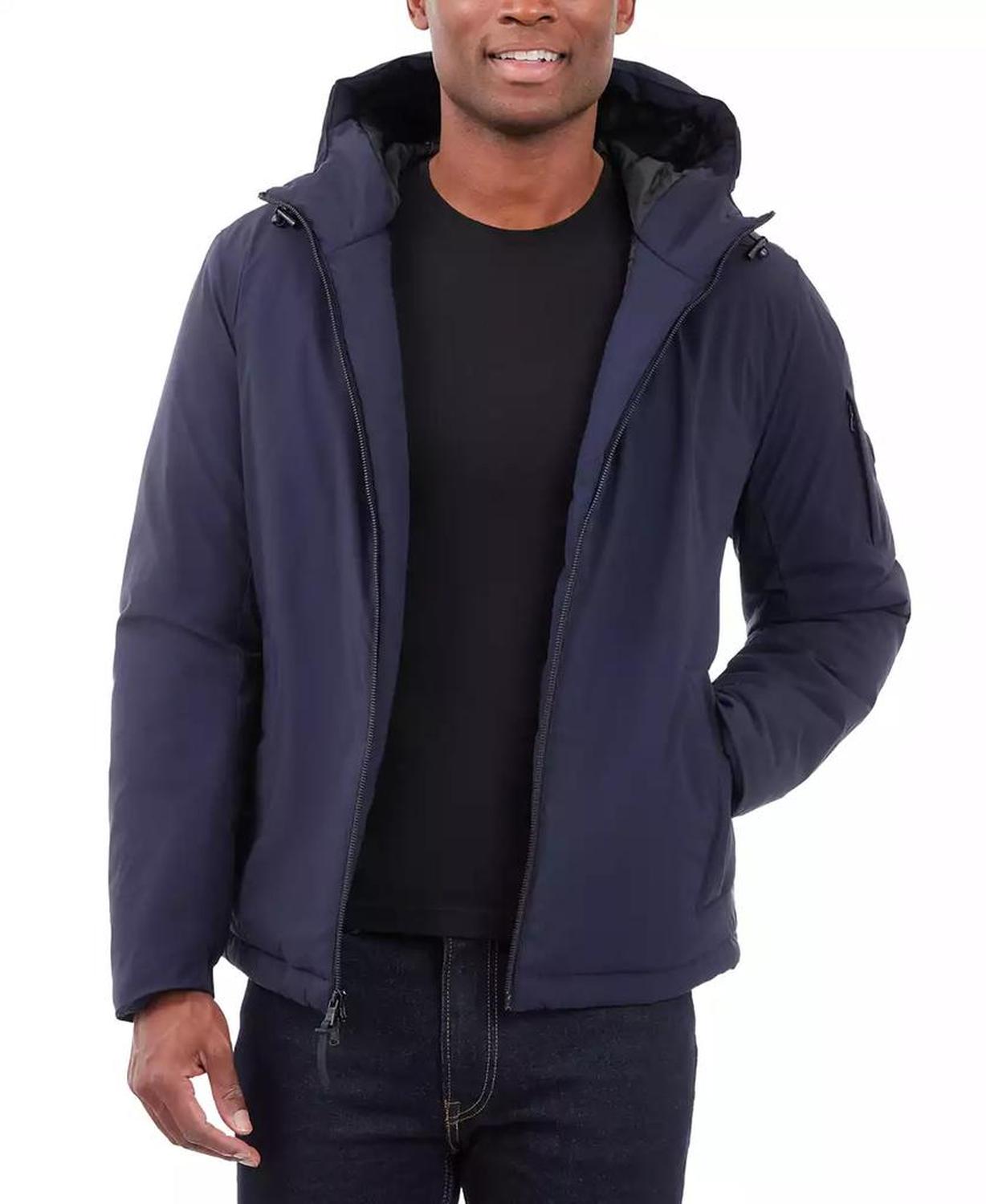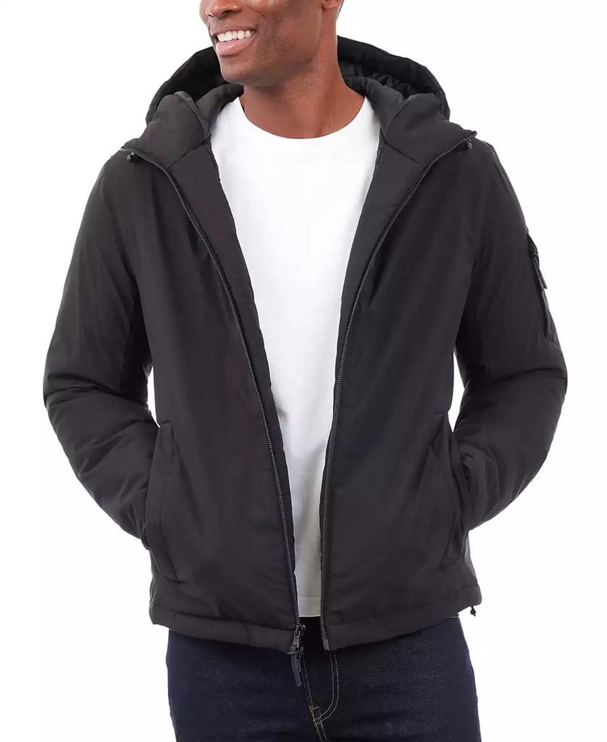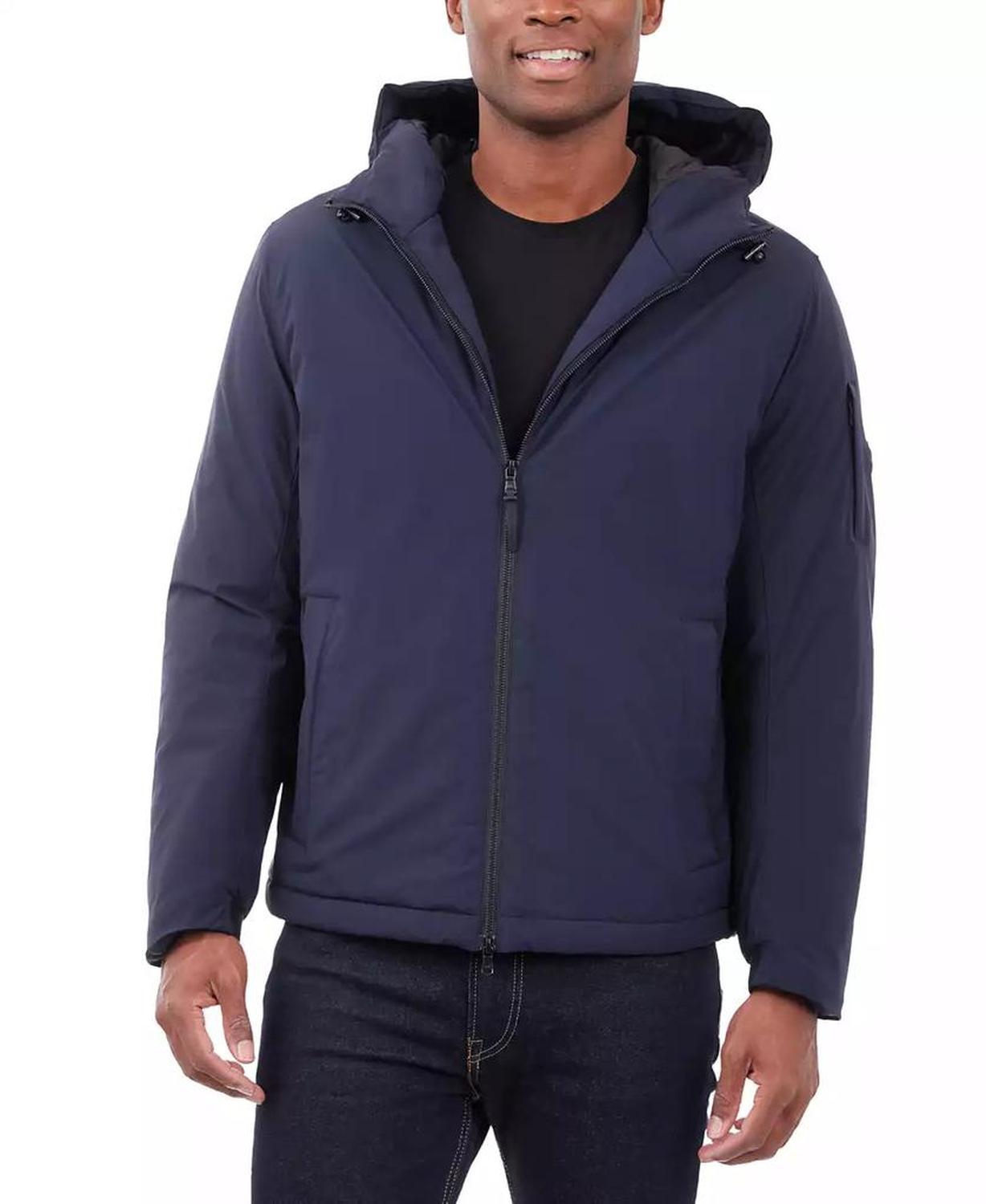 Perfect for a hike when a chill hits the air, this hooded jacket from Michael Kors straddles heavy-duty design with minimal, no-frills style. Regular fit Hooded collar Zip closure Long sleeves Side pockets Shell and lining: 100% polyester; insulation: 100% polyester Machine wash Imported