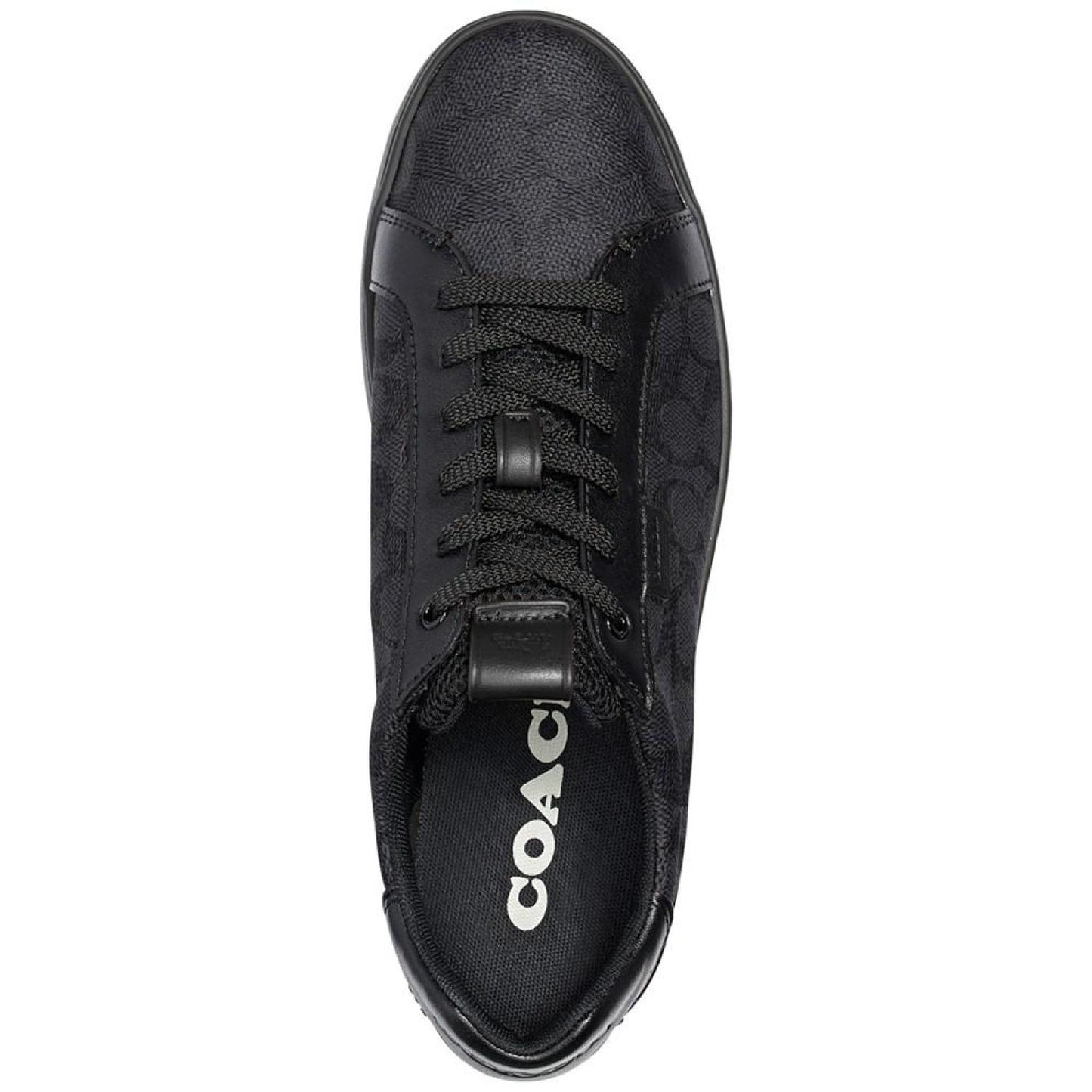 Coated canvas with signature detailing at the uppers define the look of the Low Line sneakers by COACH, designed for a sleek, sophisticated look. Plain-toe sneakers Lace-up closure Canvas/leather upper; rubber sole Imported