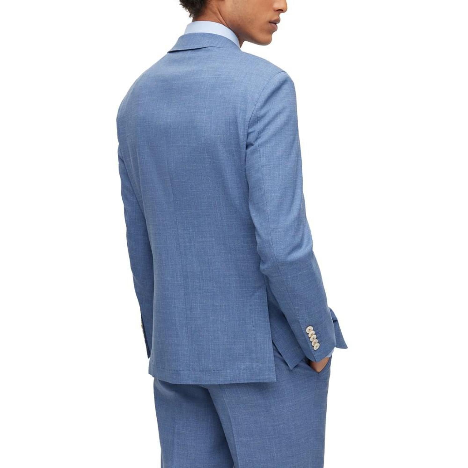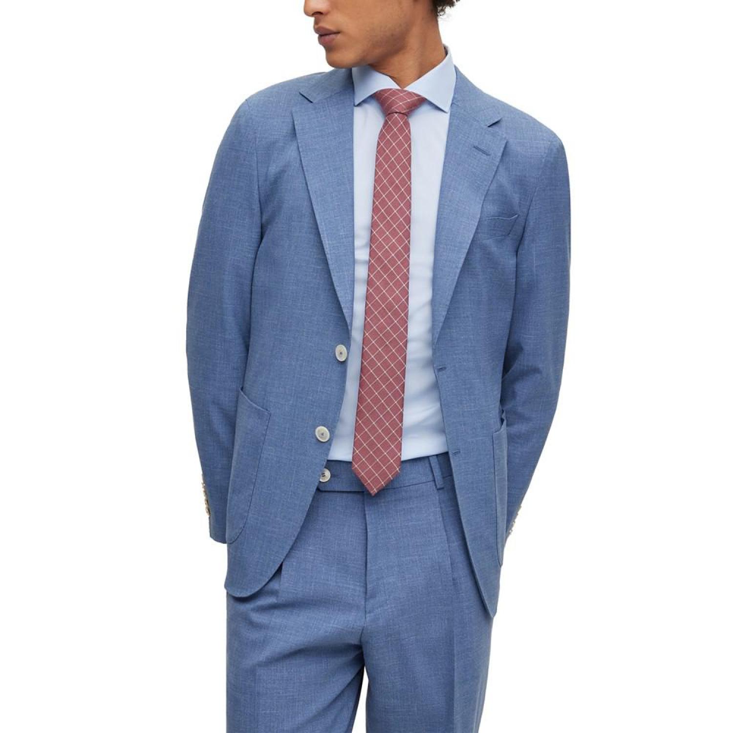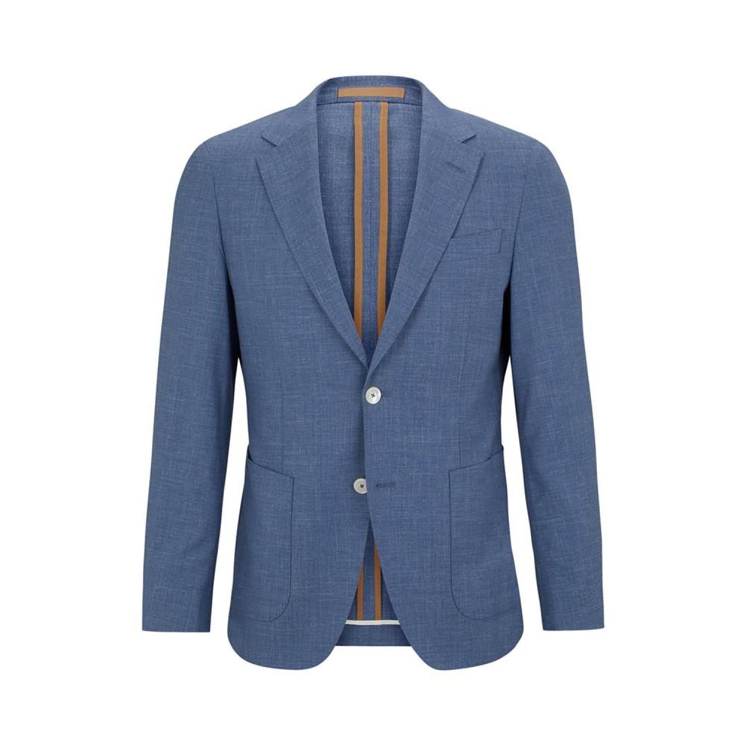 A slim-fitting jacket by BOSS menswear, crafted in micro-patterned cloth made from wool blended with silk, linen and stretch. This item is part of the BOSS tailored collection, signifying the very highest standards in design and craftsmanship.