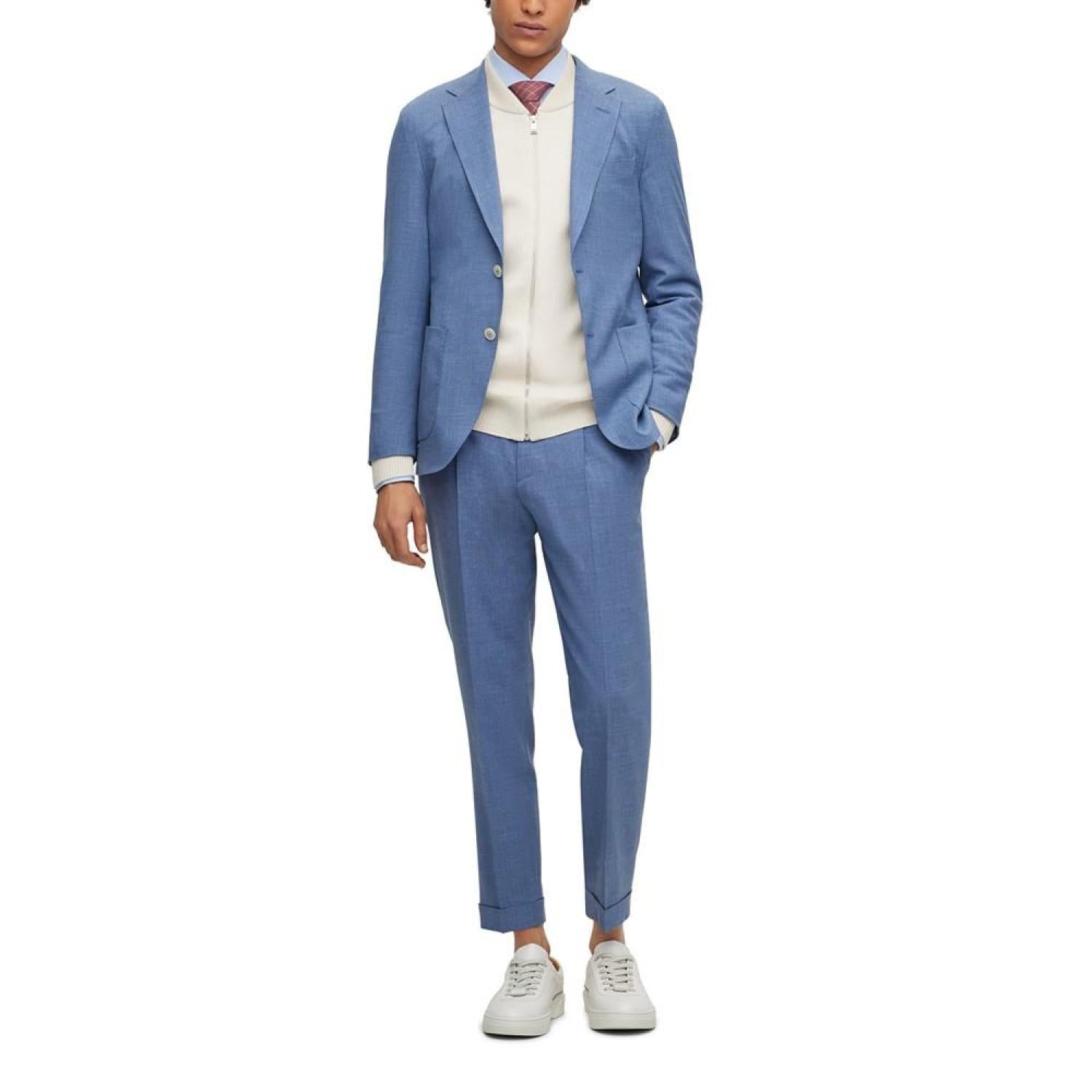 • A slim-fitting jacket by BOSS menswear, crafted in micro-patterned cloth made from wool blended with silk, linen and stretch. This item is part of the BOSS tailored collection, signifying the very highest standards in design and craftsmanship.