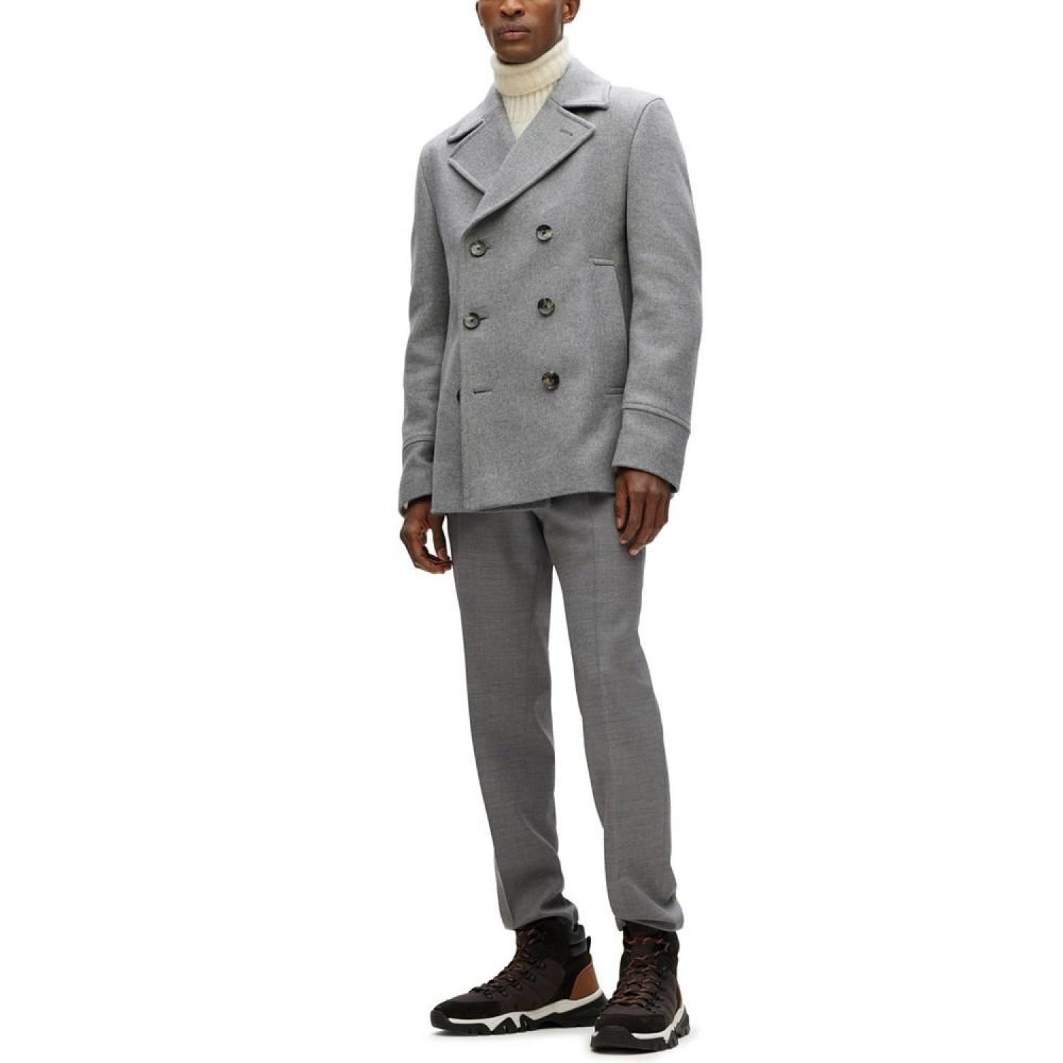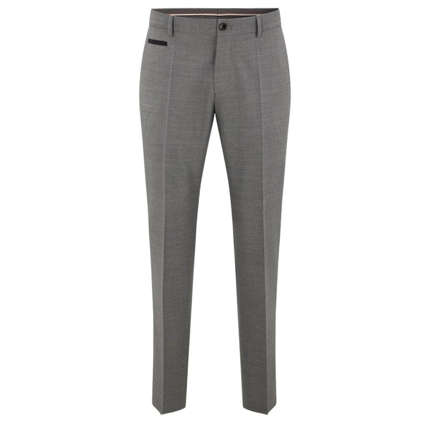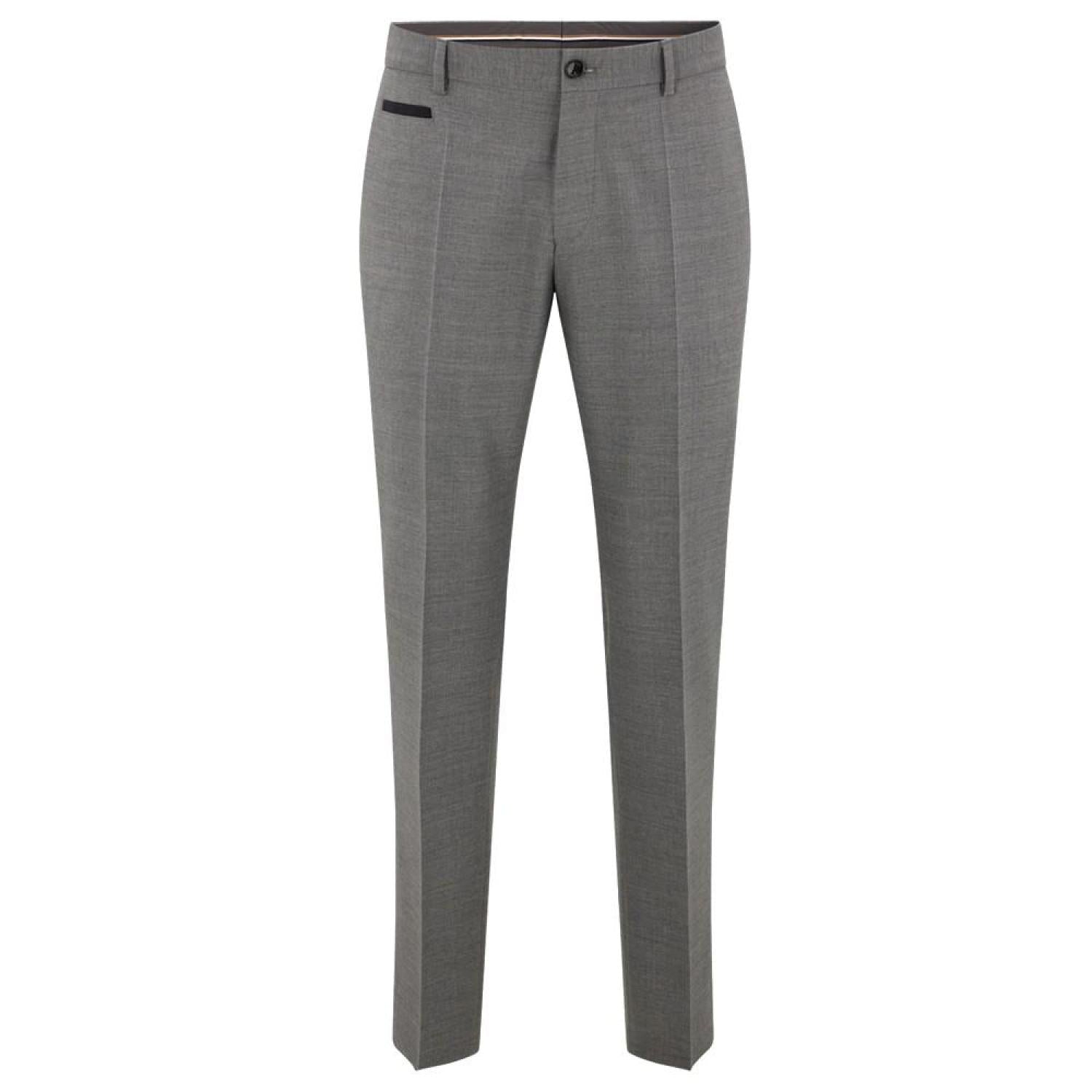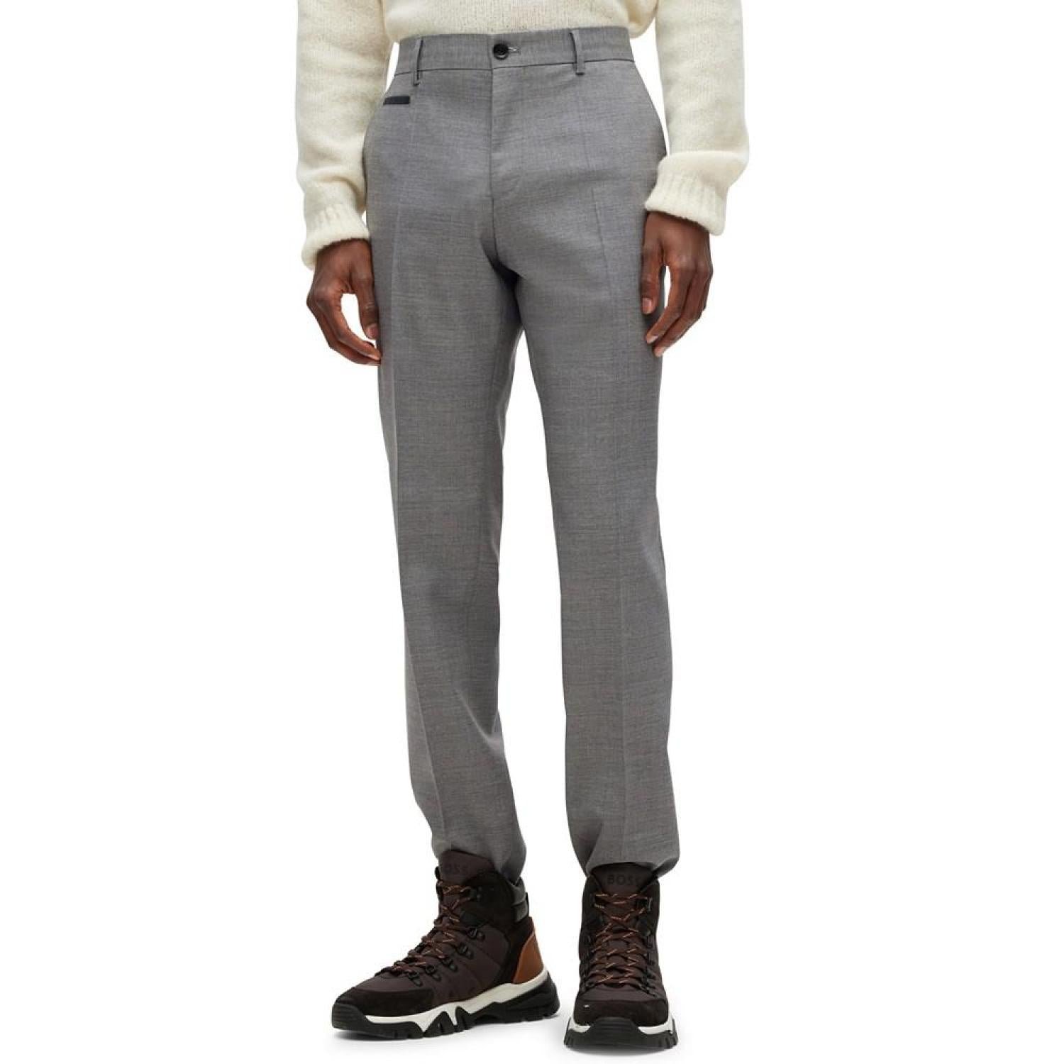 • Modern trousers by BOSS menswear. Featuring a signature-stripe trim at the rear pocket, these trousers are woven with a subtle pattern in stretch yarns for comfort in movement. The blend is rich in wool for a refined look and feel.