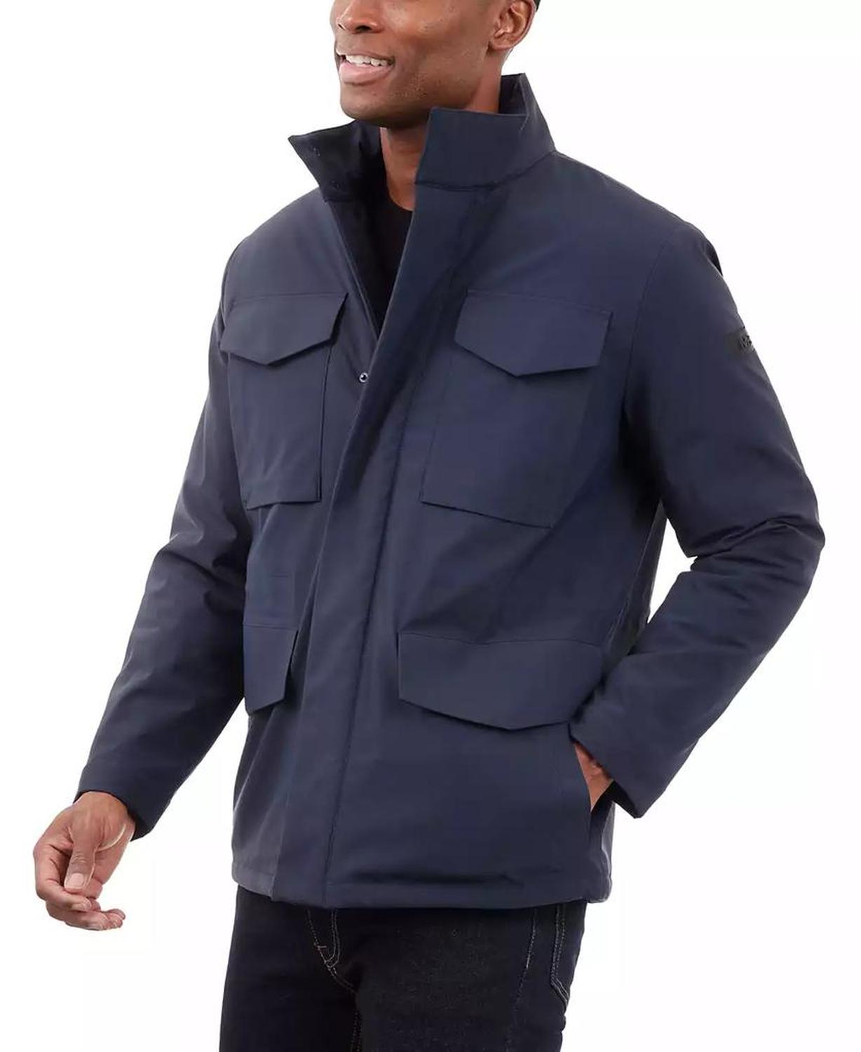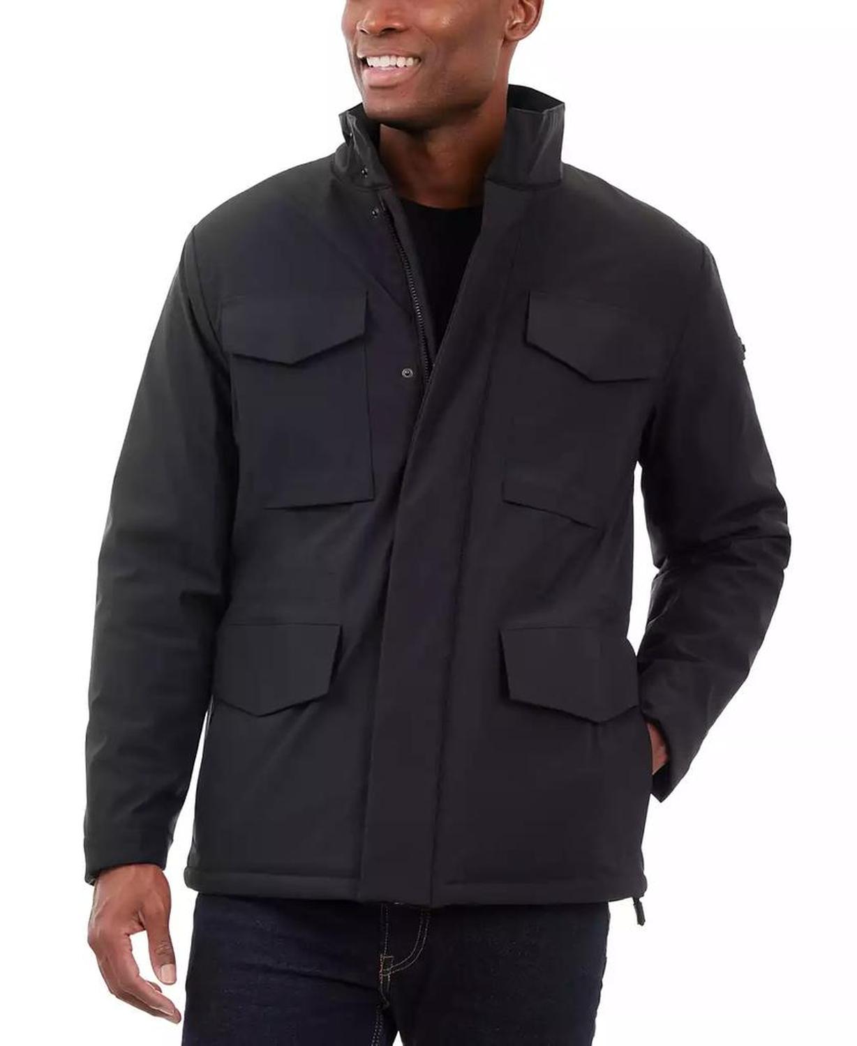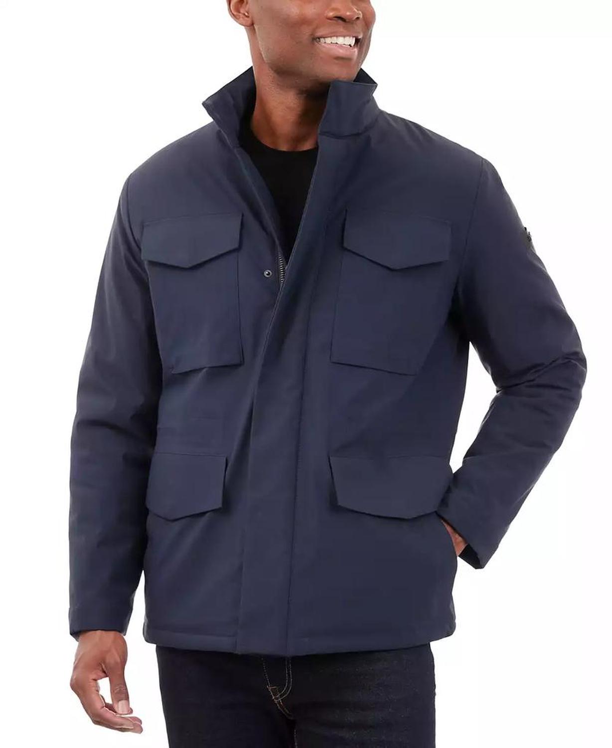 • The Michael Kors four-pocket field coat is the perfect rain coat this season. Fully quilted, it provides warmth and protection from the elements.