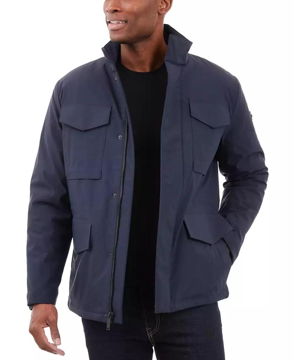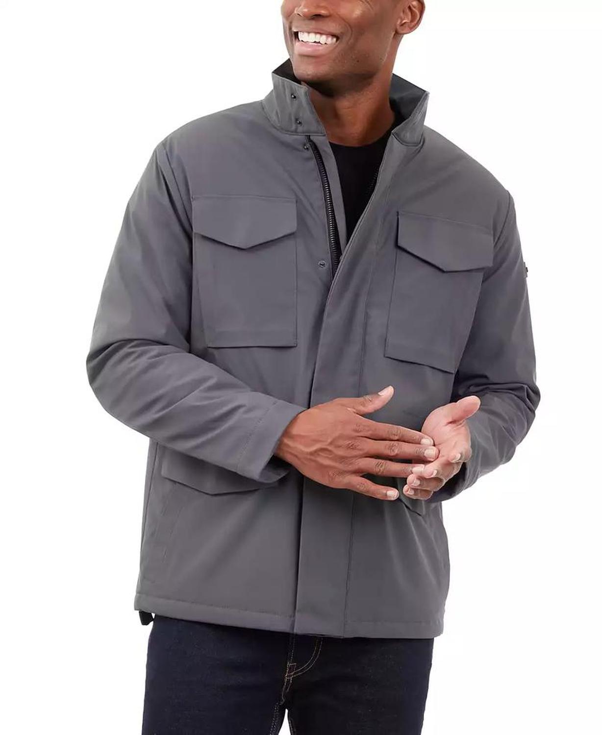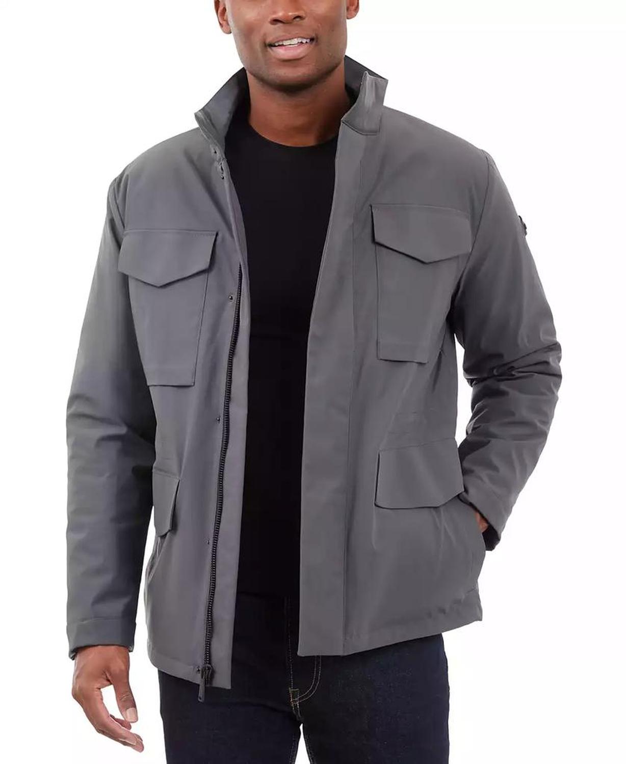 • The Michael Kors four-pocket field coat is the perfect rain coat this season. Fully quilted, it provides warmth and protection from the elements.