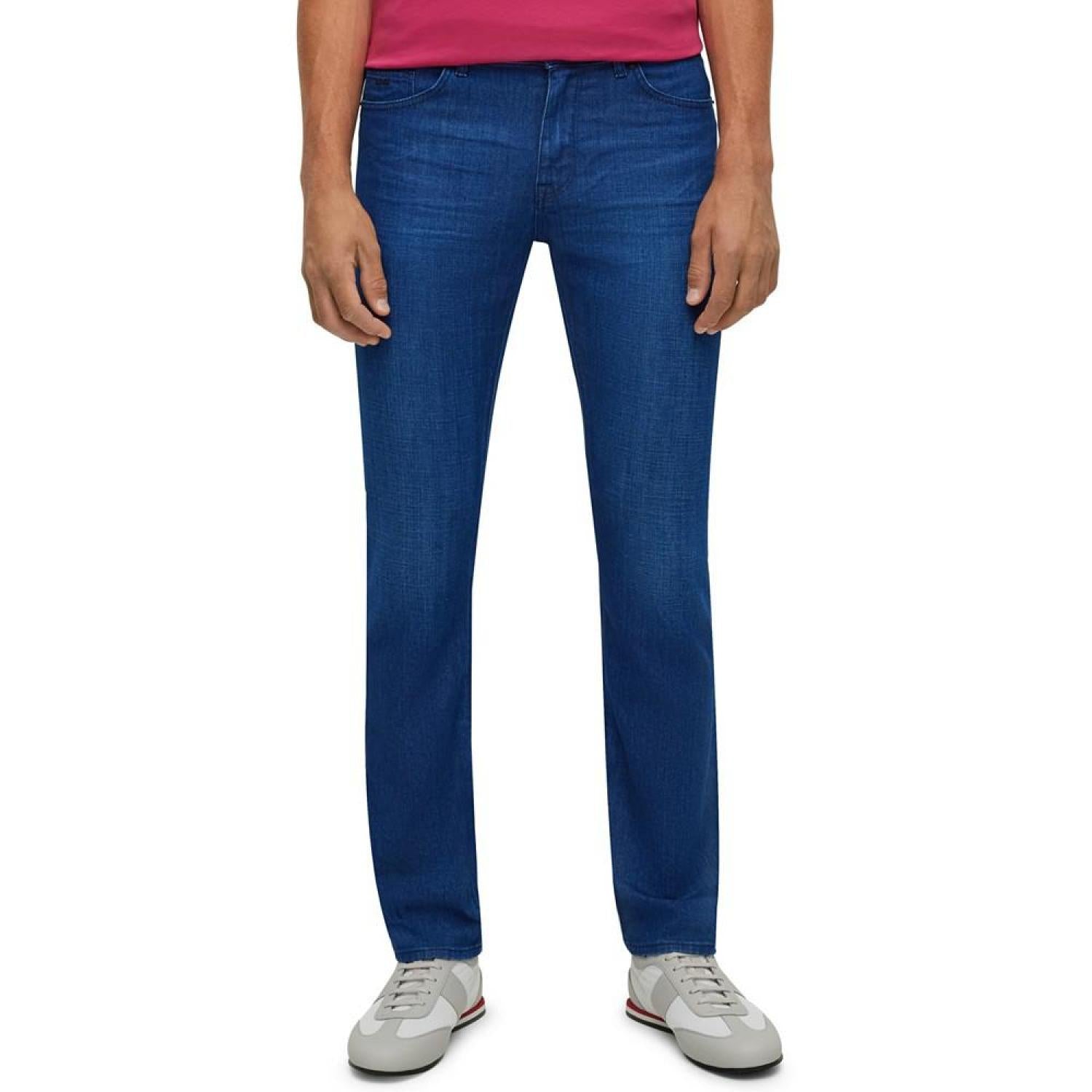 • Casual jeans in a straight fit by BOSS menswear. These regular-rise jeans are designed in blue denim with a super-soft touch that feels like cashmere.