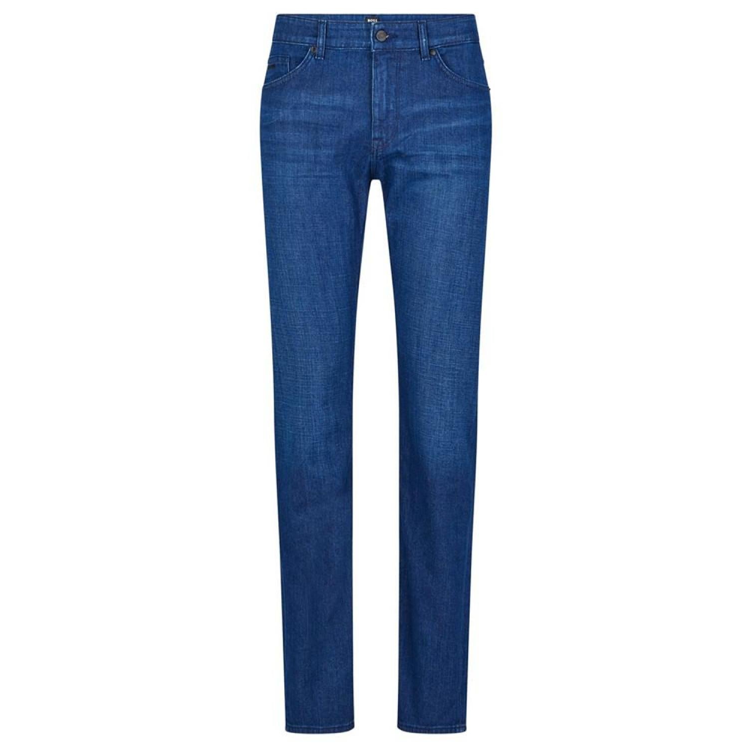 Casual jeans in a straight fit by BOSS menswear. These regular-rise jeans are designed in blue denim with a super-soft touch that feels like cashmere.