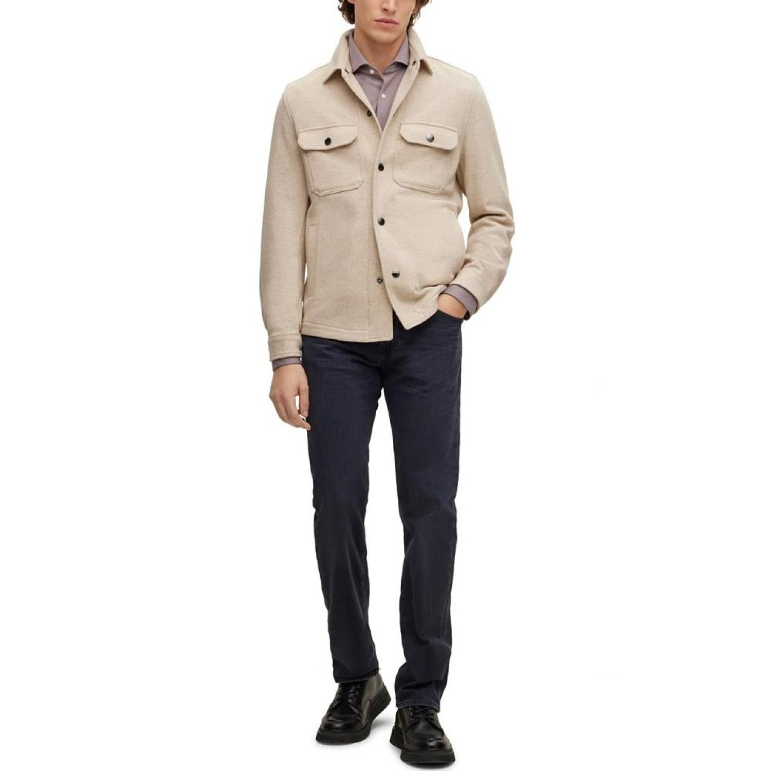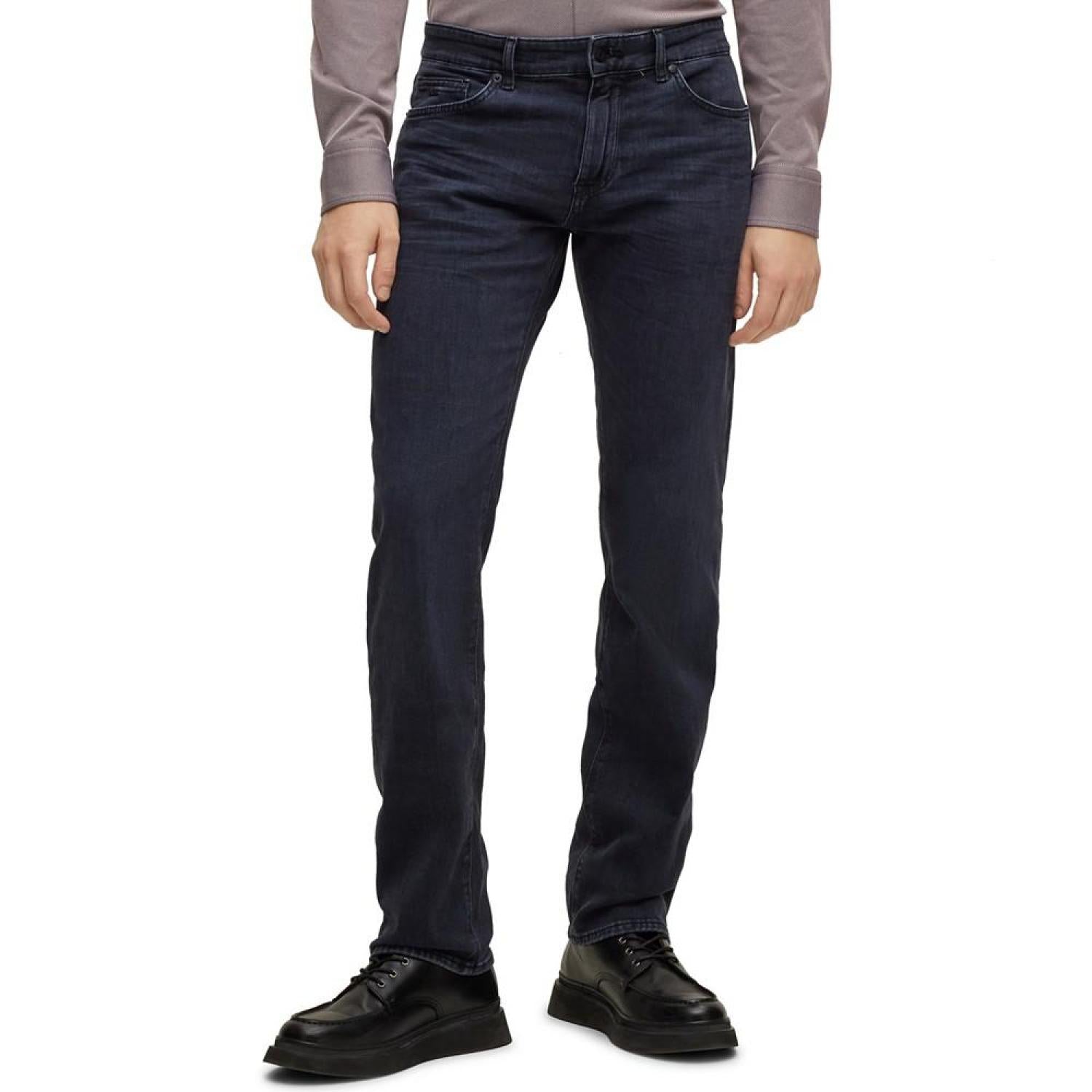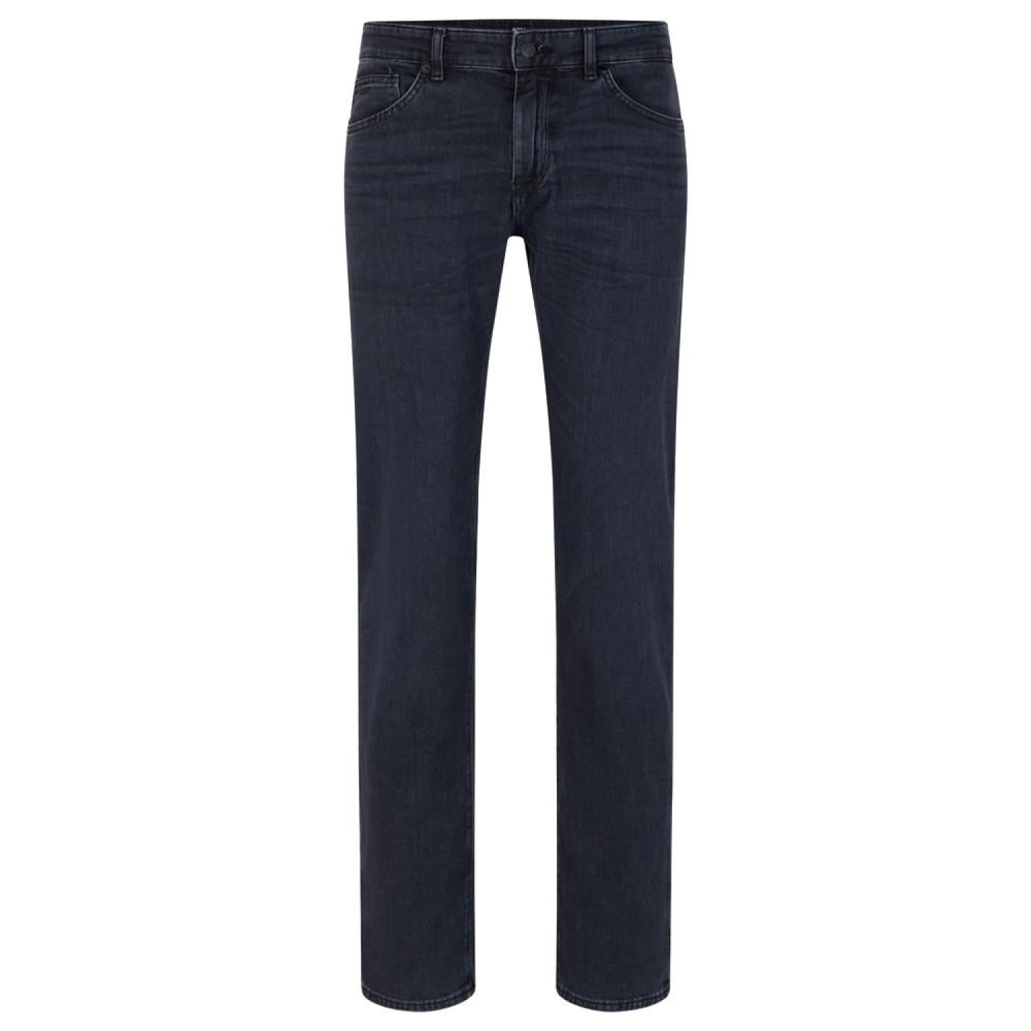 • Adaptable jeans with a regular-rise waist by BOSS Menswear. Trimmed with signature details including a grained-leather logo patch, these modern jeans are cut to a straight fit in super-soft stretch denim. This pair is delivered in a dark-blue tone for styling versatility.