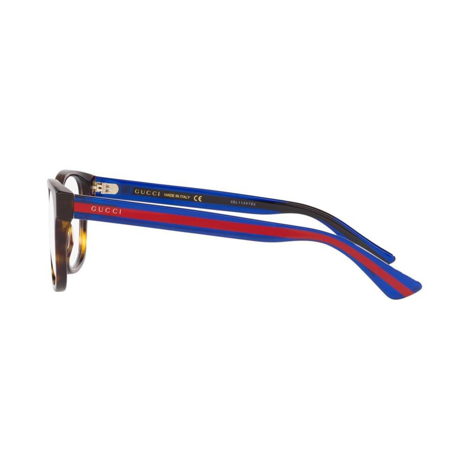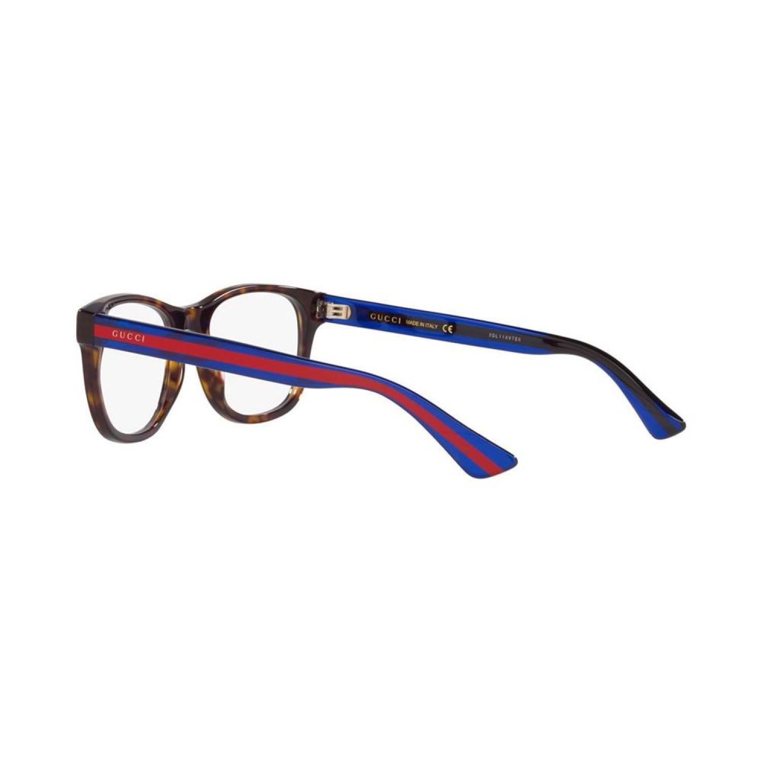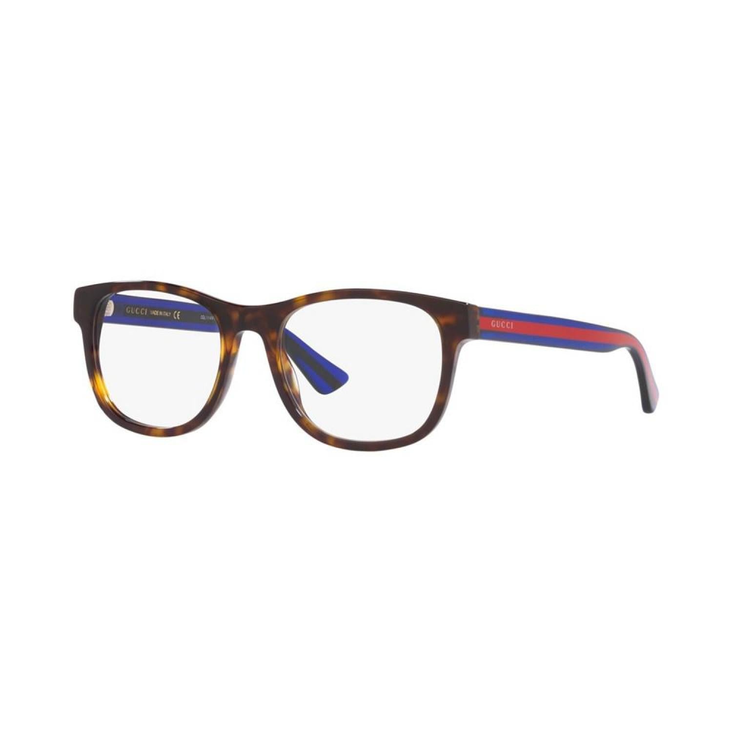 Influential innovative and progressive. Gucci is reinventing a wholly modern approach to fashion. Under the new vision of creative director Alessandro Michele the house has redefined luxury for the 21st century. Frame shape - Round Frame material - Acetate Frame type - Full rim Gender - Male Eye/Bridge/Temple width - 53/19/145 Low bridge fit - No With distinctive and unconventional creativity Gucci eyewear expresses a distinguished contemporary spirit fully representing the houses Italian eclectic aesthetic This frame is sold with demo lenses. Visit your local Lens Crafters at Macy's location for lens replacement Acetate Wipe Clean Imported