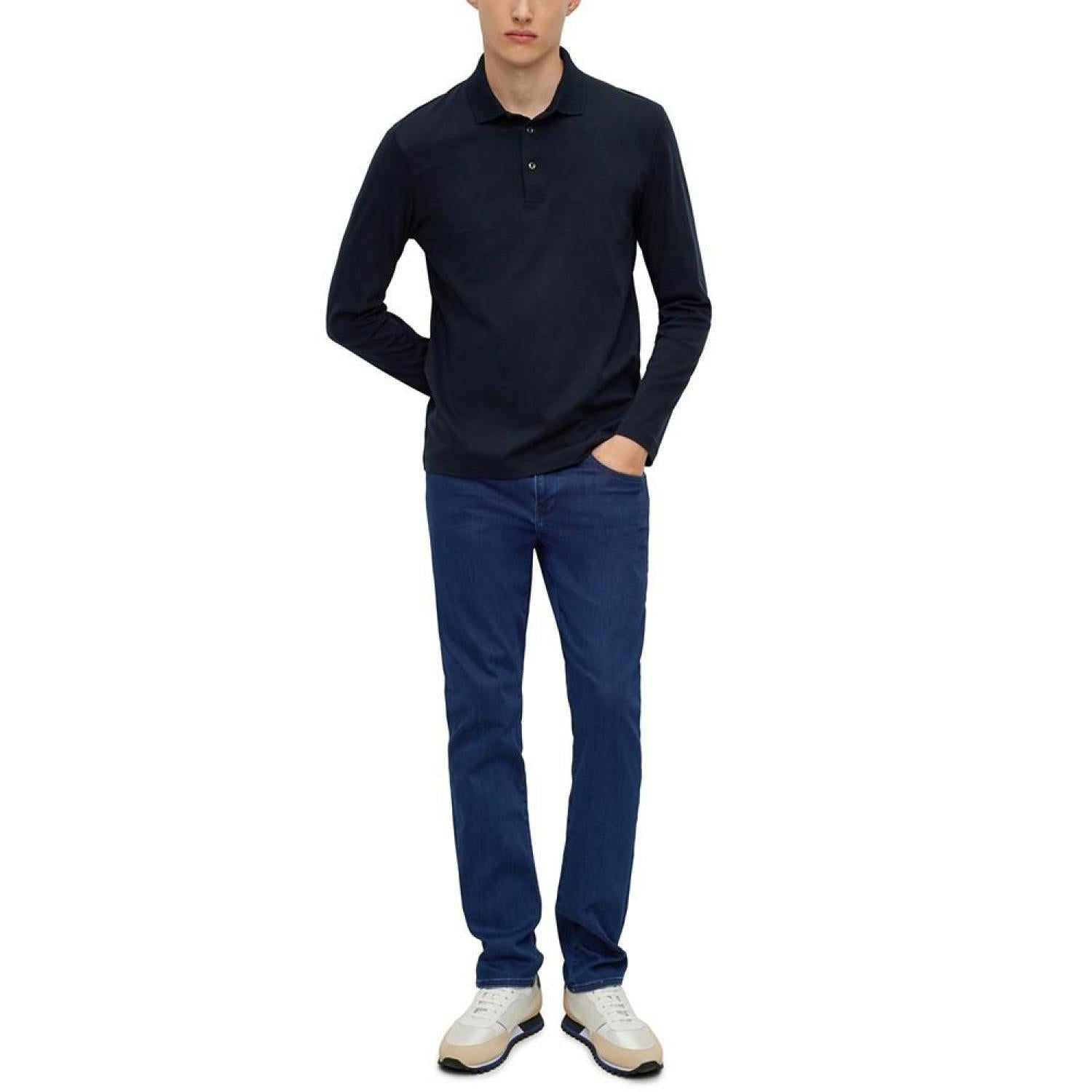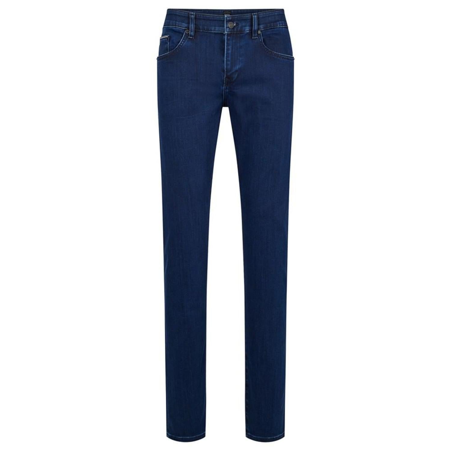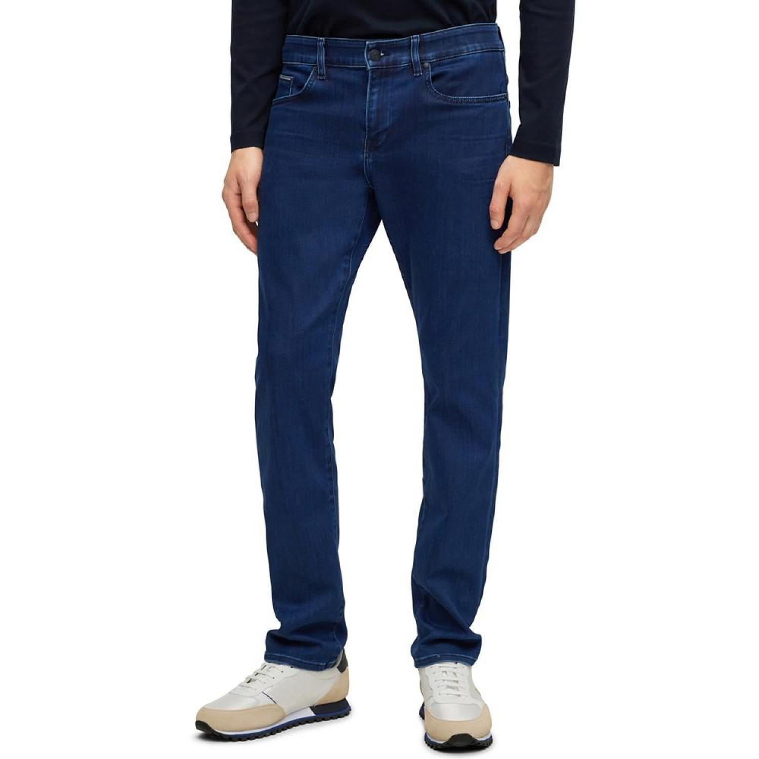 Casual jeans by BOSS menswear. Offered in a blue tone for authentic appeal, these regular-rise jeans are cut to a streamlined fit and trimmed with signature accents including an embroidered stripe at the coin pocket. The model is a size 32R and is 6'2" tall with a, 38" chest, 29" waist and 36" hips Slim fit Regular rise Button and zip closure Pockets bottom front- side pockets Slim leg Cotton, Polyester, Elastane Machine Washable Imported
