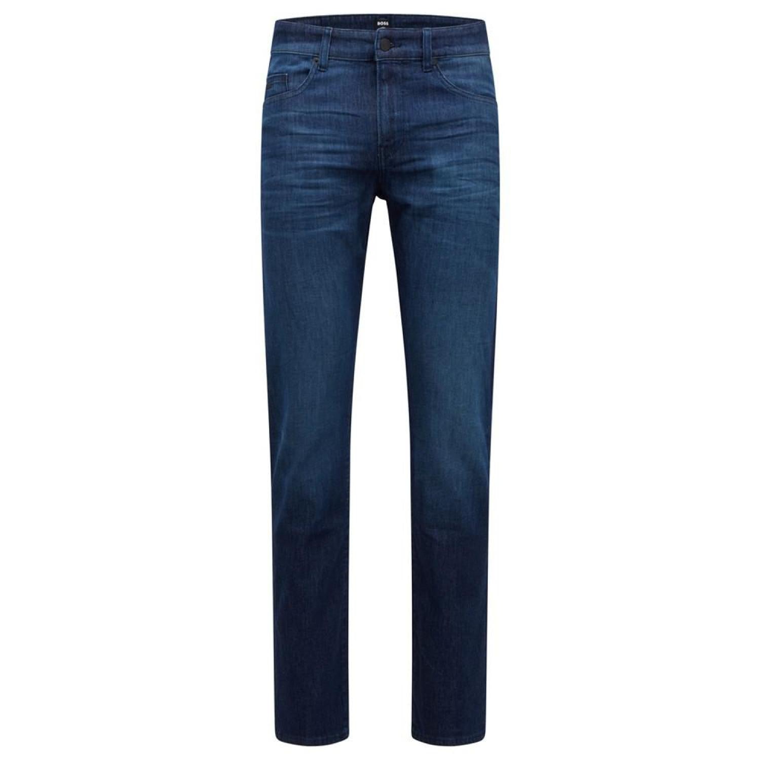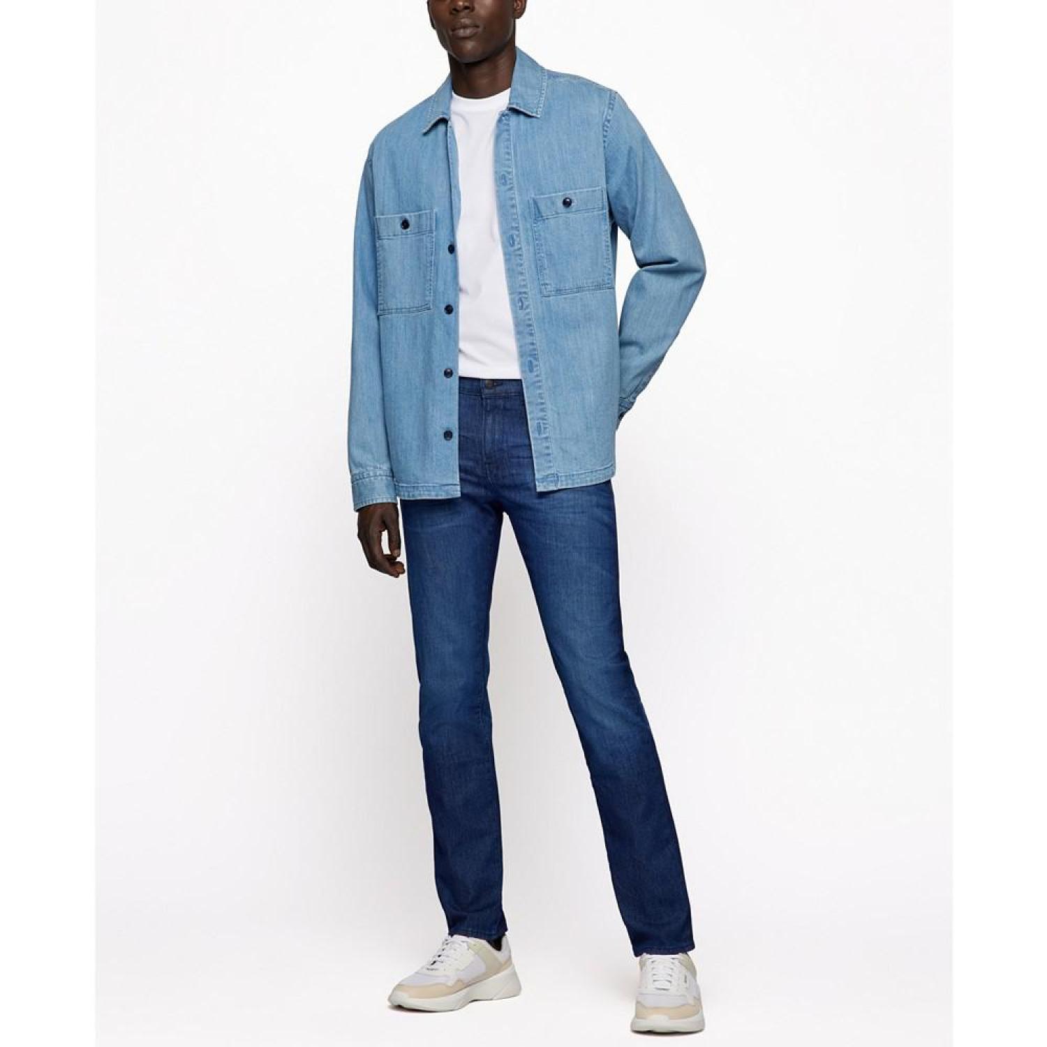 • Regular-rise jeans by BOSS menswear. Delivered in an adaptable shade of blue, these slim-fitting jeans are crafted in lightweight denim with stretch for everyday comfort.