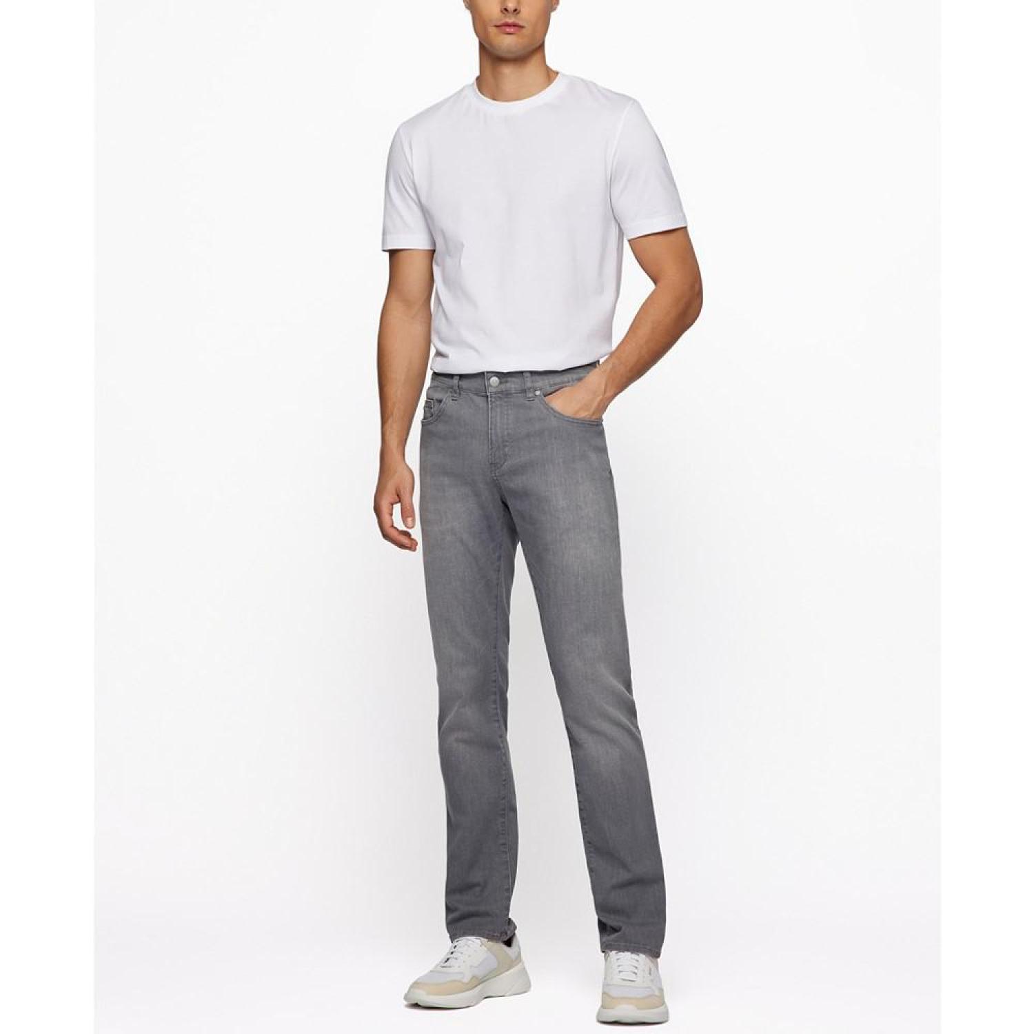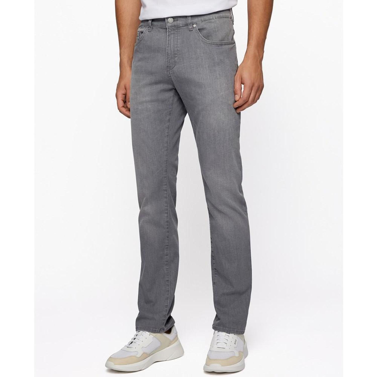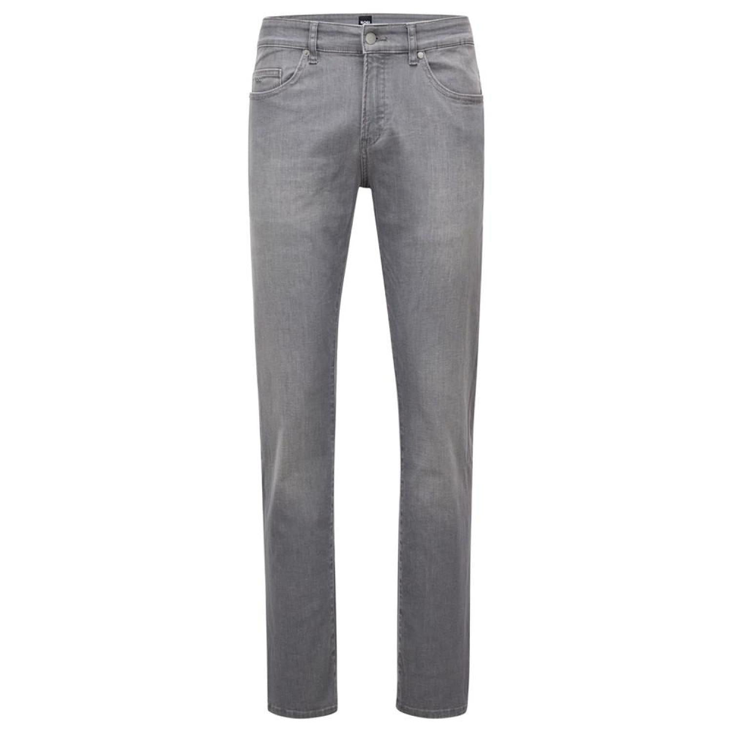 Five-pocket jeans in a gray tone by BOSS menswear. Crafted in stretch denim made with extra-fine cotton for a lightweight feel, these regular-rise jeans are offered in a streamlined fit. Signature trims include a logo patch at the rear waistband. The model is a size 32R and is 6'2" tall with a, 38" chest, 29" waist and 36" hips Slim fit Regular rise Button and zip closure Pockets bottom front- side pockets Slim leg Cotton, Elastomultiester, Elastane Machine Washable Imported