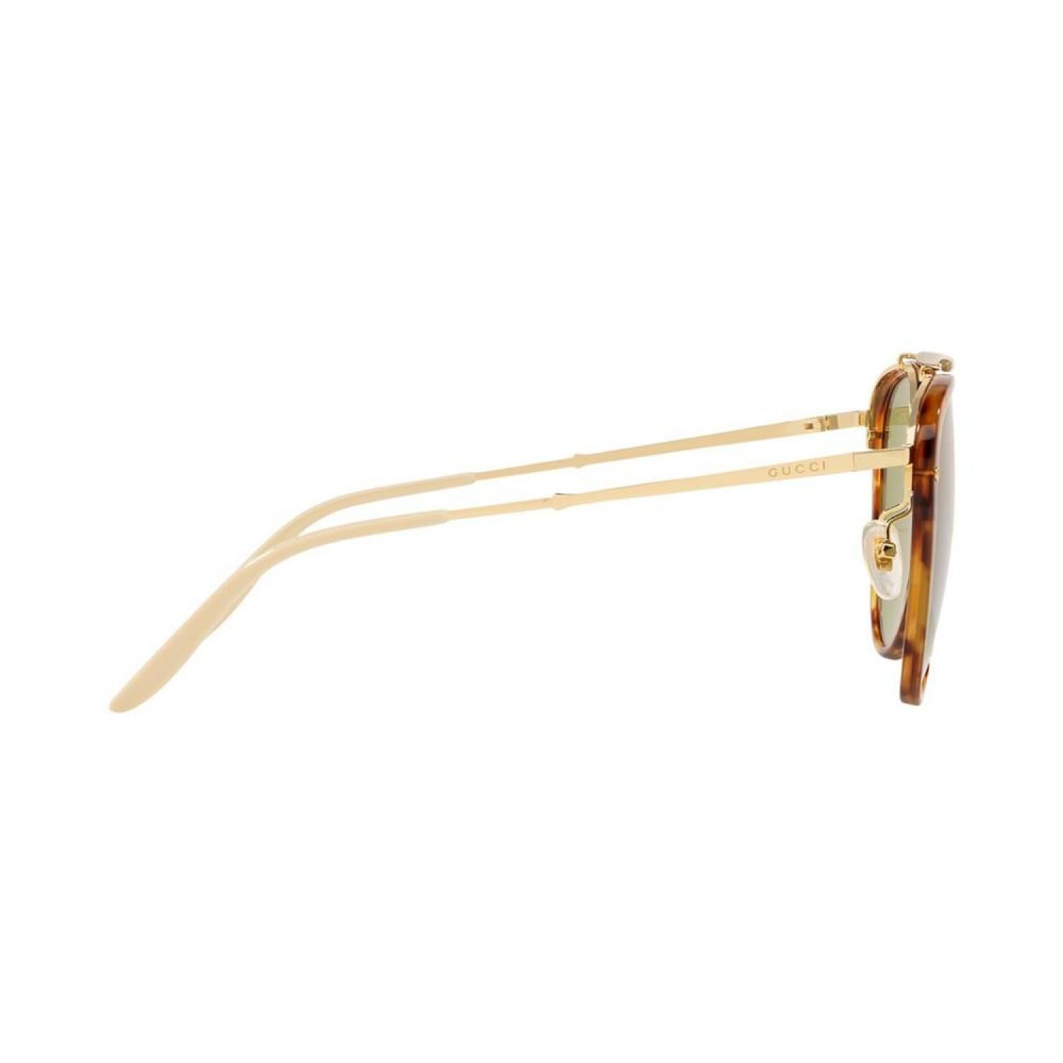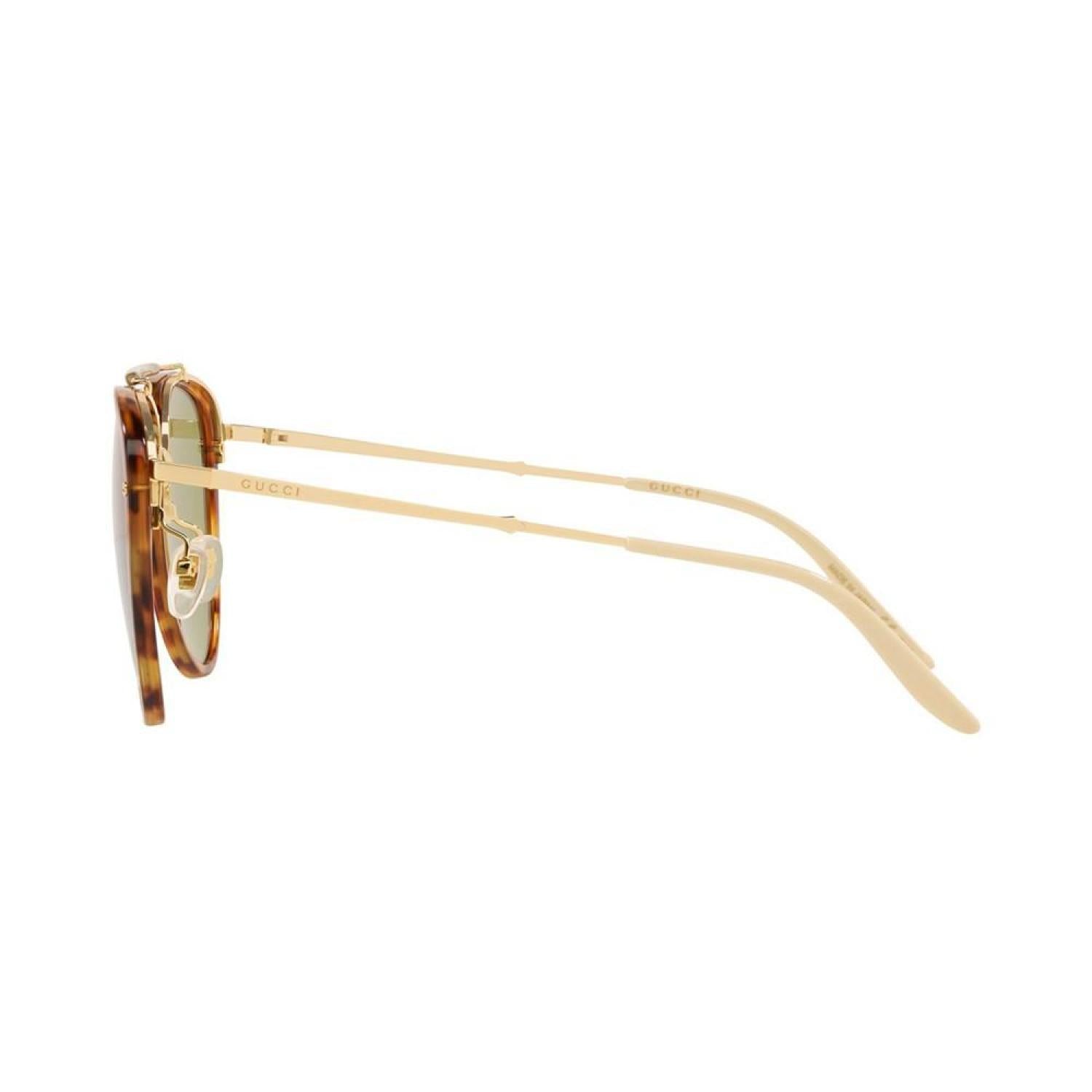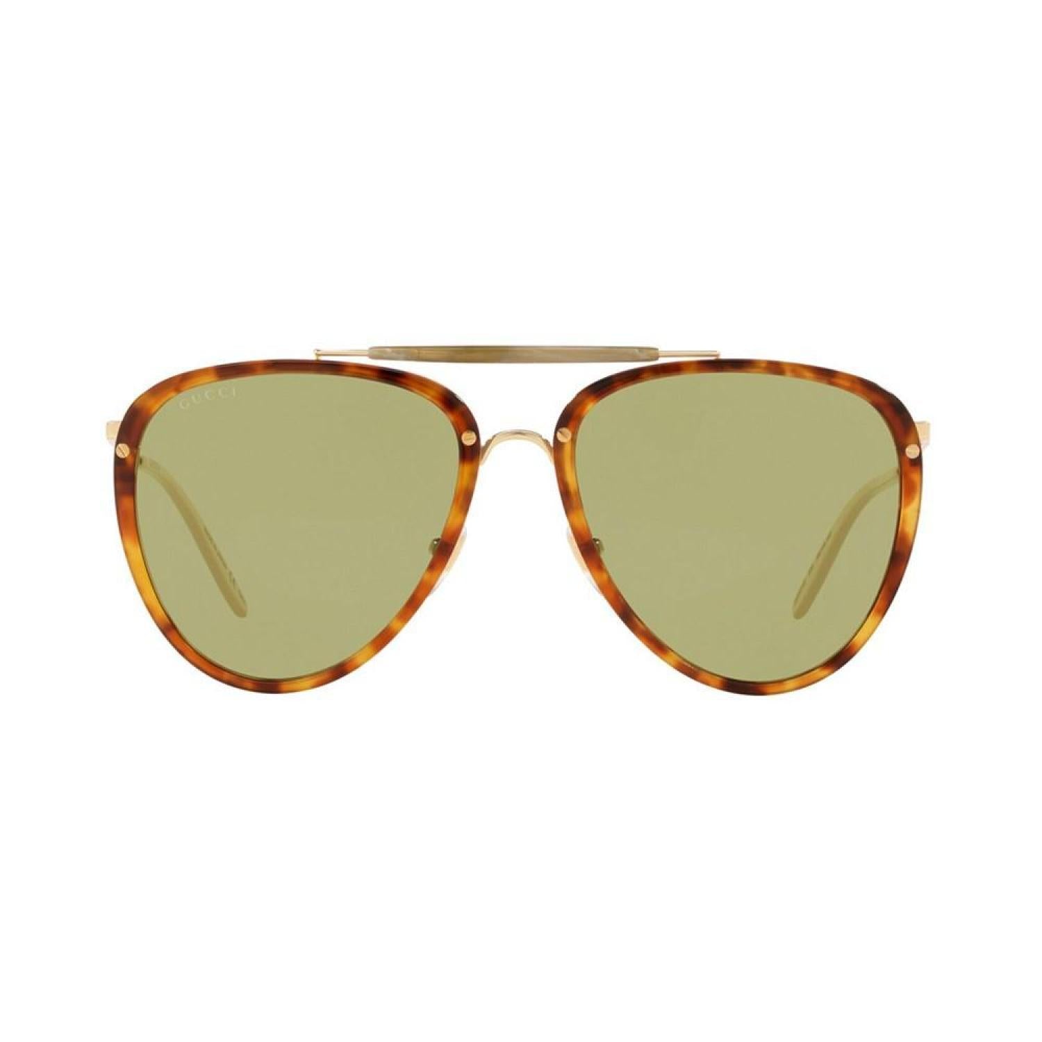 The Gucci brand represents the quintessence of luxury. Modern and sexy, it is an exclusive brand that reflects an elegant lifestyle. The sunwear collection uses only the highest quality materials and offers distinctive shapes enriched with historic icons that celebrate the House of Gucci. Best for Face Shapes: Oval, Square, Heart Frame Style: Pilot Frame Fit: Large Lens Material: Plastic Eye/Bridge/Temple: 58/19/145 Case or Microfiber pouch included Imported
