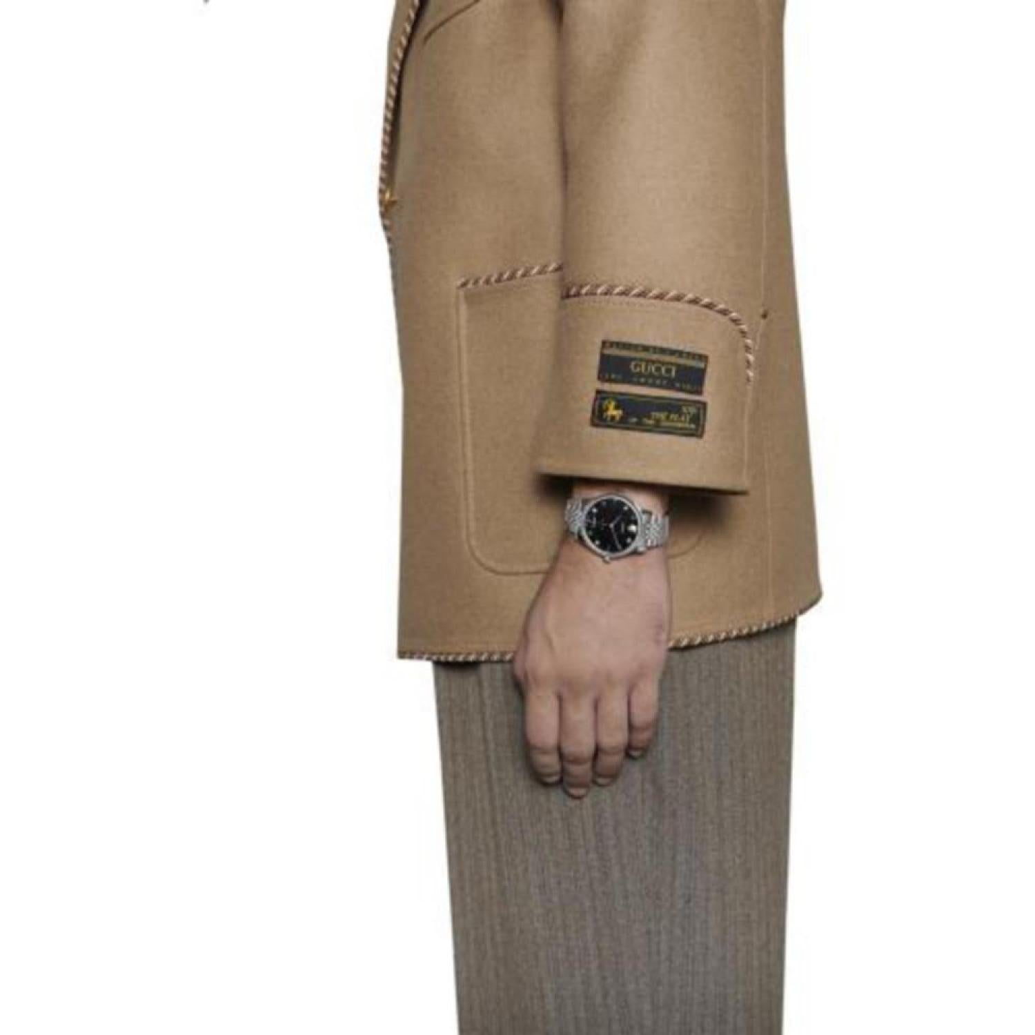• Gucci's trendsetting aesthetic appears on the bee and star motif dial of this stainless steel G-Timeless timepiece. Style #YA126354