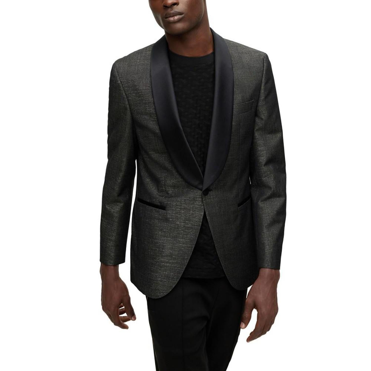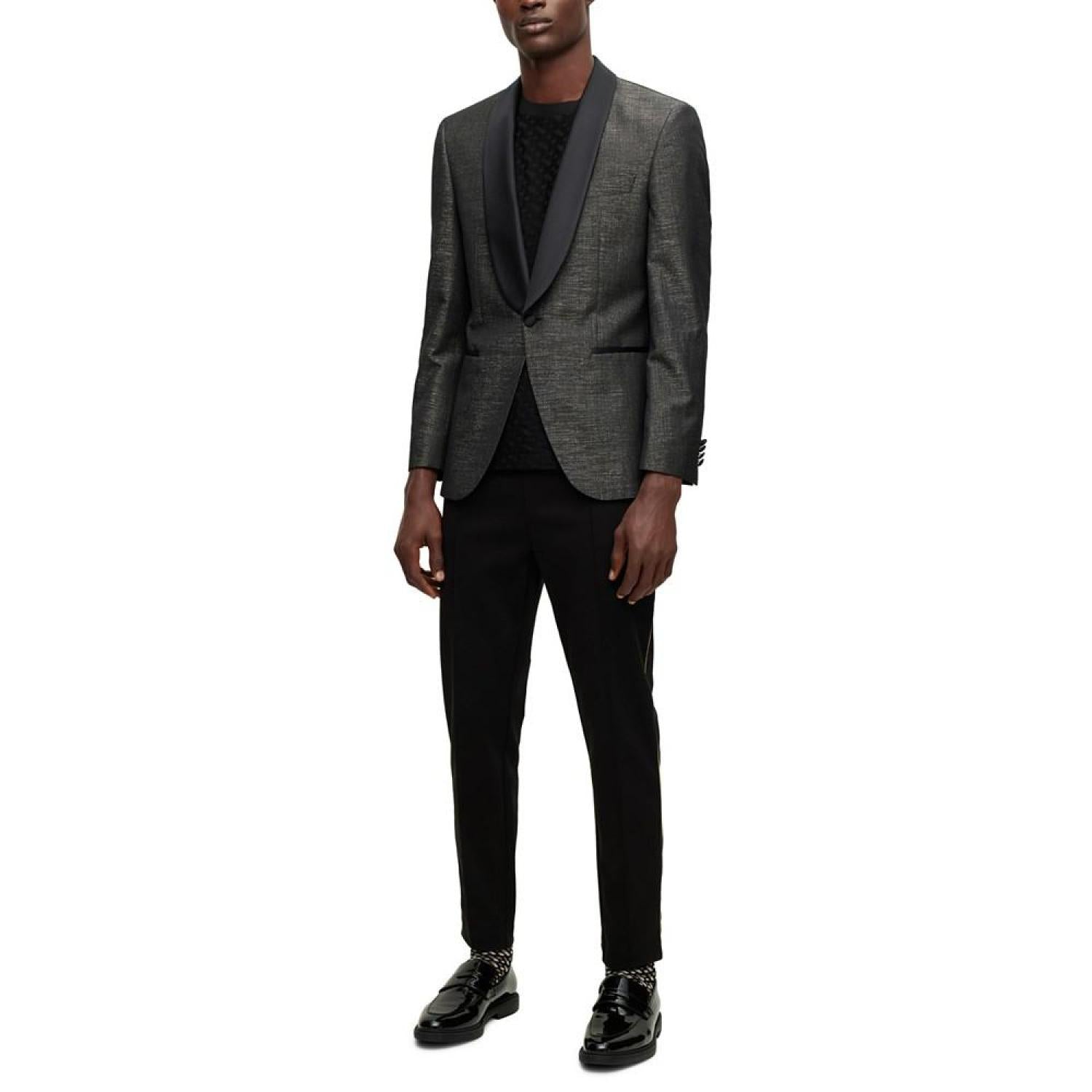 • An evening-ready tuxedo jacket by BOSS Menswear. Tailored to a regular fit for easy lines, this contemporary jacket is crafted in soft twill that's rich in wool for a refined look and feel. Silk-blend trims and monogram-print lining add the finishing touches.