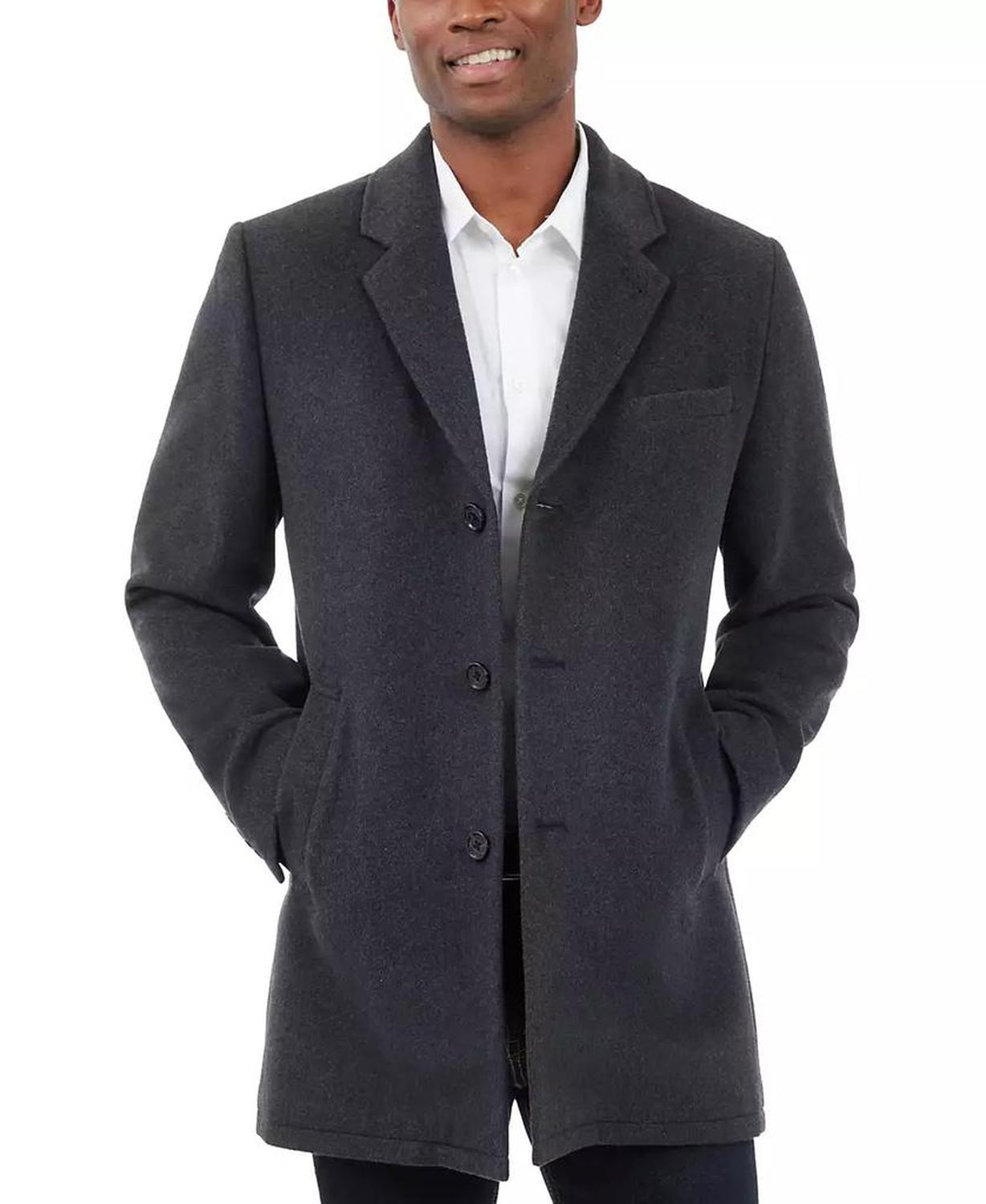 Polish a casual ensemble or perfectly finish a dress look with this Michael Kors wool-blend car coat, a timeless silhouette with enduring style. Notch lapels; front button closure Welt pocket at chest; pockets at sides Lined Camel colorway: 60% wool, 22% polyester, 9% rayon, 6% nylon, 3% other fibers; other colorways: 62% wool, 23% polyester, 10% rayon, 5% other fibers; lining, insulation: 100% polyester Dry clean Imported