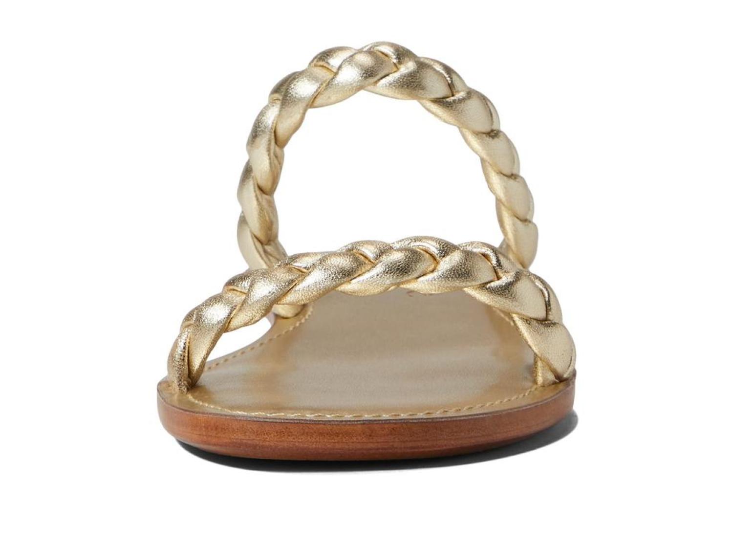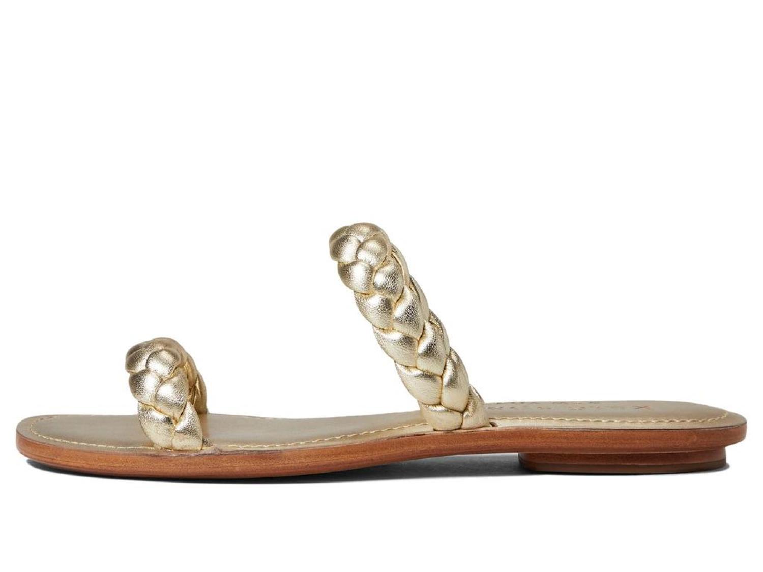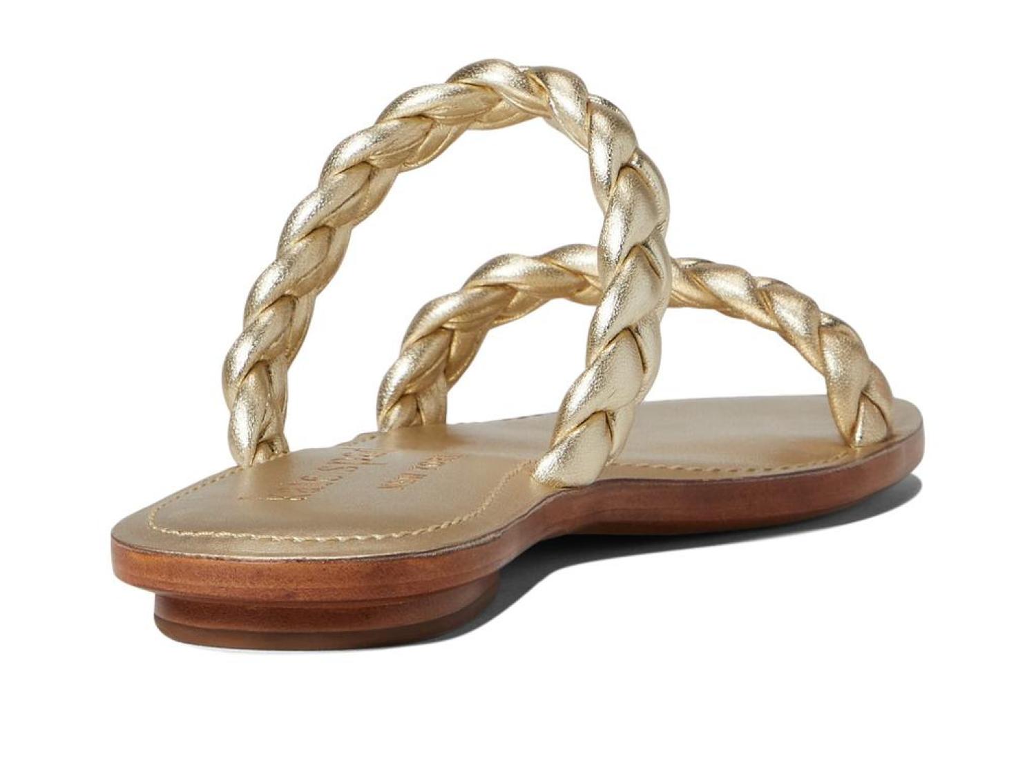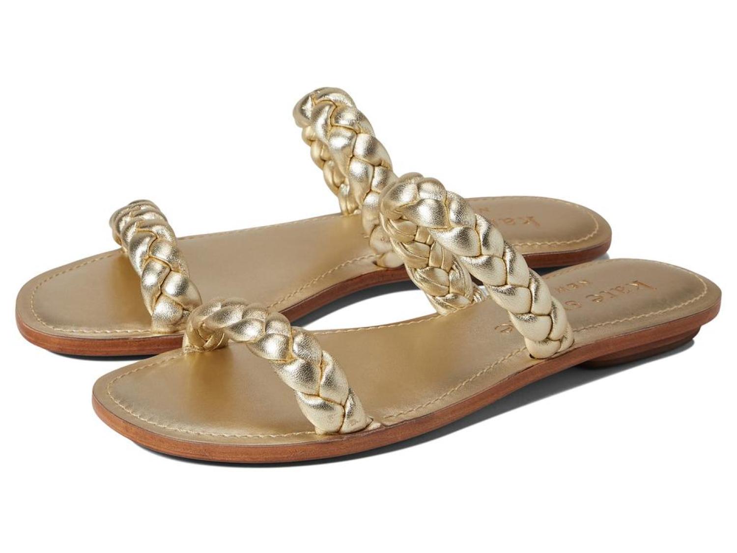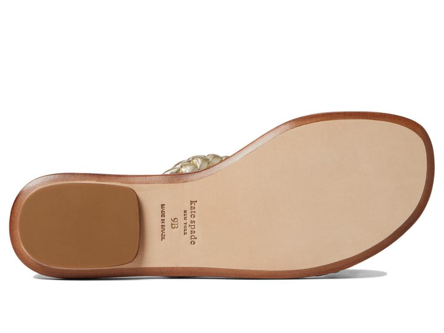 Bring on an effortless touch to your styling game by slipping into the Kate Spade New York® Miami sandals. Leather upper with braided detailing on the straps. Soft leather lining. Open round toe silhouette. Low stacked heel. Easy slip-on style. Synthetic and leather outsole. Made in Brazil. Product measurements were taken using size 9, width M. Please note that measurements may vary by size. Measurements: Weight: 6.7 oz-