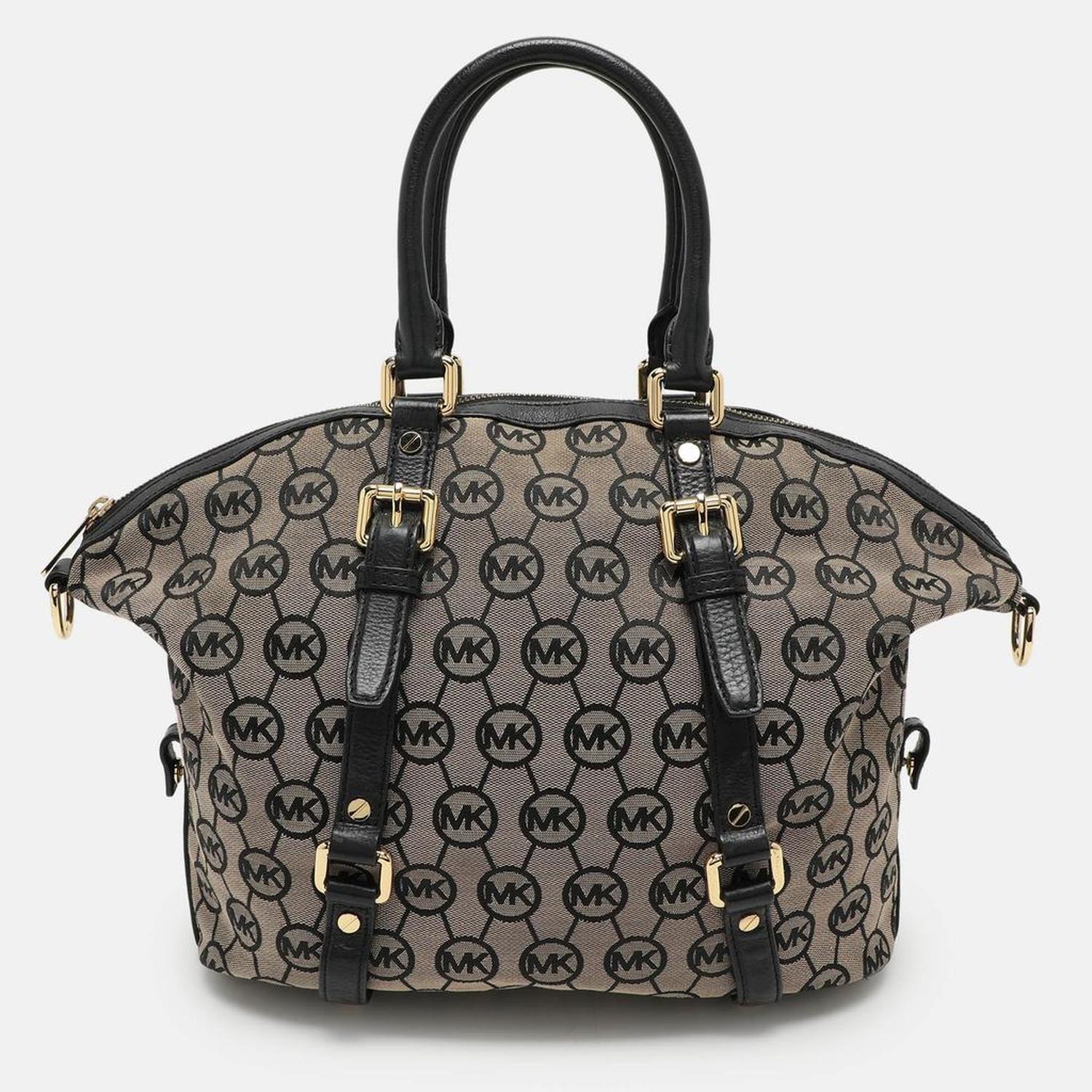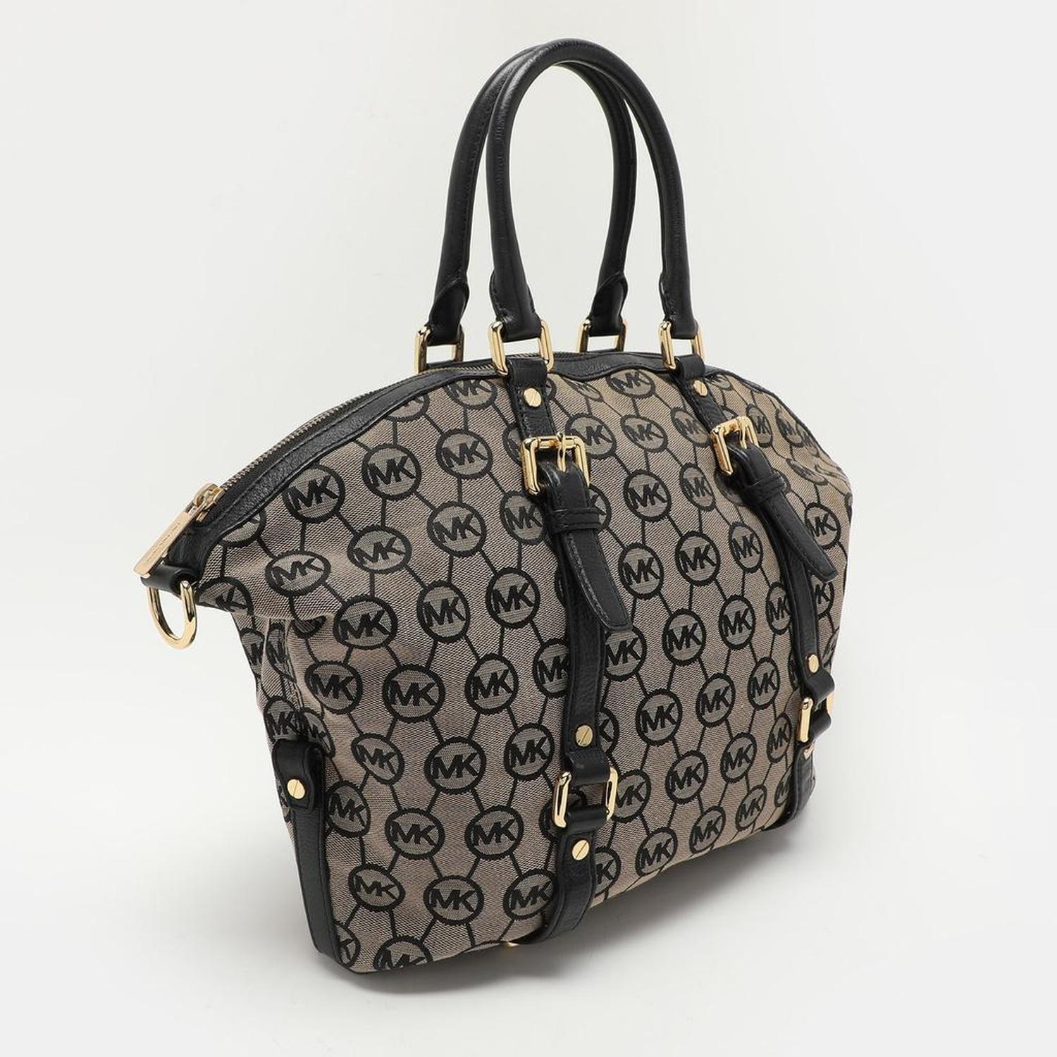 Michael Kors Beige/black Monogram Canvas And Leather Bedford Satchel