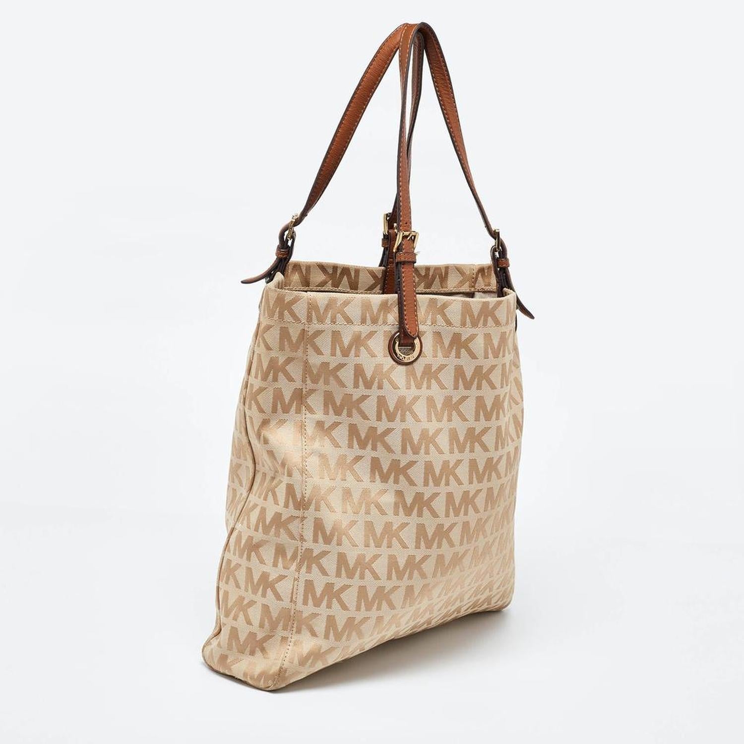 For your busy days this MICHAEL Michael Kors tote is totally perfect It is crafted from beige signature canvas and gold tone hardware. The bag is finished with dual handles and a roomy fabric interior that can easily carry your essentials.