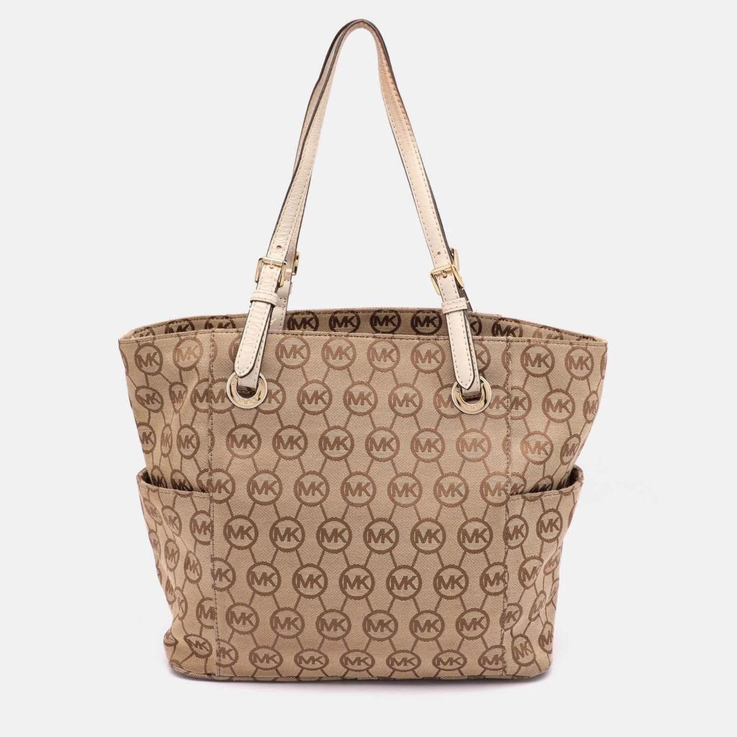 Michael Kors Beige/brown Signature Canvas Jet Set Tote