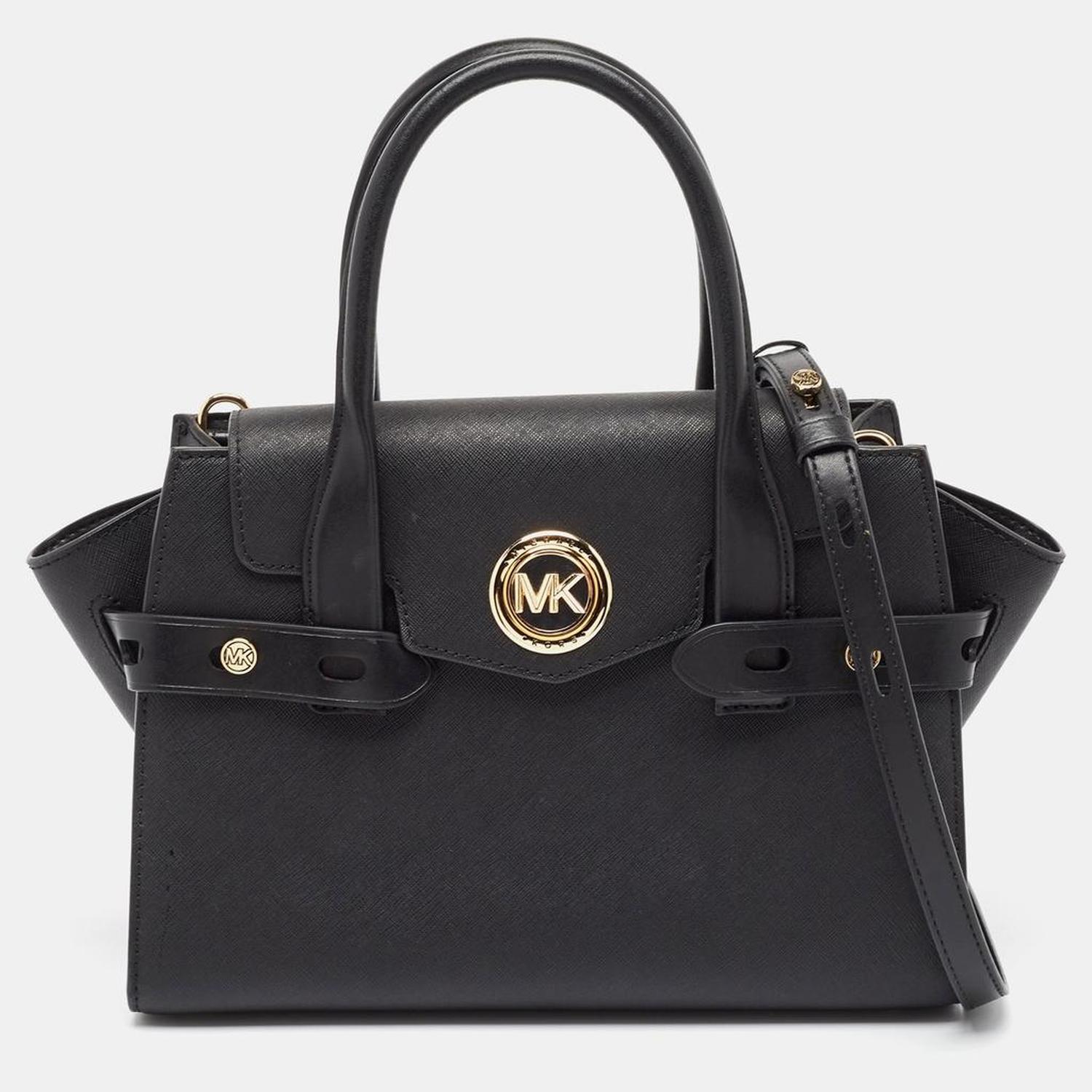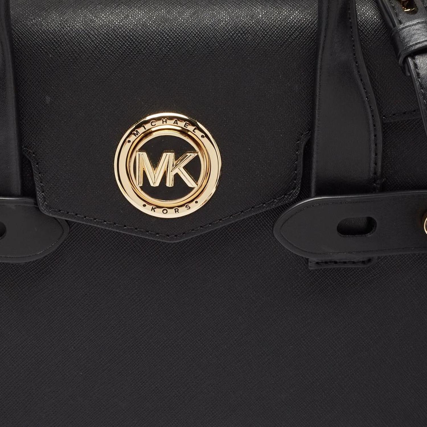• Perfect for work or travel this Michael Kors tote is made of leather to be classy and durable. It has two handles a front MK logo and a spacious lined interior.