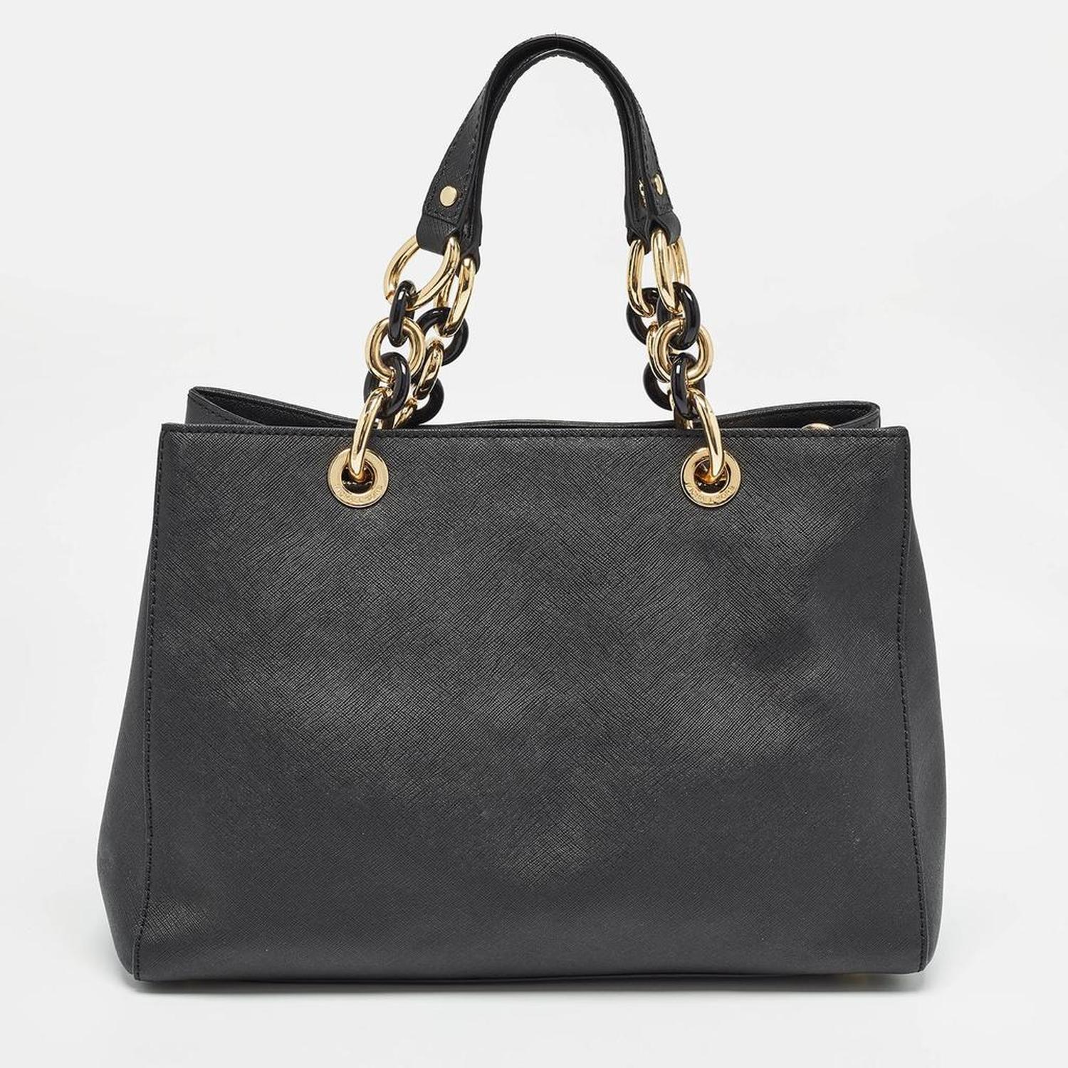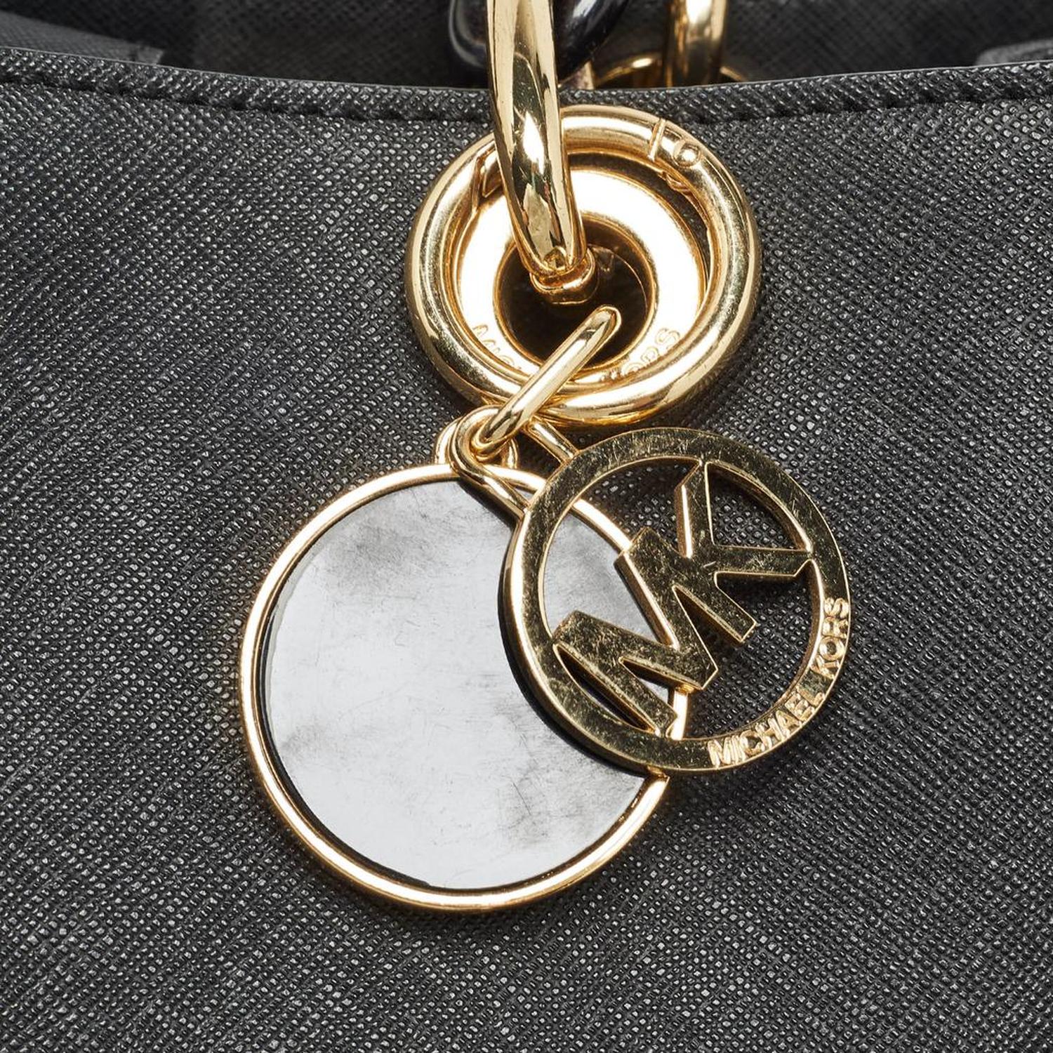 • This Cynthia tote by MICHAEL Michael Kors will provide you with the utmost comfort and a classy look. Crafted from leather it is paired with dual handles and a branded charm. The fabric lined interior of the bag has the optimum storage capacity to store everything you need.