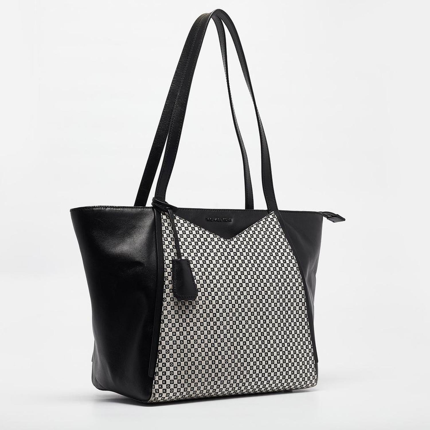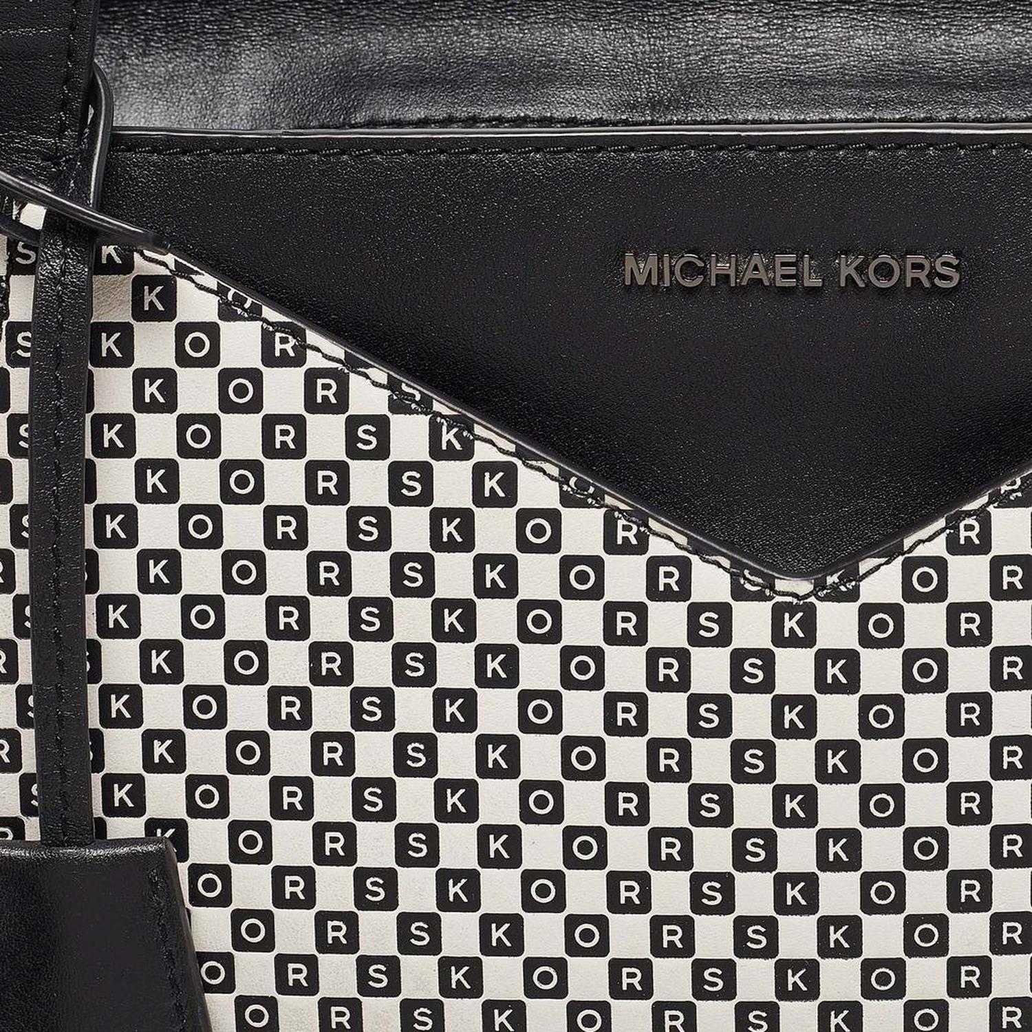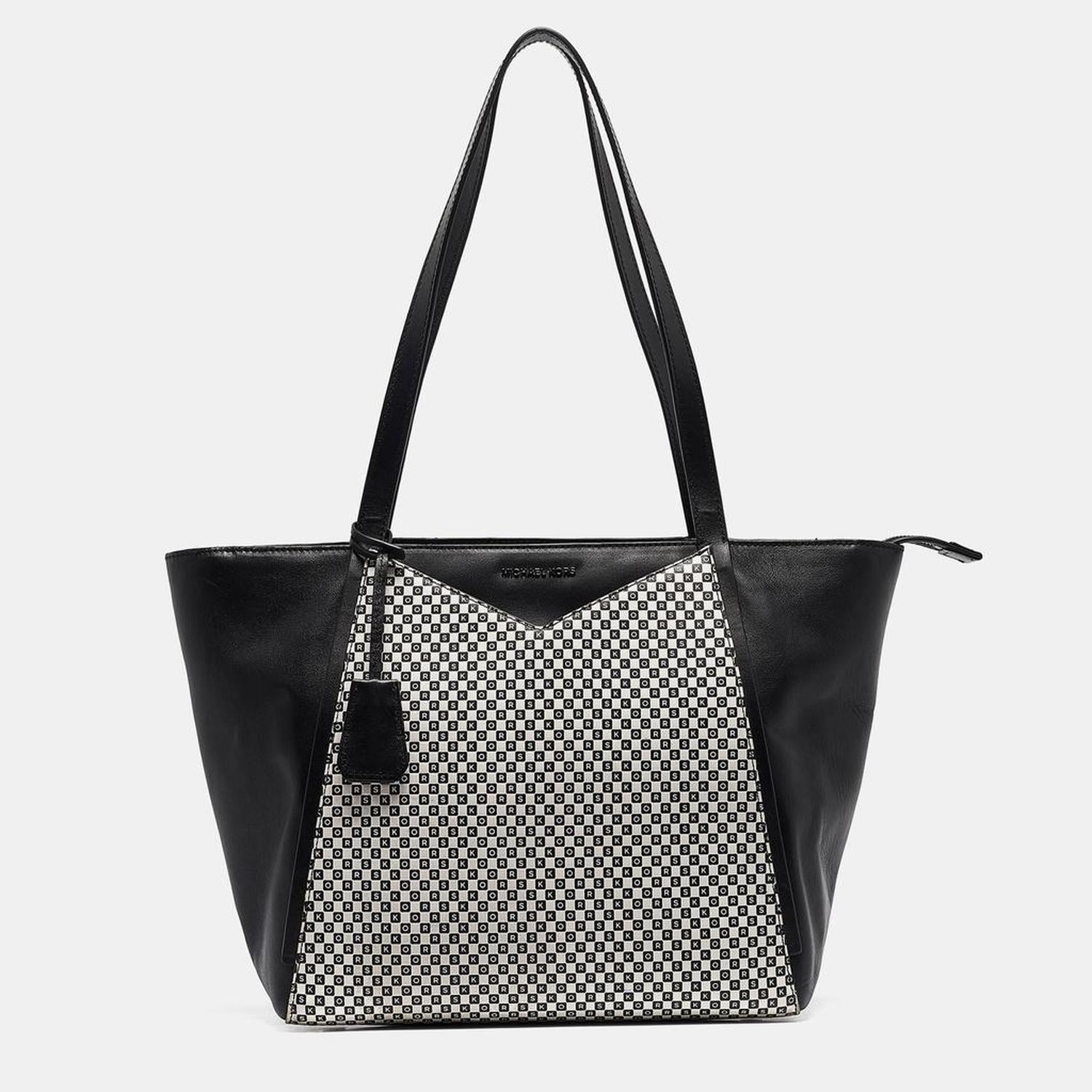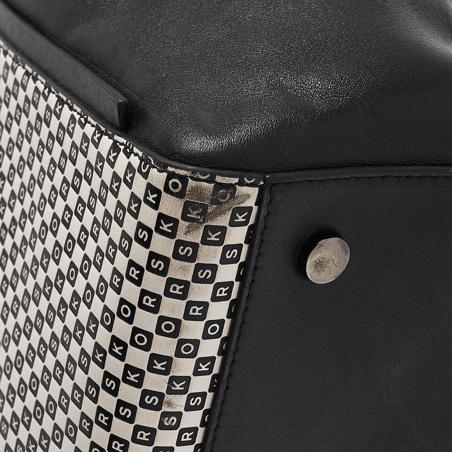 Michael Kors Black/white Checkboard Logo Leather Large Whitney Tote