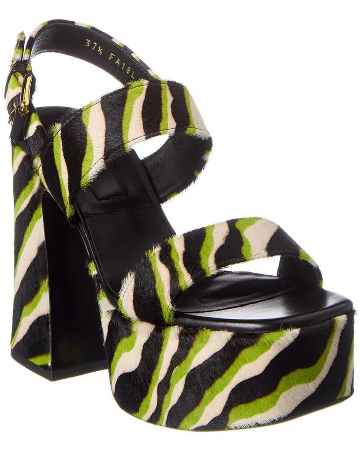 Introducing the Michael Kors Collection Blaire Haircalf Sandal – a perfect blend of luxury, glamour, and all-American style. Designed for the modern woman who craves effortless elegance, these lime hair calf sandals are a statement accessory that will elevate any outfit.The Blaire Haircalf Sandal features a sleek buckle closure, ensuring a secure and adjustable fit. The lightly padded leather insole guarantees maximum comfort, allowing you to stride with confidence all day long. The rubber sole offers excellent traction, ensuring stability on any surface.With a towering 4.5-inch heel and a 2-inch platform, these sandals provide a leg-lengthening effect that exudes sophistication and allure. The eye-catching lime hair calf material adds a touch of playful glamour, making these sandals a must-have for fashion enthusiasts.Handcrafted in Italy, this Michael Kors Collection sandal bears the mark of exceptional craftsmanship and superior quality. Each step is a testament to the brand's commitment to delivering luxury footwear that stands the test of time.Indulge in the allure of the Michael Kors Collection Blaire Haircalf Sandal and experience the perfect combination of style, comfort, and craftsmanship. Elevate your wardrobe, make a statement, and embrace the easy glamour and luxurious living that the Michael Kors Collection brand represents.