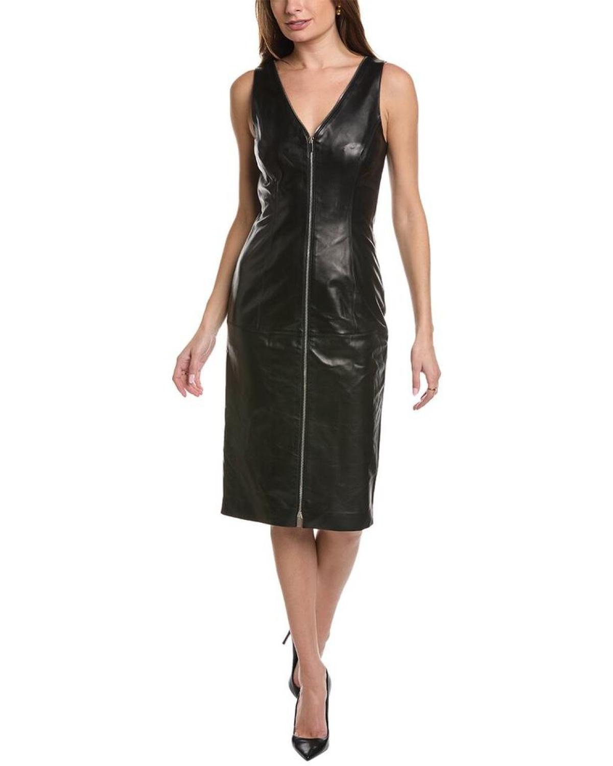 Michael Kors Collection Front Zip Leather Sheath Dress