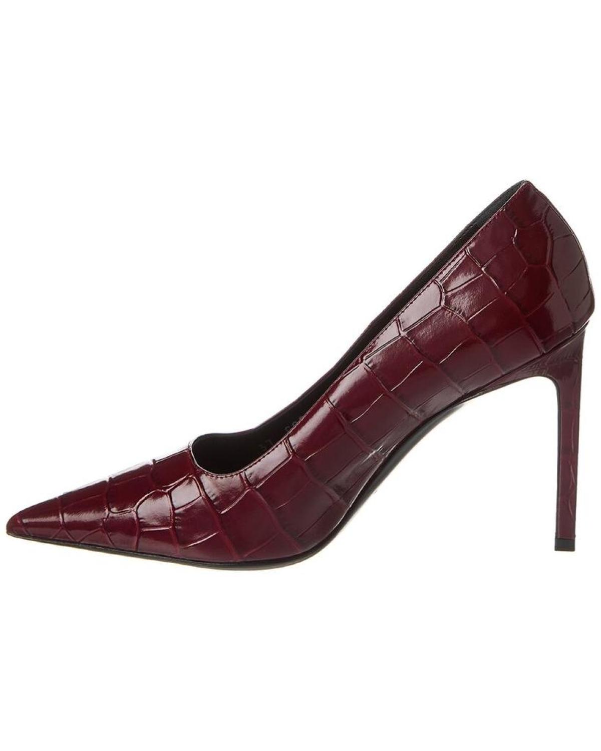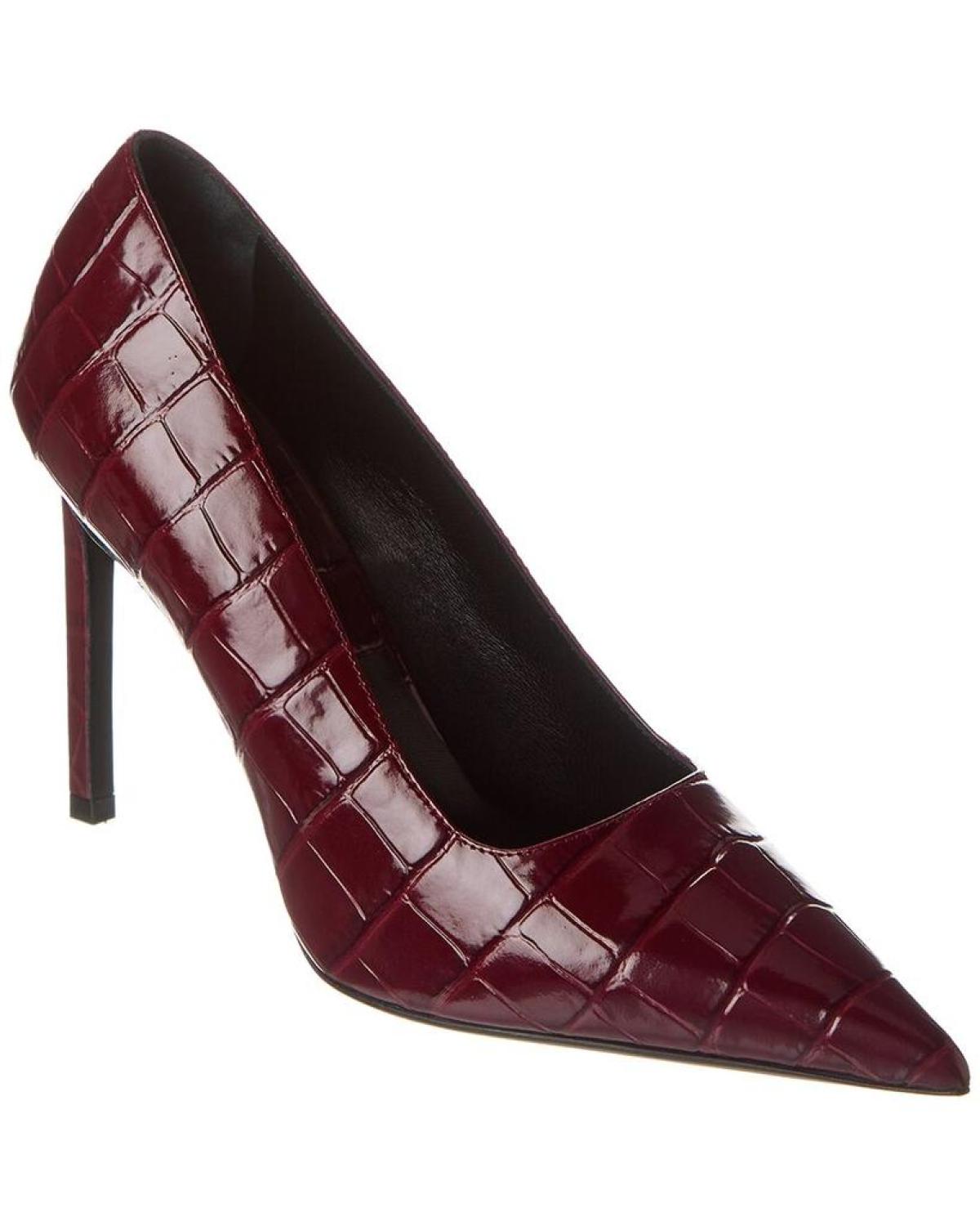 Introducing the Michael Kors Collection Martine Runway Croc-Embossed Leather Pump, a timeless and sophisticated addition to your shoe collection. Crafted from luxurious burgundy croc-embossed leather, these pumps exude elegance and style. The pointy-toe design adds a touch of femininity, making them perfect for any occasion. With a lightly padded leather insole, these pumps ensure maximum comfort, allowing you to strut your stuff all day and night. The smooth leather sole provides durability and traction, ensuring a confident stride.Standing at a stunning 4 inches, these pumps give you the perfect amount of height, elongating your legs and adding a touch of glamour to your outfit. Please note that size selections for this product are in European sizes. Please reference the size chart for accurate US conversions. Made in Italy, these pumps showcase the impeccable craftsmanship that Michael Kors Collection is known for. All measurements are approximate and were taken from a size 38, slight variations may occur.Immerse yourself in all-American style with easy glamour and luxurious living. Elevate any outfit with the Michael Kors Collection Martine Runway Croc-Embossed Leather Pump, a true statement piece for fashion-forward women.