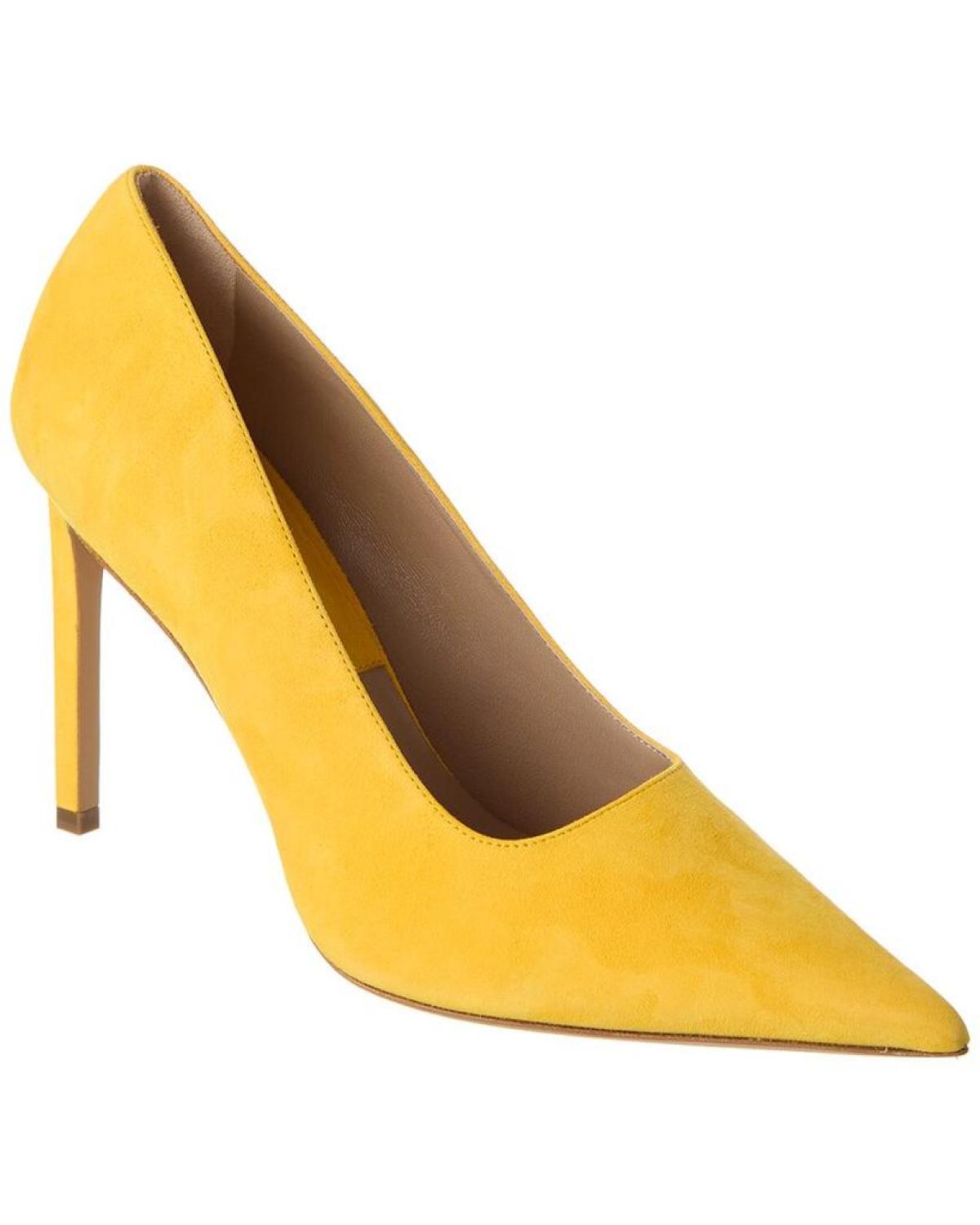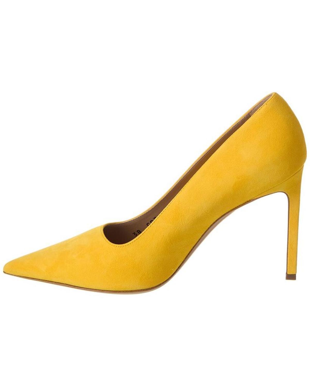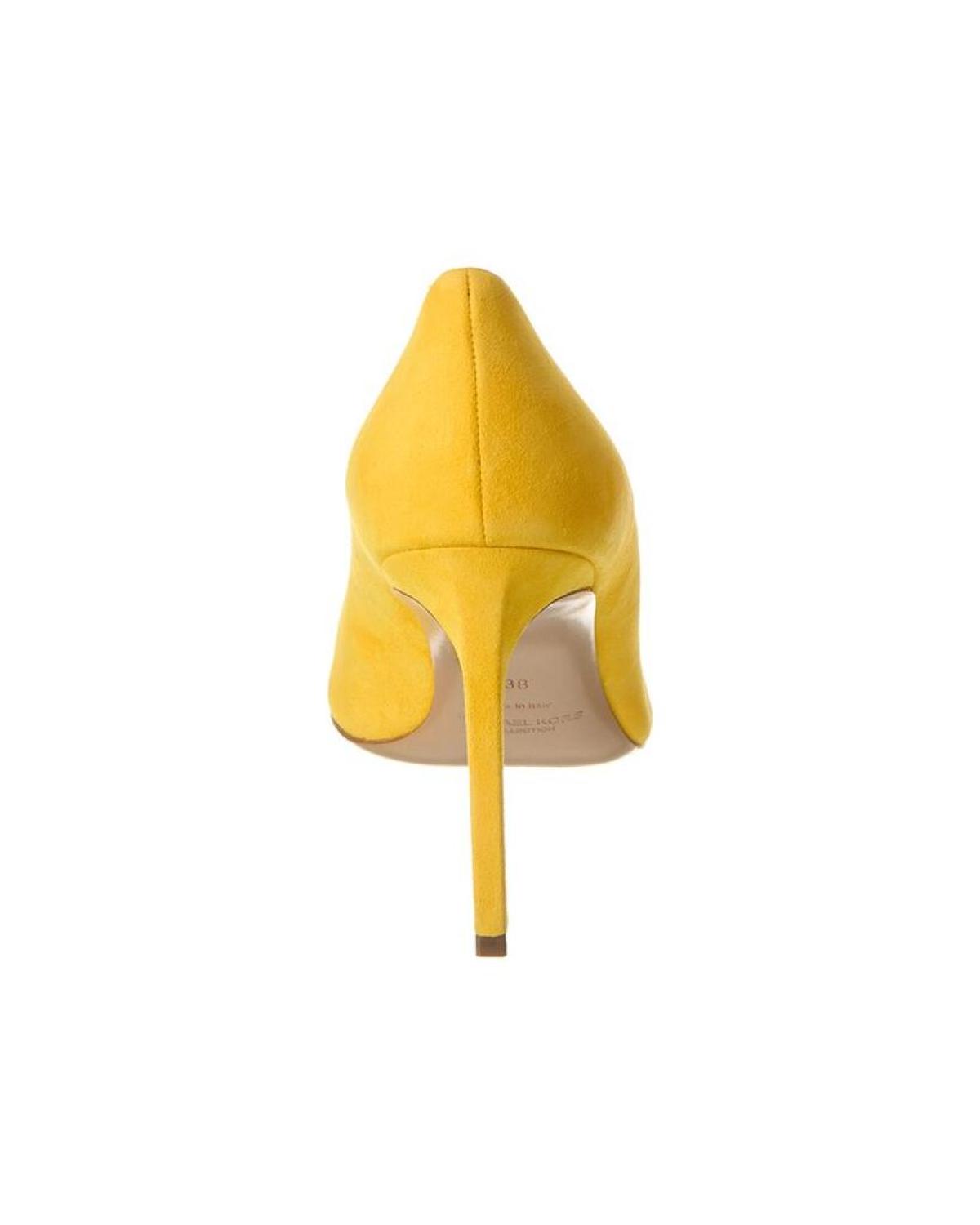 Introducing the Michael Kors Collection Martine Runway Suede Pump! Elevate your style with these stunning pumps from the renowned brand, Michael Kors Collection. Crafted with meticulous attention to detail, these Martine Runway Suede Pumps feature a vibrant marigold suede upper, adding a pop of color to any ensemble. The sleek pointy-toe design exudes sophistication and elegance, making it a versatile choice for various occasions.For your comfort, these pumps are equipped with a lightly padded leather insole, ensuring a cushioned step with every wear. The smooth leather sole provides durability and traction, offering stability as you stride confidently.With a 4-inch heel, these pumps give you an instant boost of height while maintaining comfort. The European sizing provides a precise fit, and for easy conversions, please refer to the size chart.Created with superior craftsmanship, these pumps are made in Italy, ensuring premium quality and timeless appeal. Please note, all measurements were taken from a size 38 and slight variations may occur.Experience the allure of Michael Kors Collection with these Martine Runway Suede Pumps. Embrace easy glamour and luxurious living with these all-American style statement pieces. Elevate your shoe game and complete your wardrobe with these stunning pumps that effortlessly blend fashion and functionality.