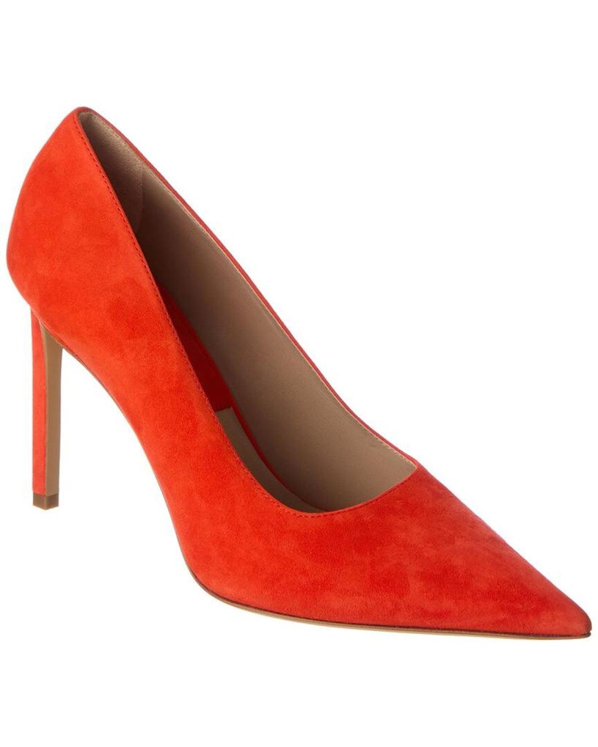 Introducing the Michael Kors Collection Martine Runway Suede Pump, a stunning addition to your collection of glamorous footwear. These pumps are designed by the renowned brand, Michael Kors Collection, known for their all-American styles that effortlessly exude glamour and luxury.The Martine Runway Suede Pump features a captivating orange suede exterior, giving it a bold and vibrant look. The pointy-toe design adds a touch of sophistication, making it perfect for any formal occasion or a night out on the town.With a lightly padded leather insole, these pumps offer exceptional comfort, ensuring that you can wear them for extended periods without sacrificing style. The smooth leather sole provides durability and a sleek finish, enhancing the overall elegance of this shoe.Standing at a 4-inch heel, the Martine Runway Suede Pump provides a graceful lift and adds a confident stride to your step. Please note that all measurements are approximate and were taken from a size 38, so slight variations may occur.Crafted in Italy, these pumps showcase the impeccable craftsmanship and attention to detail that Michael Kors Collection is known for. Elevate your shoe game with the Martine Runway Suede Pump, a true statement piece for any fashion-forward woman.Please be aware that size selections for this product are in European sizes. For US conversions, we recommend referencing the size chart provided. Order your Michael Kors Collection Martine Runway Suede Pump today and indulge in the allure of Italian luxury.