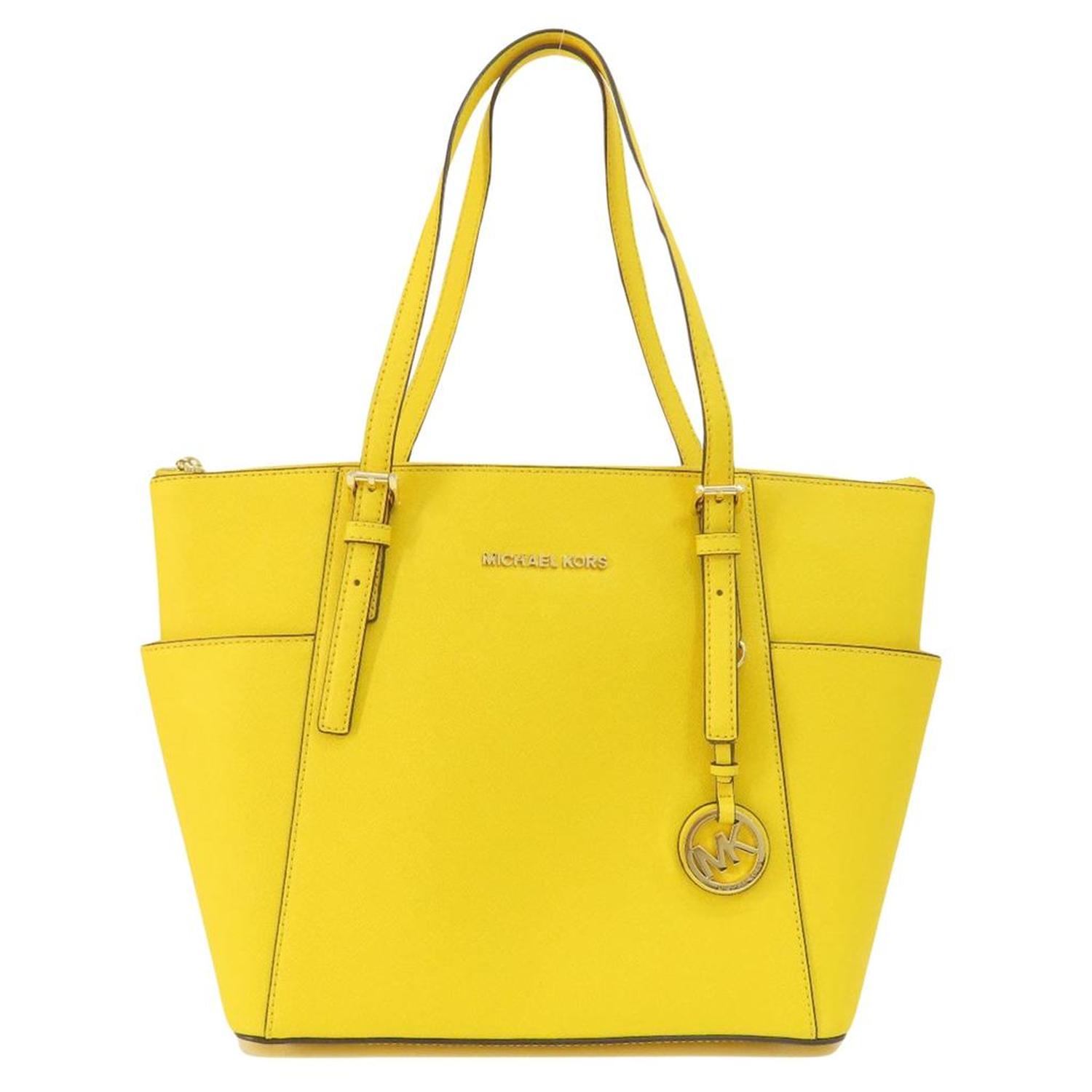 Brand - Michael KorsModel - Jet setColor - YellowMaterial - LeatherInclusions - /Dimensions - 26cm x 38cm x 11cmSerial number - N/ACondition - AB - good condition.The Michael Kors Jet Set tote bag epitomizes modern sophistication and practicality for the contemporary woman. Crafted from luxurious yellow leather, this tote bag adds a vibrant pop of color to any ensemble. Its spacious interior and functional design make it perfect for carrying everyday essentials with ease, while the sleek silhouette exudes effortless style. The exterior of the bag shows slight staining in parts, with the metal part displaying minor discoloration, while inside, there are some traces of use present.We recommend that you look at all the photos before making your purchase to ensure that you are satisfied with the condition of the item.Size - One Size