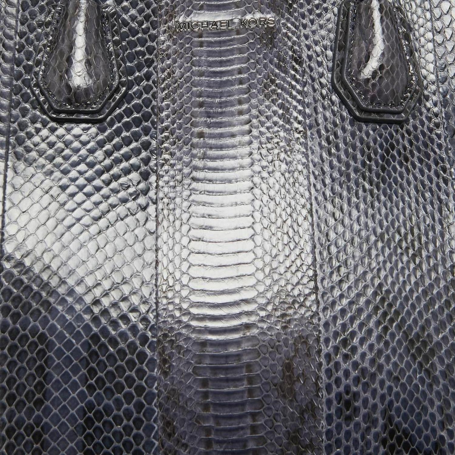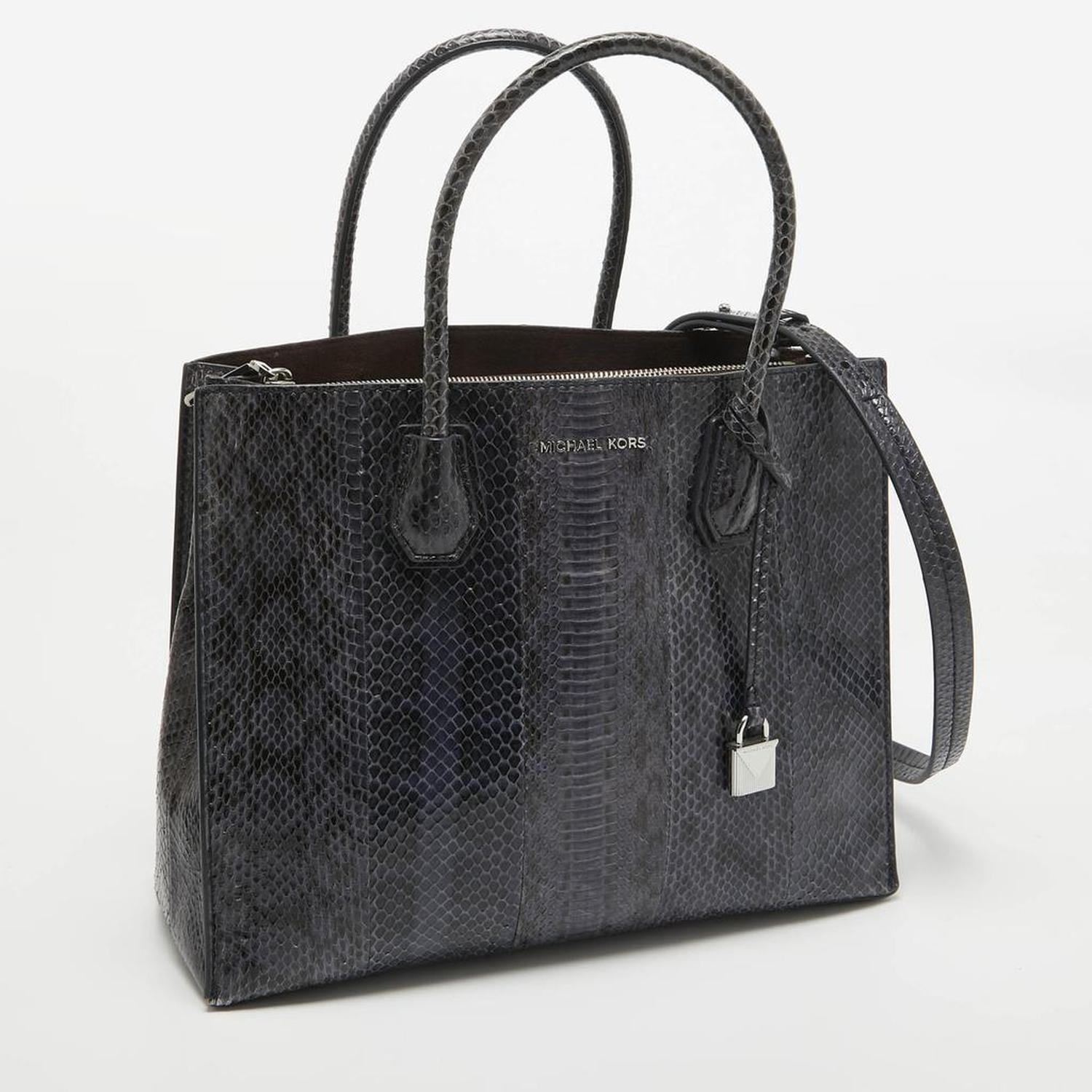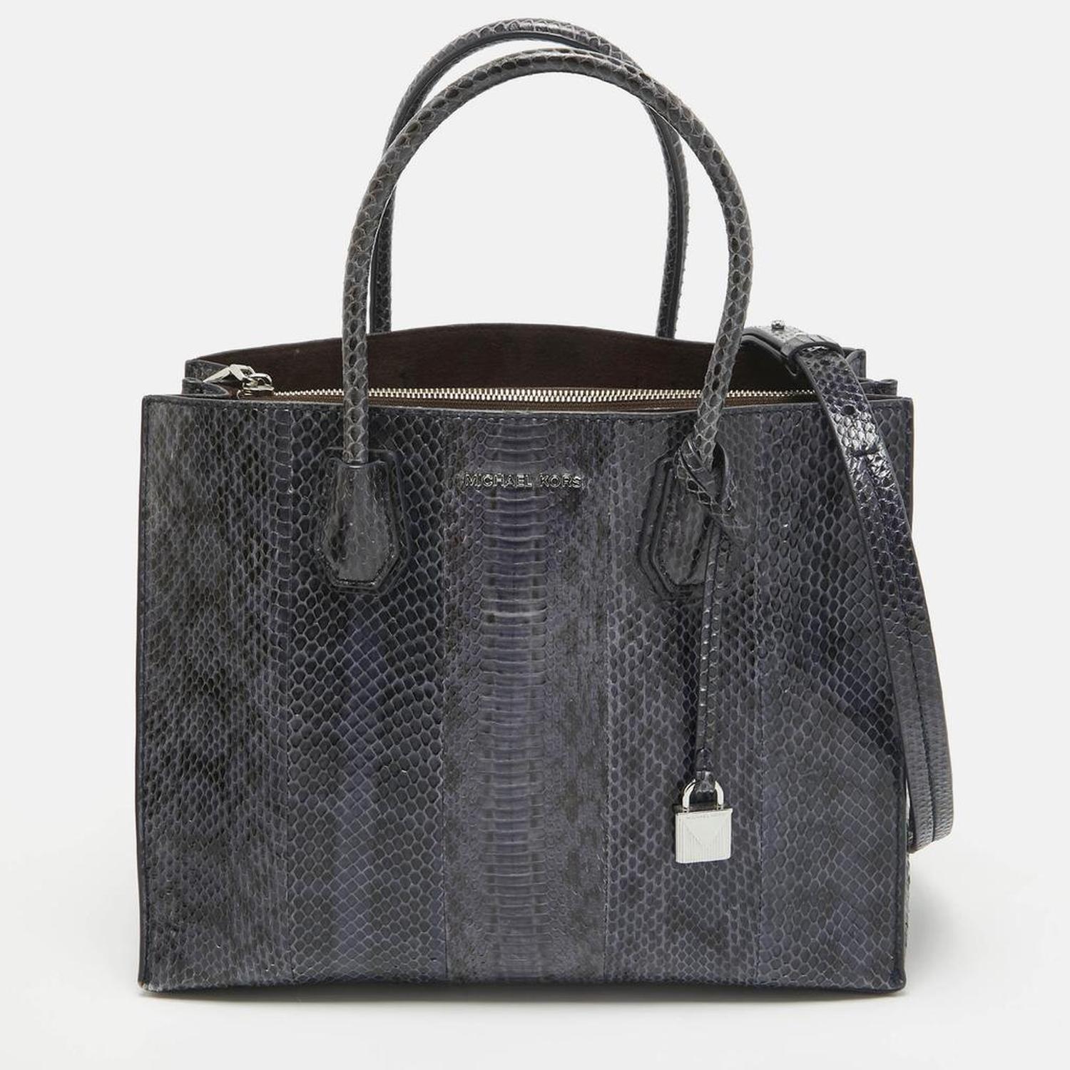 Michael Kors Navy Blue Watersnake Leather Large Mercer Tote
