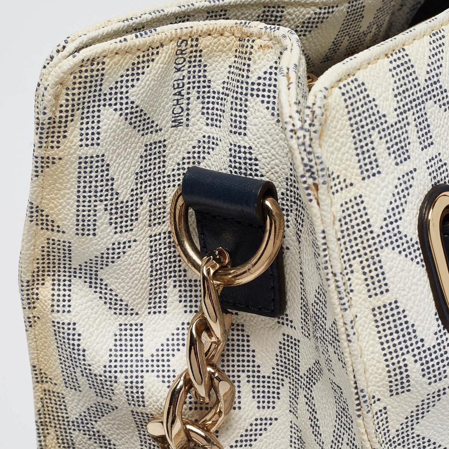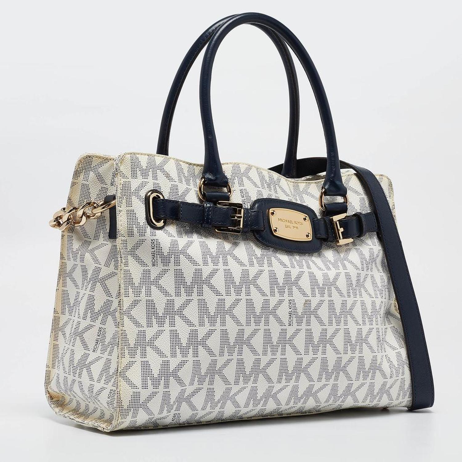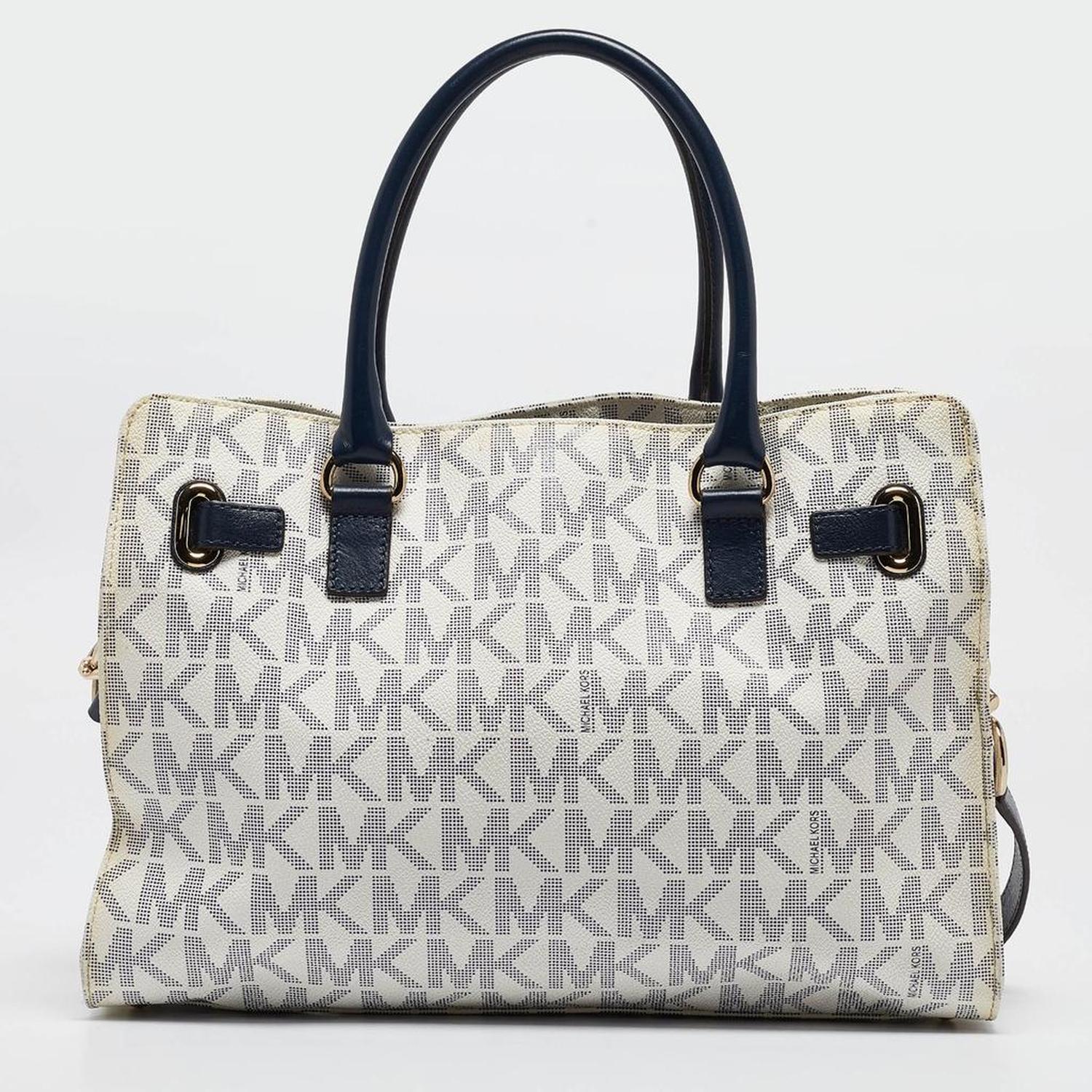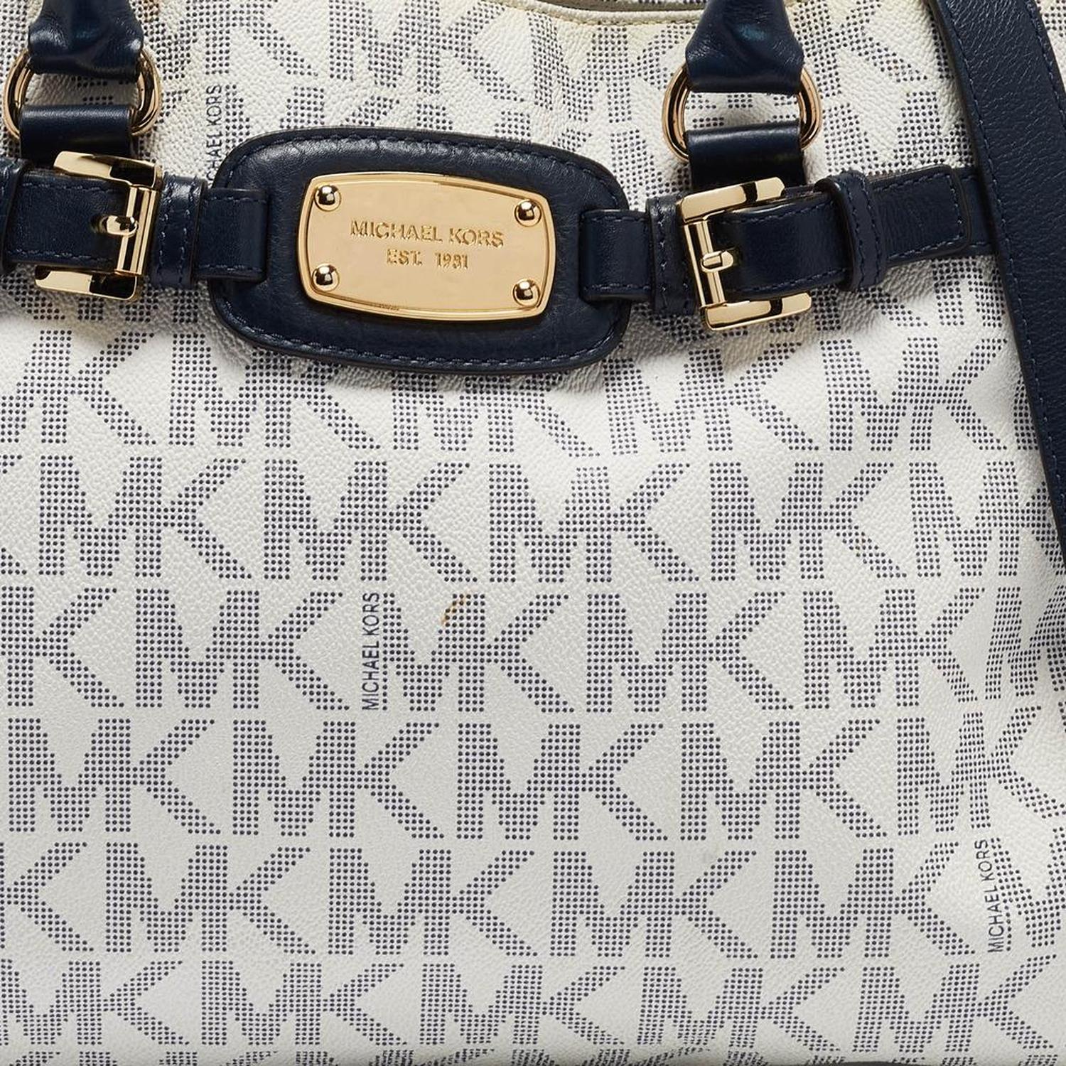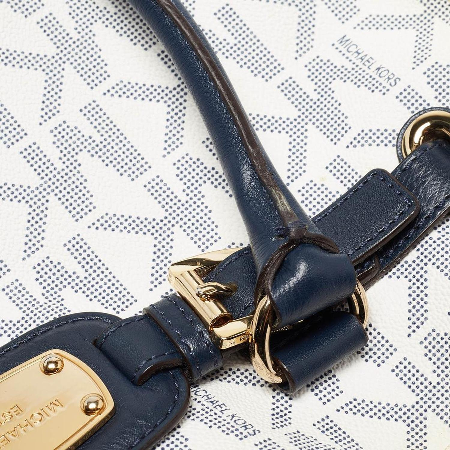 Michael Kors White/blue Signature Coated Canvas East West Hamilton Tote