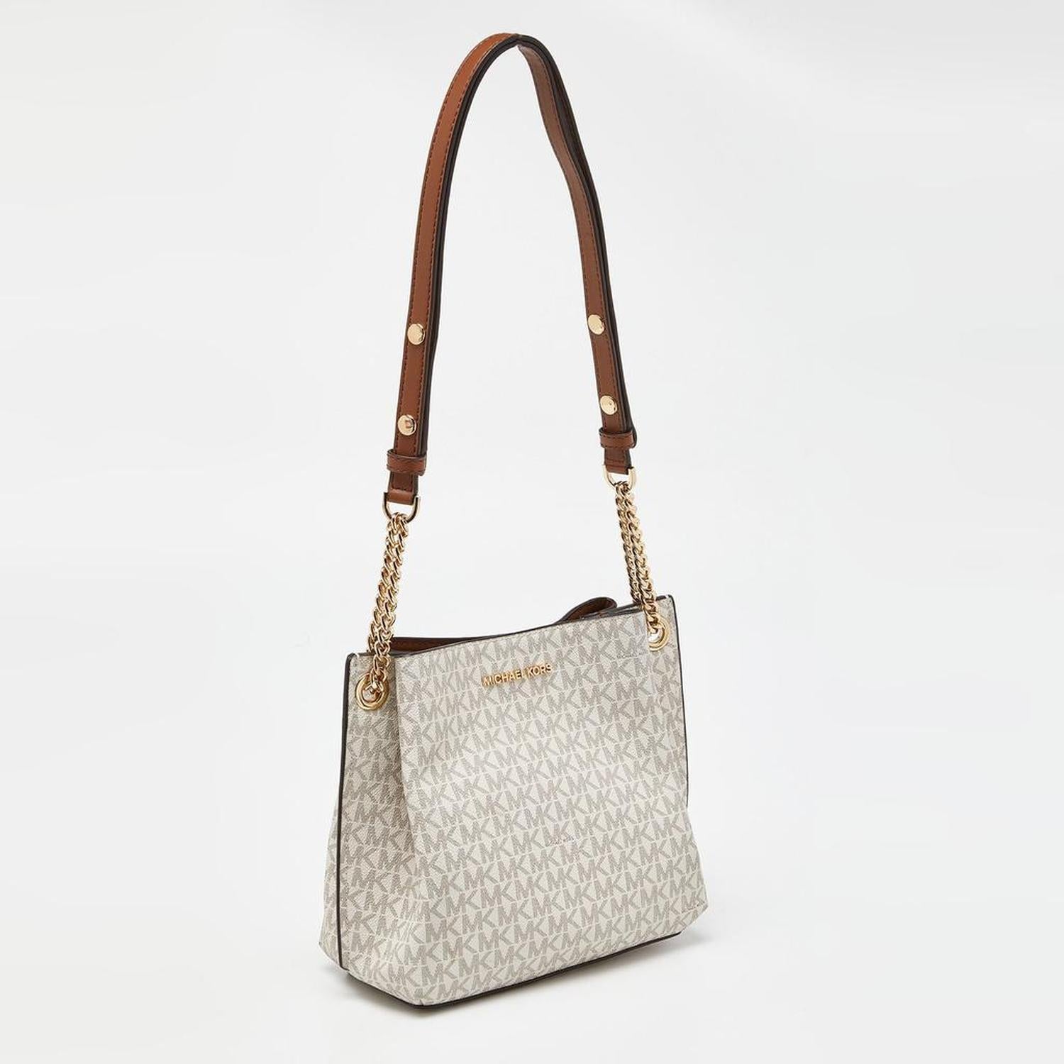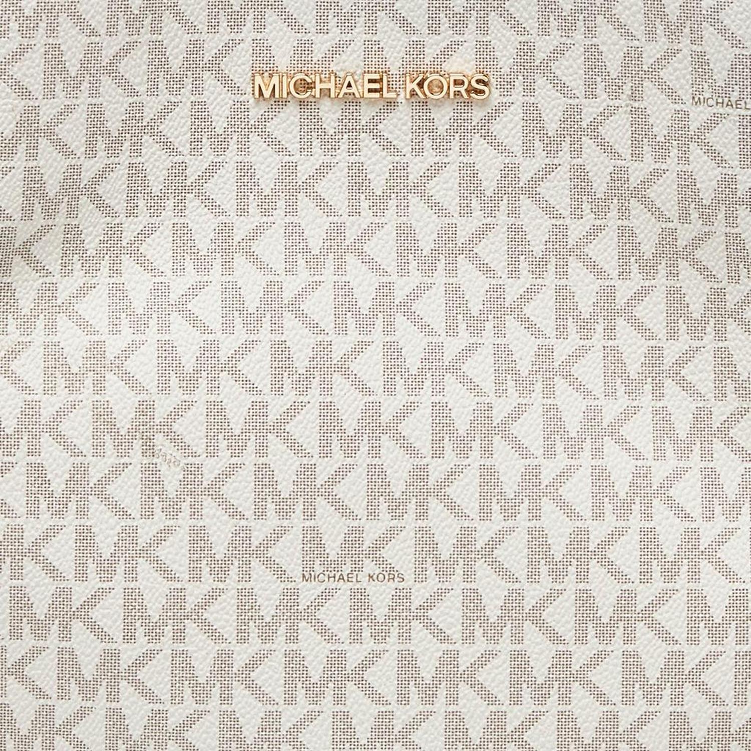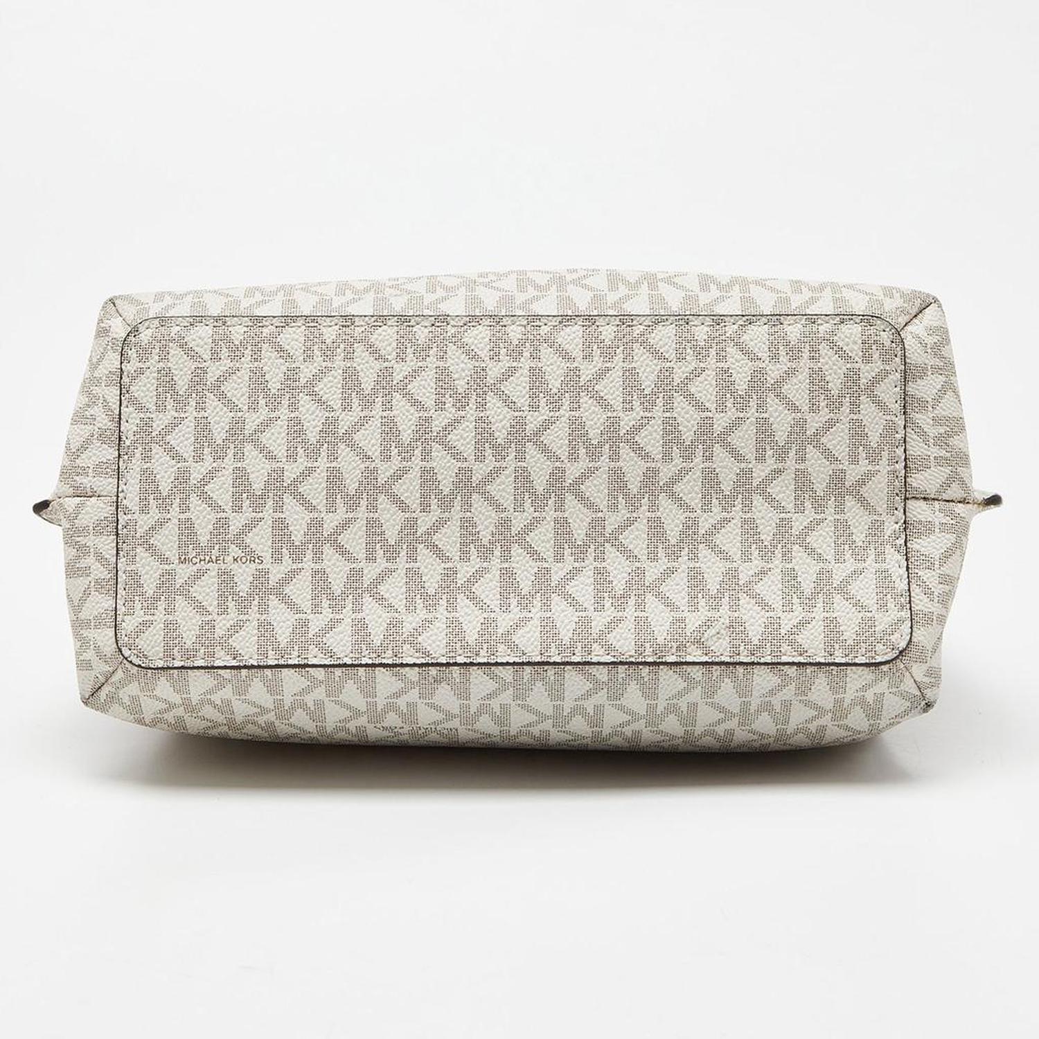 Michael Kors White/brown Signature Coated Canvas And Leather Small Teagen Bag