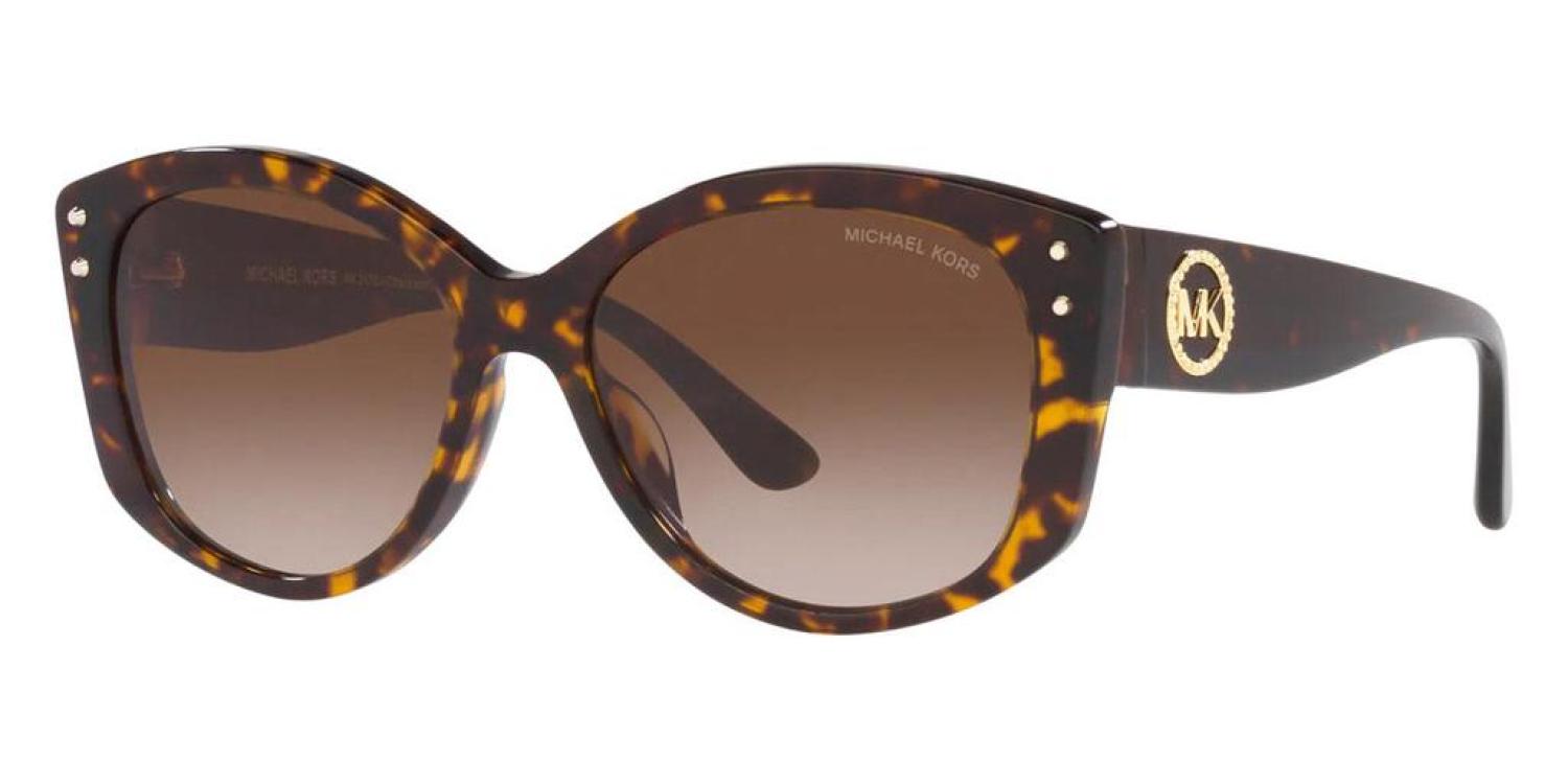 Michael Kors Women's Sunglasses. Dimensions - 54 mm x 16 mm x 140 mm. Dark Tortoise Bio Irregular Acetate frame, Brown Gradient lenses. 100% UV Protection, Non-Polarized. Made in China. (MK2175U-300613-54)