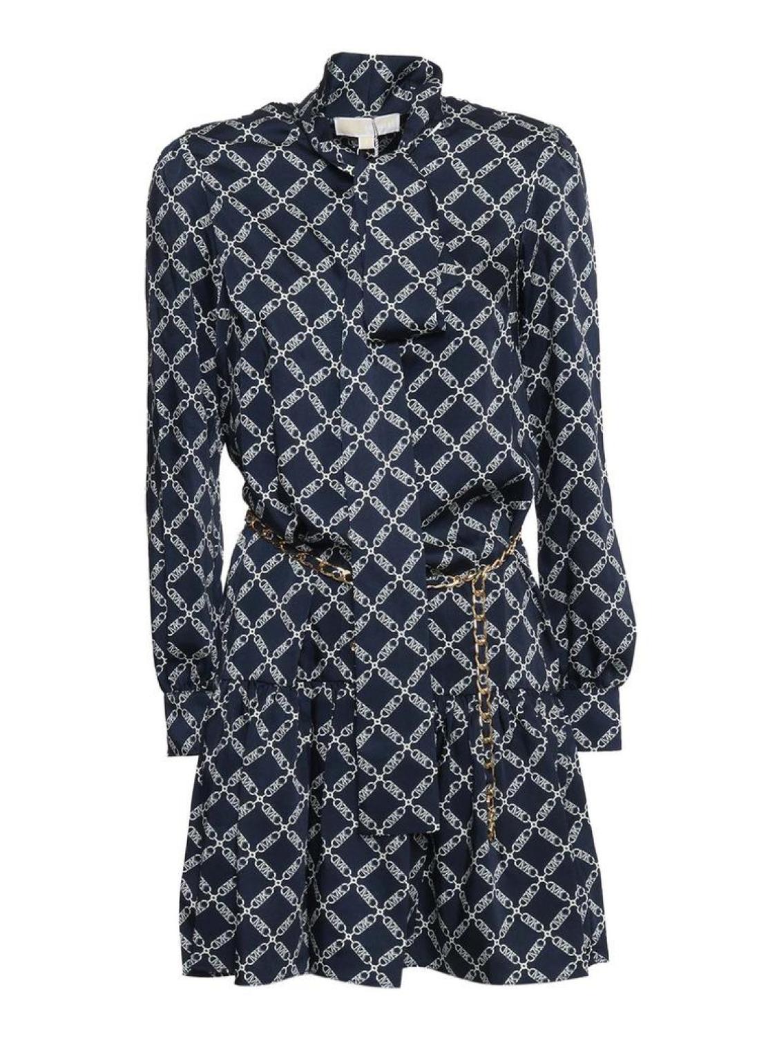 Michael Michael Kors Empire Logo Satin Tie-Front Dress