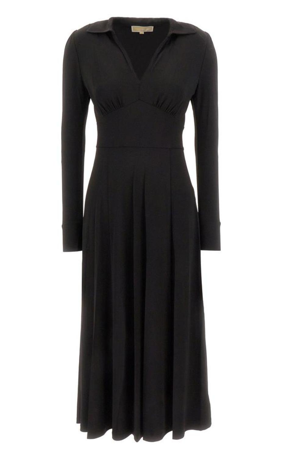 Michael Michael Kors Long Sleeved V-Neck Midi Dress
