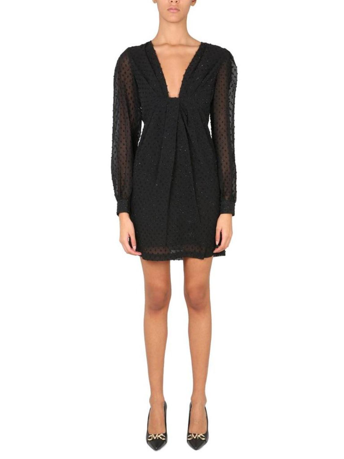 Michael Michael Kors Polka Dot Printed Long-Sleeved Dress
