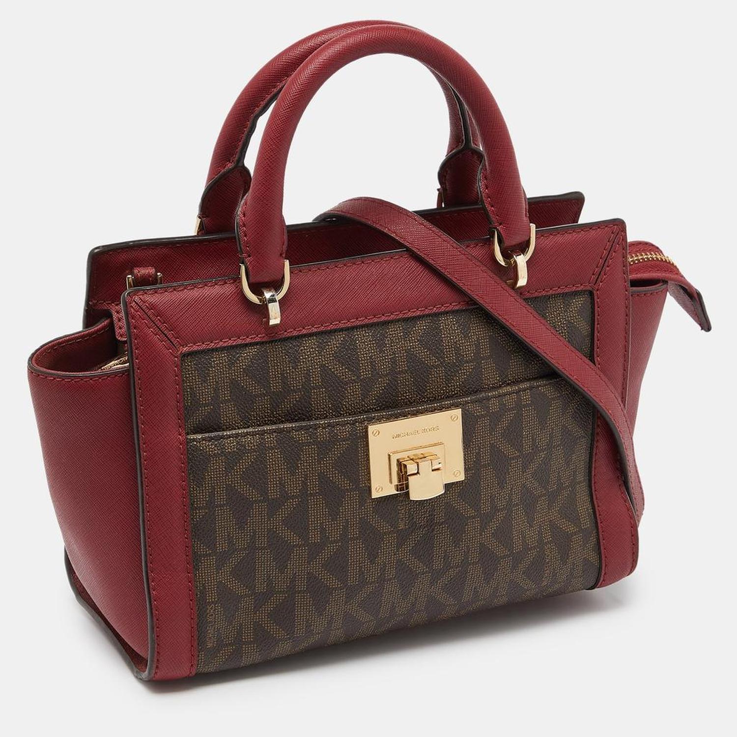 Michael Michael Kors /red Signature Coated Canvas And Leather Tina Tote