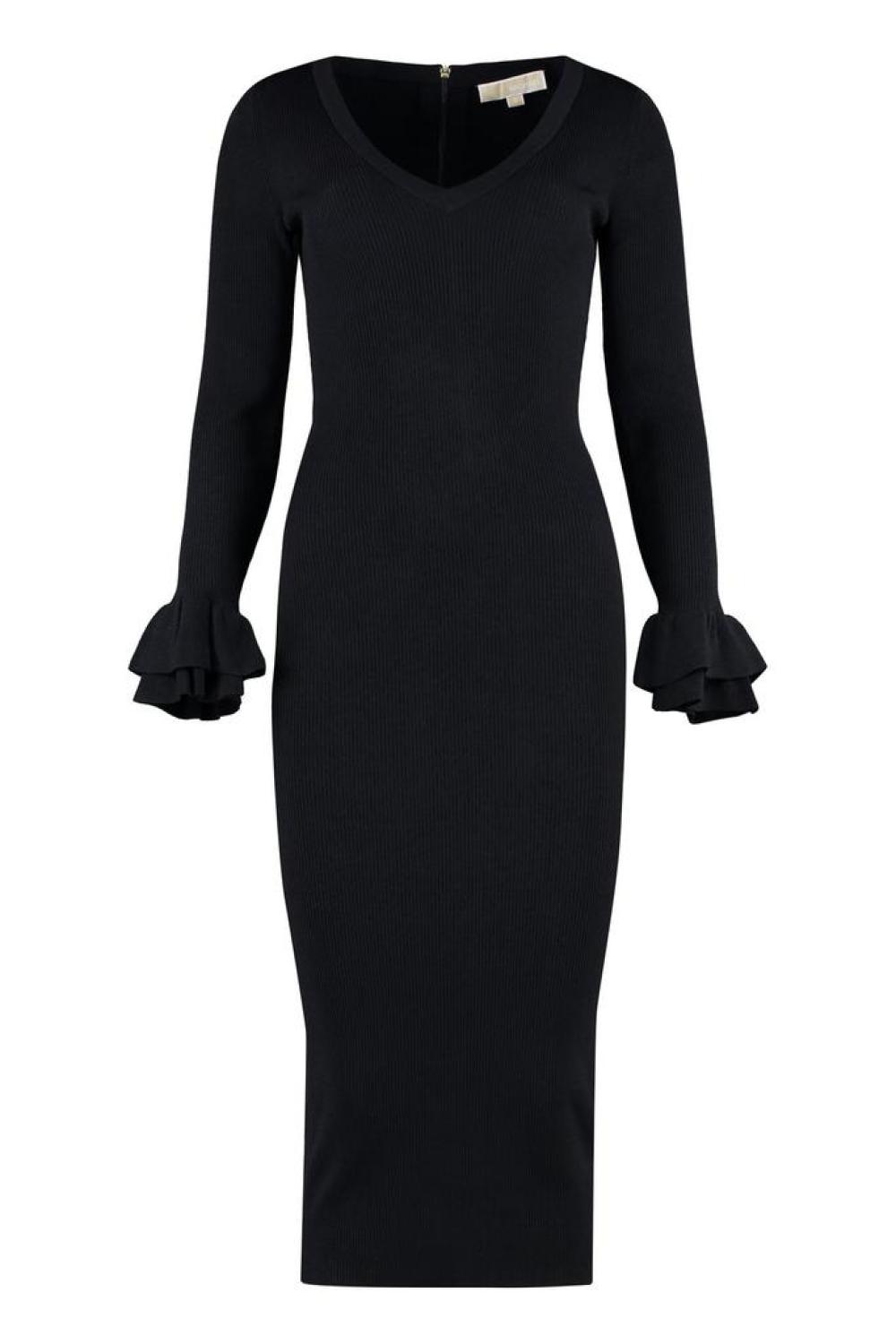 Michael Michael Kors V-Neck Ribbed Knit Midi Dress