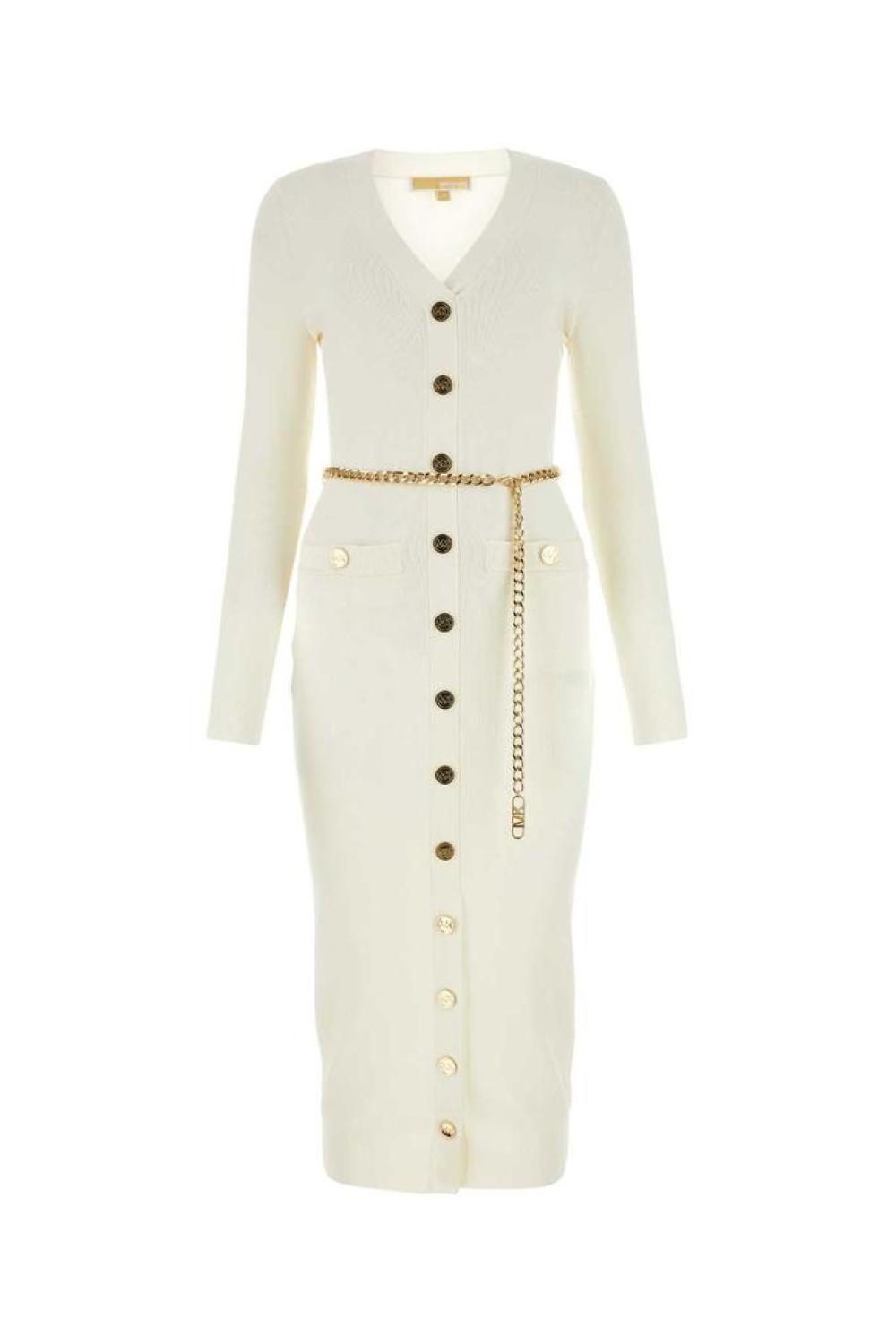 Michael Michael Kors V-Neck Stretch Belted Midi Dress