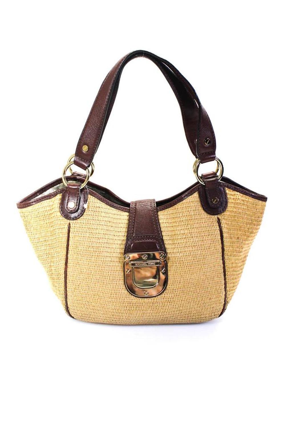 Michael Michael Kors Women's Straw Leather Trim Shoulder Bag Beige