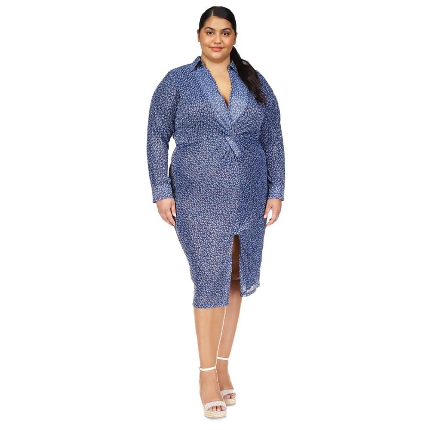 MICHAEL Plus Size Collared Twist-Front Long-Sleeve Dress