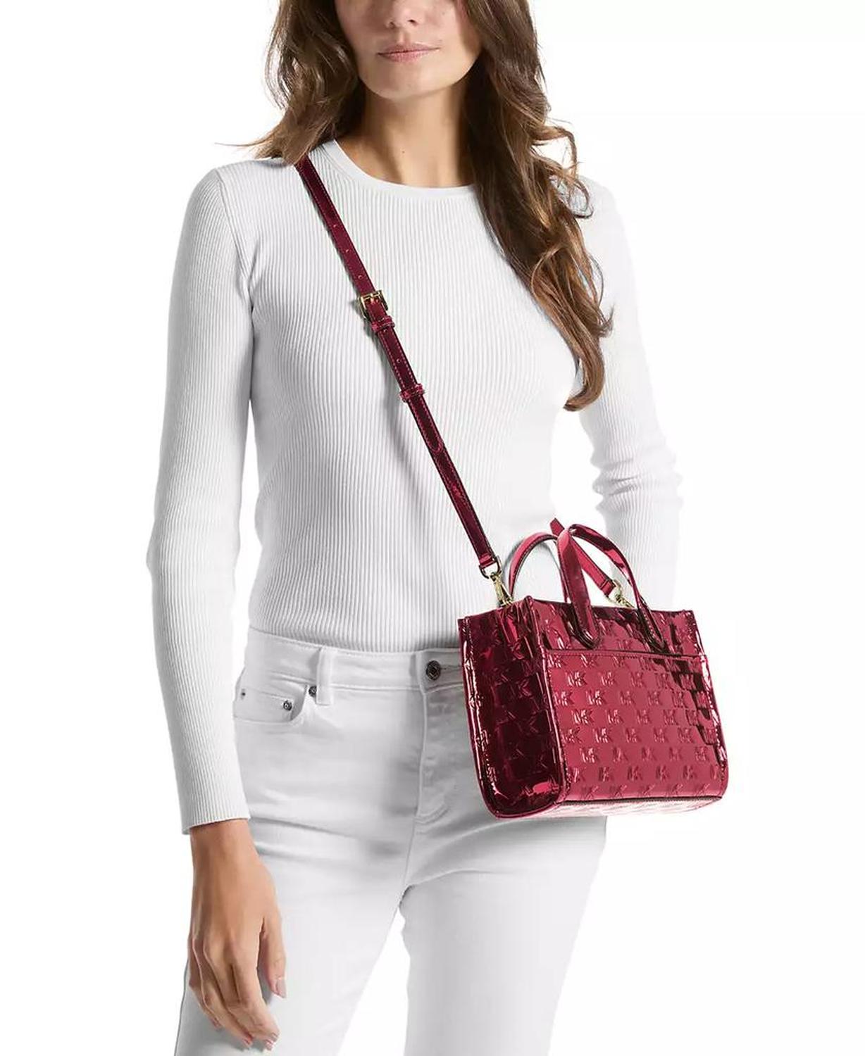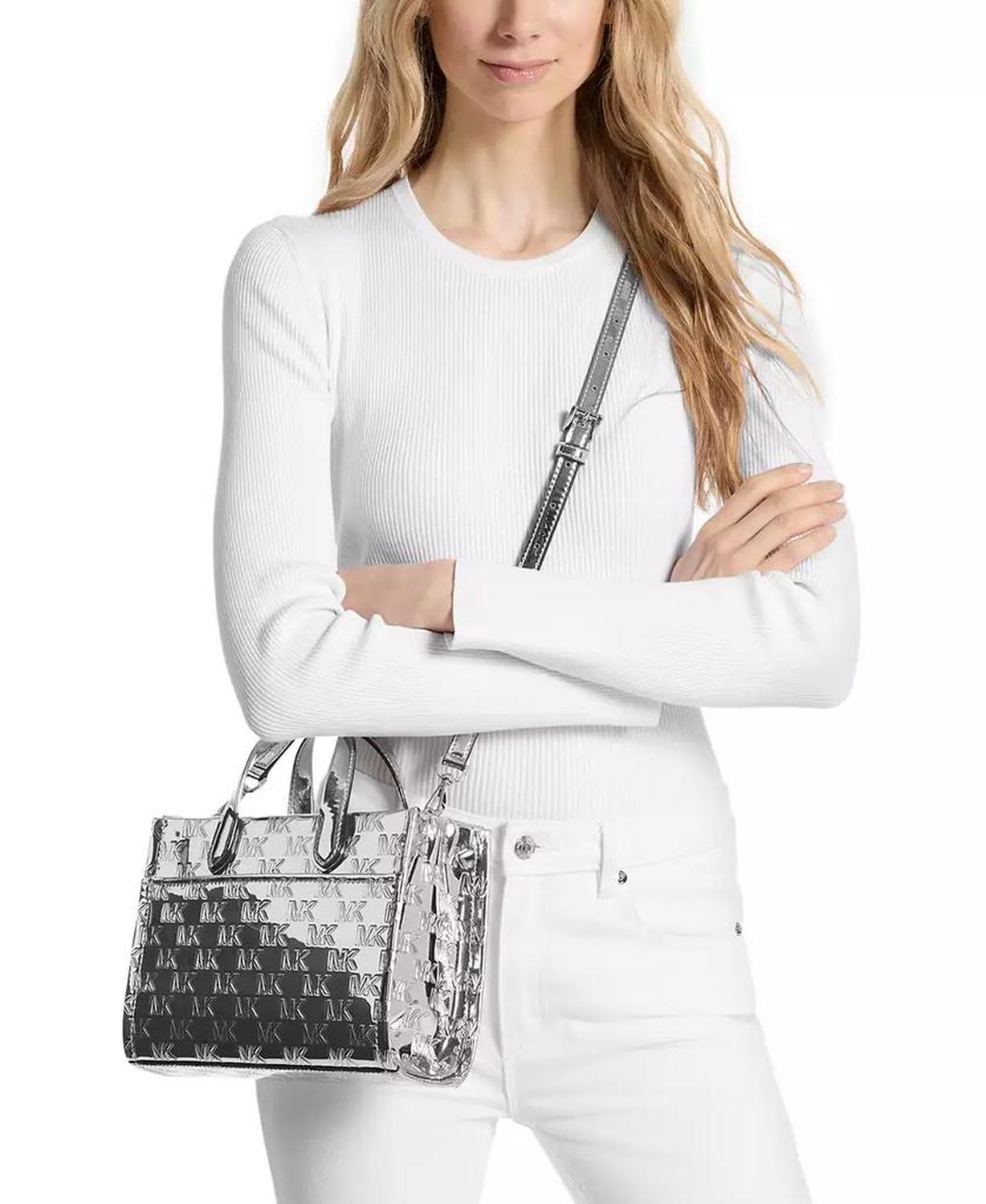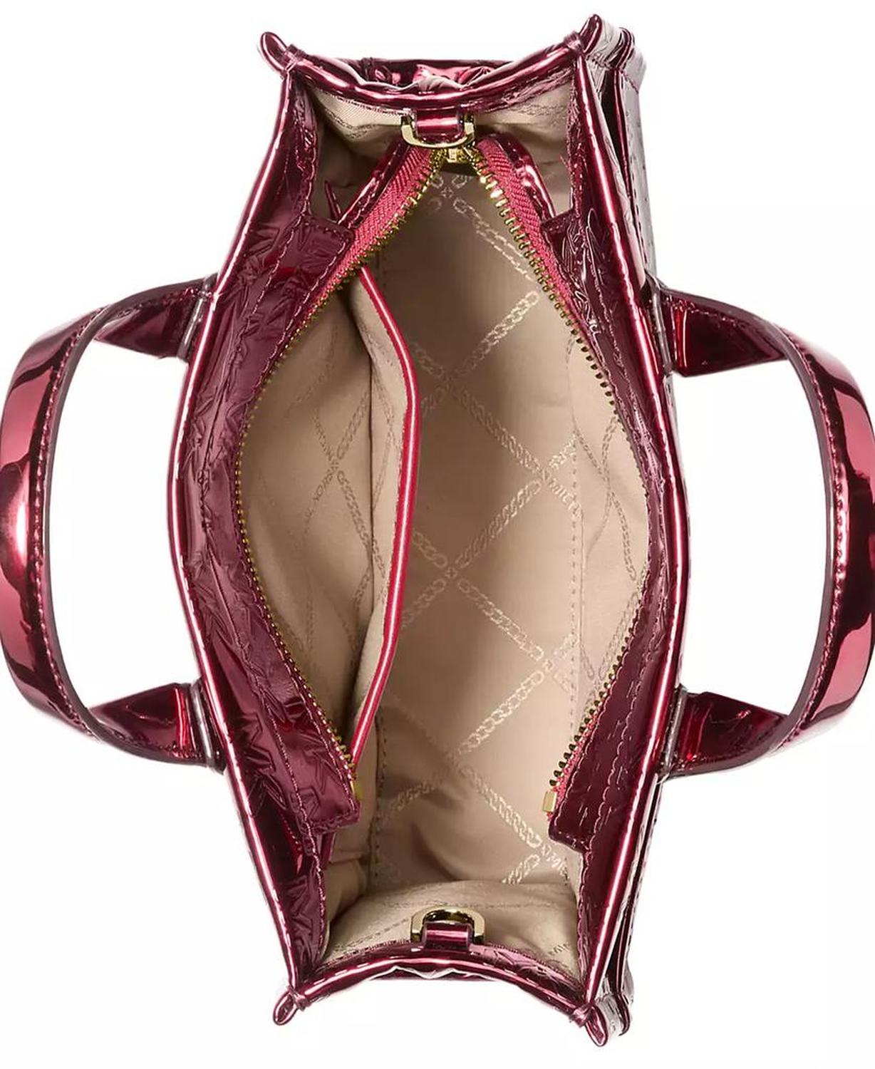 Add some luxe shine to your everyday with this messenger by MICHAEL Michael Kors. Realized in a classic east west shape, carry it by the handles or attach the strap to go handsfree.