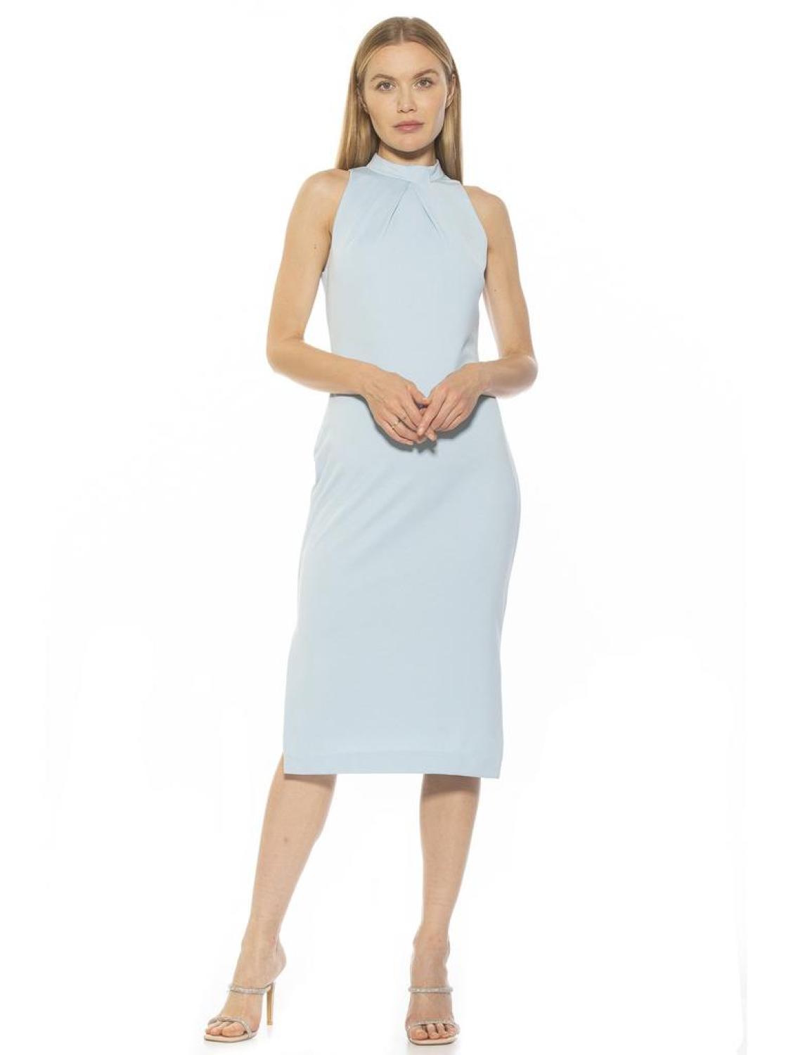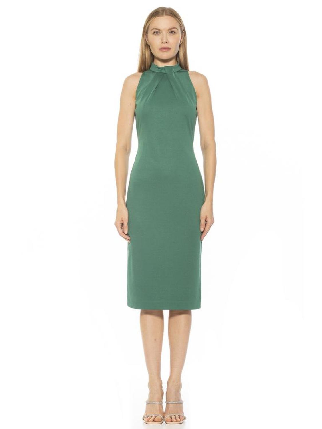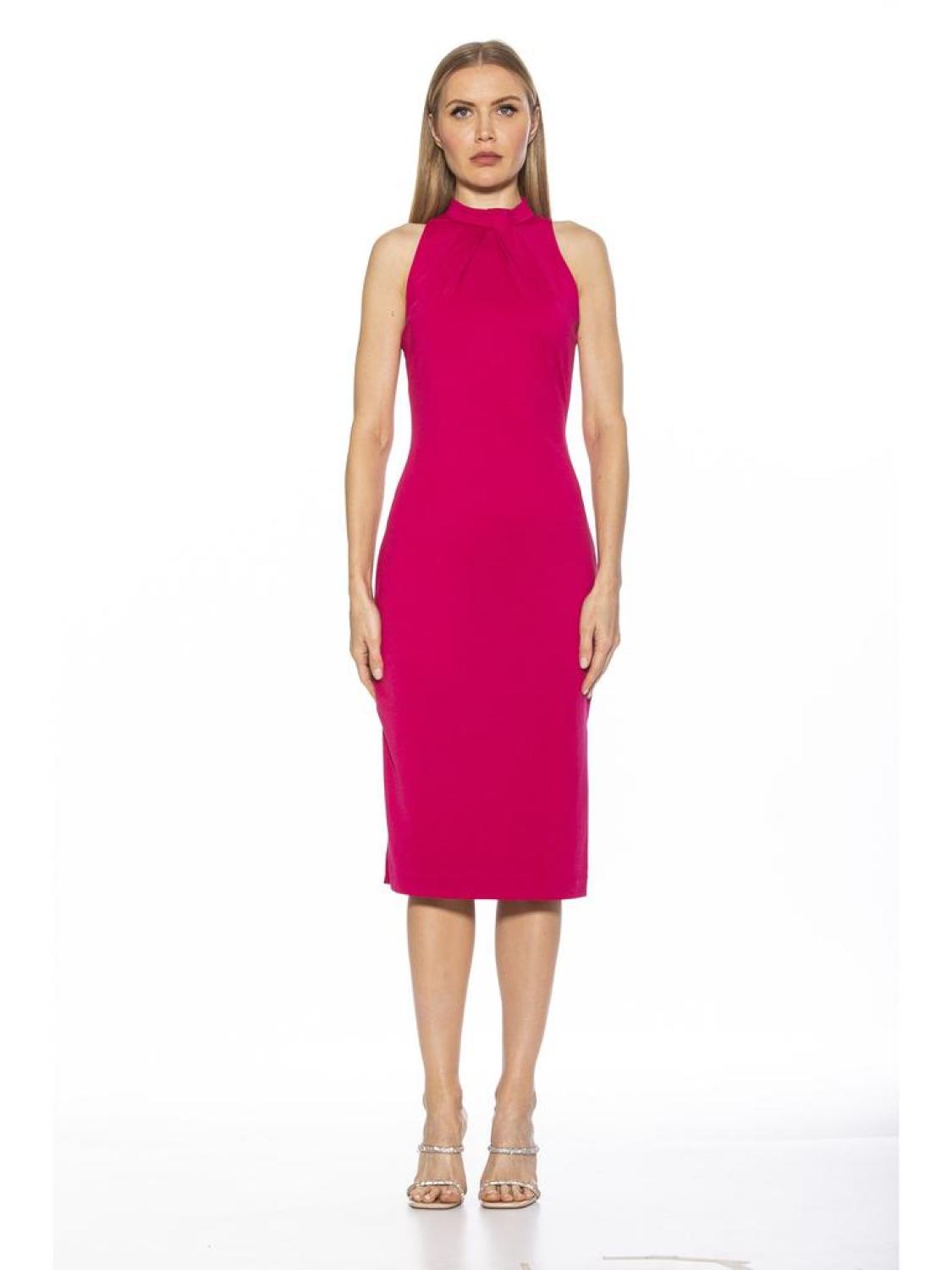 PRODUCT FEATURES Pleated Mockneck Sleeveless Cocktail Length Sheath Dress 95% Polyester, 5% Spandex Lining - 100% Polyester Machine Wash Imported Style D3994