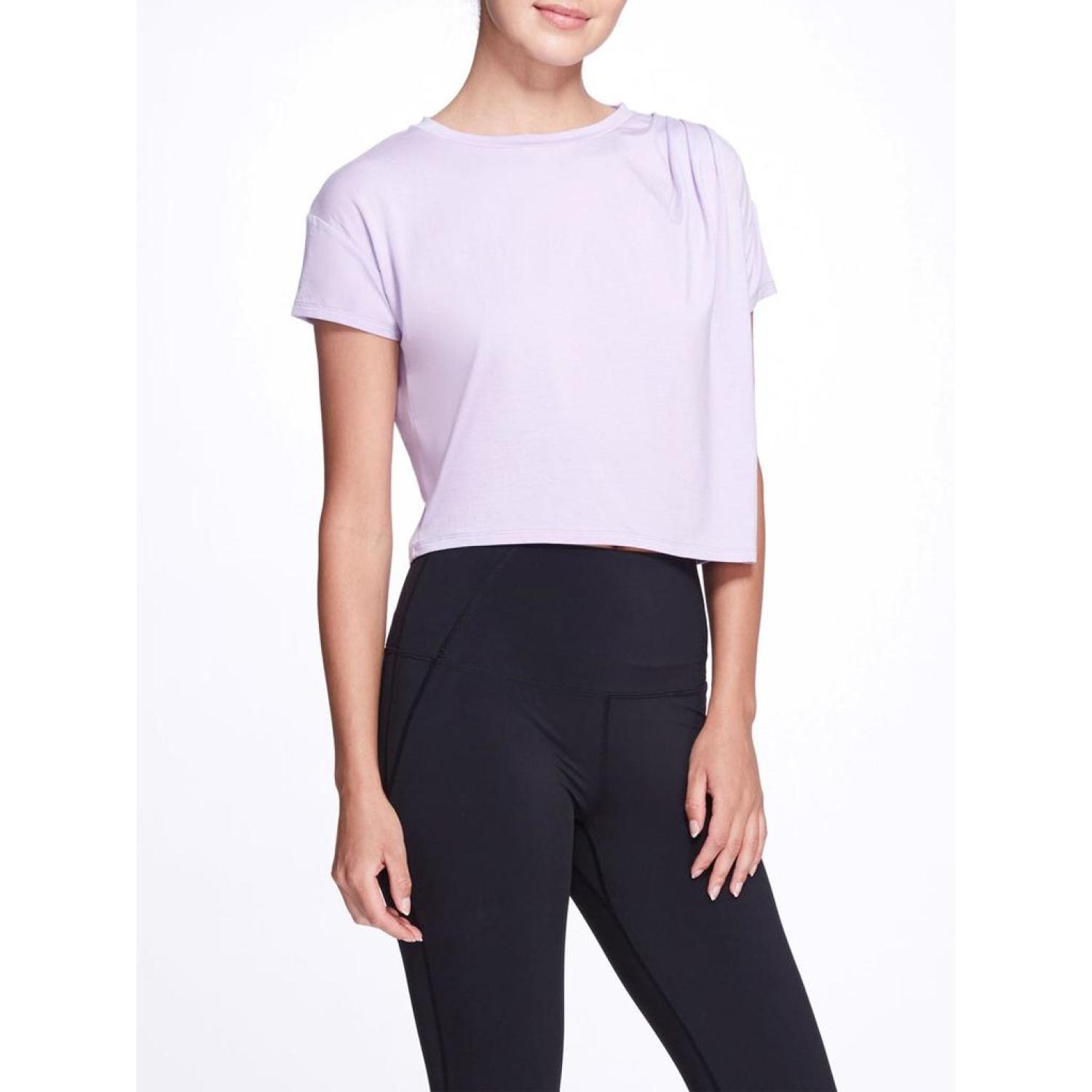 • The Misty Top features super soft drapy weight jersey, crew neckline, drape detail on shoulder, relaxed cropped fit.