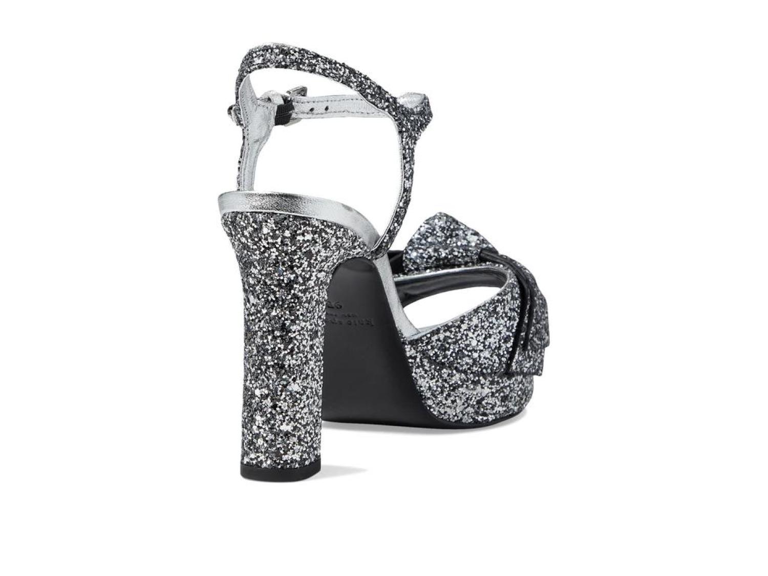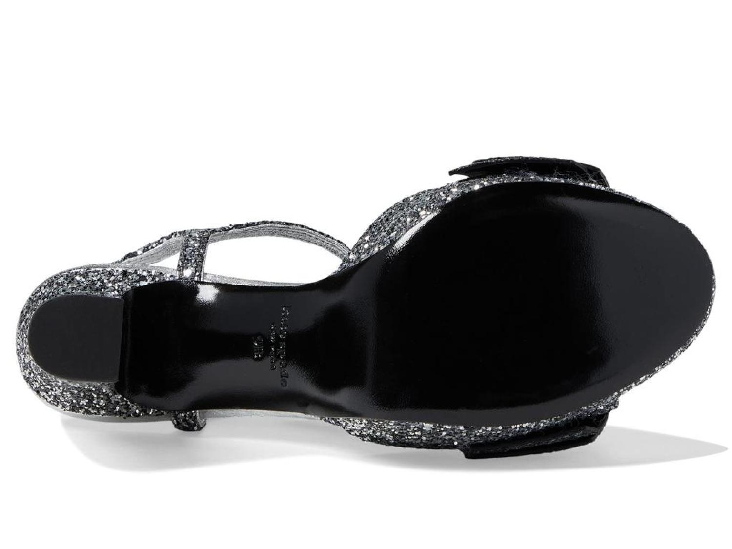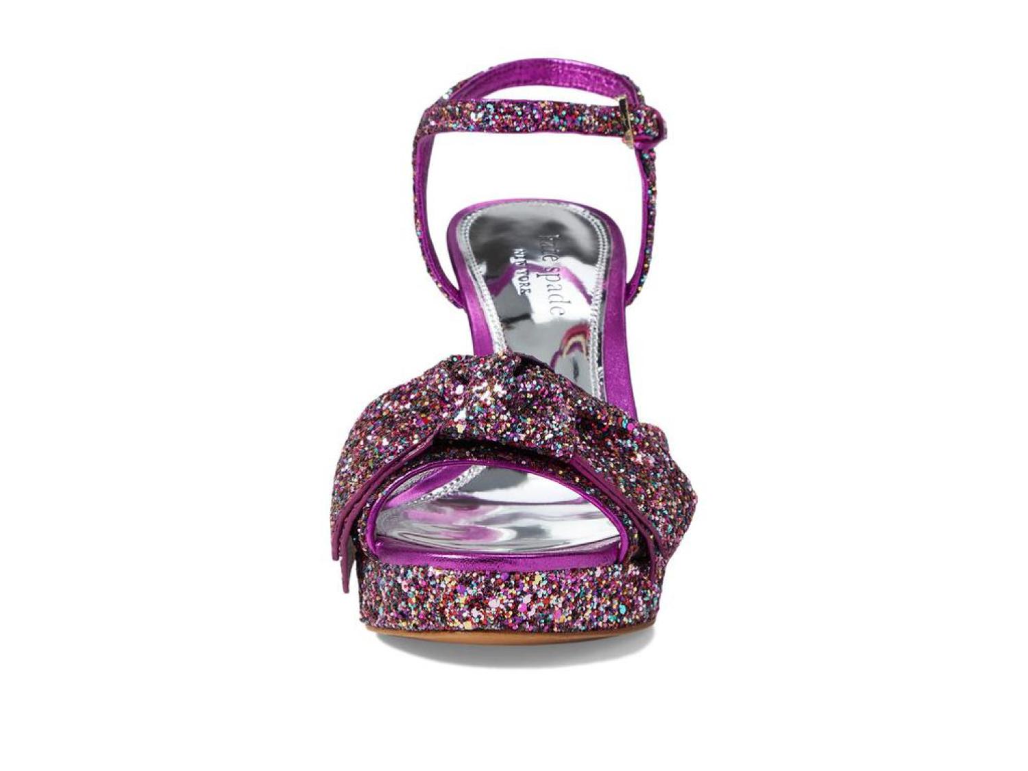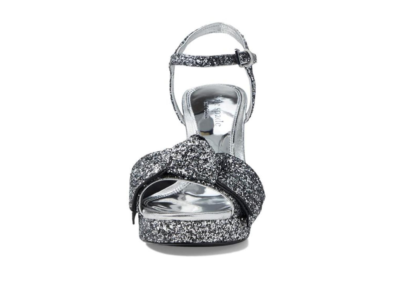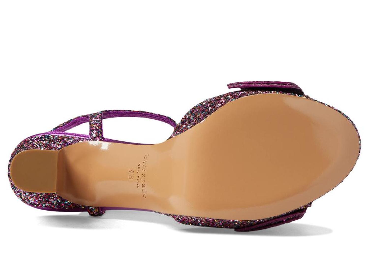 Instantly glam up your ensemble by wearing the stunning Kate Spade New York® Miya Heels. Leather and textile upper. Leather lining and synthetic insole. Allover shimmer detailing. Buckle strap closure. Round, open toe silhouette. Block heel style. Leather outsole. Made in Brazil. Product measurements were taken using size 9, width M. Please note that measurements may vary by size. Measurements: Heel Height: 4 in Weight: 12 oz Platform Height: 1 in-